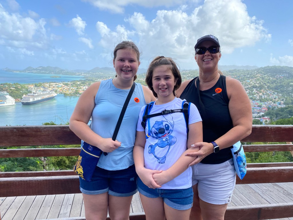 Our second port of the trip, today we were in Castries, St. Lucia. It was our second Caribbean island to visit. The next time we are in the Caribbean is going to be the last three ports of our cruise in May. St. Lucia felt safer, was cleaner and seemed to have a stronger economy then Dominica. We had the most amazing tour guide today. He took extra time to accommodate the elderly people in our group as well as go out of his way to be especially sweet to the girls. Turns out he is a widower who recently lost his wife quite suddenly. I shared my story briefly with him, was able to give him a big hug and we both reminded each other that life is for the living. He taught the girls about African violets and showed them how the pods can be used like miniature squirt guns. He told us how he used to play with them as a boy. The girls had their own “water” fight. It was a simple pleasure and helps one to step back and just appreciate the very simple things of life. Like being together and sharing a day with someone you love. We toured around the island and saw the Mourne Fortune, which had a beautiful overlook of the capital of Castries. Then, we went to Marigot Bay and saw some beautiful yachts. Next, we went to a rum distillery and learned about their rum making process. Then it was open bar, bottles of different types of rum on the counter and we could pour as much as we could drink. I tried a lime infused rum for the firs time, tasted like 7-up, and then mom and I tried the “jet fuel” their 180 proof white rum. Burned all the way down. Our next stop showed us how they process coconuts, cacao beans, and how they create batik printing on fabric. We received complimentary rum punch at this stop. Lastly, we visited the Pink Plantation house a 150-year-old home that is now a resteraunt. We had lunch here and free wine. We concluded with a tour of the grounds, the owner is a chef and a botanist. When we got back to the ship we went out on our balcony and got to watch the port crew release the ropes from our ship and then waved to the people on the ship next to us as we headed back out to sea. Valerie went off to spend some time with the other teens and Megan had dinner with mom and I before she ran off to got to kids Club. So tonight is our first “rougher” night on the ship. Starting shortly after we left port, we have been rocking and rolling. I had an eventful shower, there’s a reason there are grab bars everywhere in there. Valerie appeared back to the cabin feeling a little queasy, so she is sipping a ginger ale and is wearing her first anti nausea patch. Tomorrow we get to sleep in, as it is a sea day. I am hoping for some great rest as this ship is gently rocking me to sleep. We will see what activities we do tomorrow, some fun, some learning, some school, and some more family time. My heart is so full. I feel so very blessed. Big hugs and love to you all….Debra