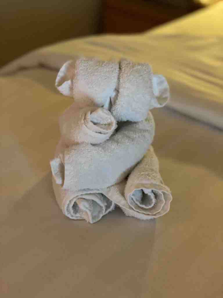 Sea Day.  It was another relaxing day at sea today.  Megan and I had breakfast together this morning as mom and Valerie slept in late.  We had a chance to relax before we headed up to our crocheting group at 10:30am. Megan is almost done with her first blanket and I am wrapping up my second.  I promise to post some pictures when we are all done.  I will try to add one today of my first completed blanket I turned in.  We worked on some school this afternoon and had a chance to wrap up this week’s work. Then at 2:00pm we went to our daily lecture, “Introducing the Falkland Islands.”  Such an isolated, but fully functioning part of the world these islands are.  We are so looking forward to our excursion there when we will be visiting a penguin rookery.  After the lecture we headed back to the cabin so the girls and I could go over their completed schoolwork for the week and I got their lesson plans completed for the next four weeks.  With there being many sea days coming up as we are getting ready to sail around Antarctica, I wanted the girls to have what they needed to get ahead while they had the opportunity.  So their lesson plans are completed now through the end of February.  That took our day right up to getting ready for dinner, as tonight was a Black and White themed Gala.  It was another great opportunity to get dressed up just as the ship started to rock and roll.  I swear sometimes they are planning it so we all struggle walking in our heels.  Just Kidding.  We had a head of security for the entire ship as our guest at dinner this evening.  It was great to learn about him, his family and how he came to be in charge of our floating city.  I think it is especially great for the girls to learn about what makes the day to day operations flow on this ship to afford them the comforts and privileges they are experiencing.  By the end of dinner the ship was really rolling and we saw many crewmembers escorting elderly passengers back to their cabins to ensure they were safe.  Valerie was having a rough time of it so she had me put another seasickness patch on her to calm her tummy.  Unfortunately, that makes her sleepy so she decided to sleep with mommy last night.  She said, “Sometimes a girls just needs her mom.”  Megan took the couch in my room and Nana got a night all to herself.  It’s going to be a rough one so we are all tucking in and holding on for a wild night.  Love and Hugs!!  Debra
