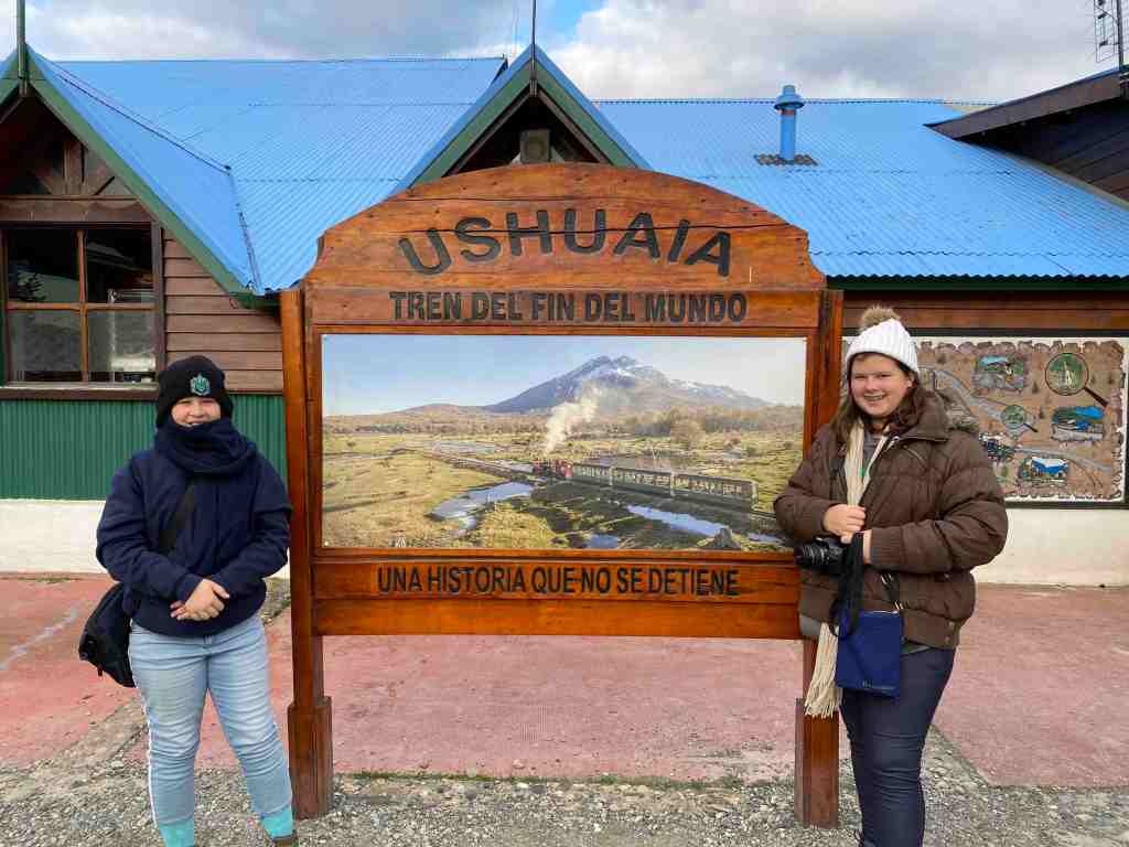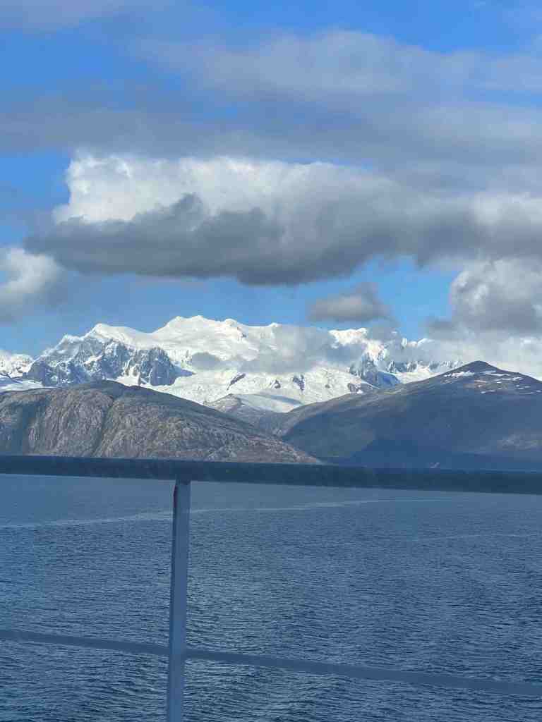Today we were in the port of Ushuaia, Argentina. Yes, I have written that enough now that I have memorized how to spell it. It was nice to be able to step off the ship today after a long time at sea. The girls and I had our land legs pretty much right away, but mom had a couple of instances that she felt the “ship move” while we were on land. It made us all laugh a little when it happened. Today we took a train to the “end of the world”. We visited the southern most city in the world and we went to it most southern destination. The train was built to transport prisoners to the southern tip of Tierra del Fuego, which is actually an island. The prison is surrounded by the Beagle Channel, the Straight of Magellan and the Andes mountains. The prisoners who were sent there were actually put to task of building their own prison. To punish the prisoners the guards would lock the prisoners outside in the extreme weather. If a prisoner did try to the escape, they would either die from the cold or come back starving and freezing. There is now the Tierra del Fuego National Park at the end of the world and there is even a post office there. I use that term loosely. It is a tiny hut with a wood-burning stove and it sells a few items and attracts tourist to send a postcard from here. Across the Beagle Channel from here is Chile. We are wrapping up ours days of getting to see snow covered mountain and glaciers, but not quite yet. There was an astounding one visible from our table at dinner tonight as we sailed through the Beagle Channel. Enjoy the photos. Sending love and hugs as we sail our way to Chile.