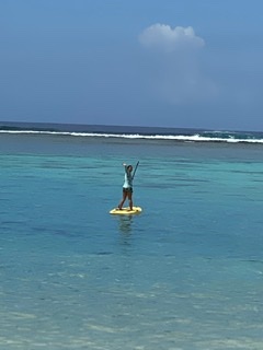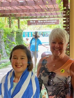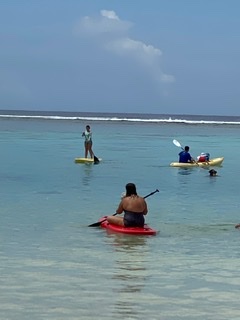 Rarotonga, Cook Island. Today was we had a relaxing day at the beach in the Cook Islands. We were originally scheduled for scenic drive around the island and I mistakenly changed our excursion and when I went to change it back I couldn’t. So we decided it was meant to be and we left it. We did get a beautiful scenic drive on our way to the resort anyway. We were greeted by staff and directed to the beach area where we secured a couple of chairs and then grabbed snorkel gear and hit the water. The water was so clear. The resort had a protective reef that provided a large area between the beach and the reef to enjoy the water safely. The resort staff brought stale bread into the water and everyone got to feed the fish. It brought them right up us and the girls delighted in the display of their beautiful colors. We saw sea cucumbers, sea urchins, and most excitedly humu humu fish, which reminded us of Hawaii. Megan had fun collecting lots of different types of coral, which we made her leave at the resort. After snorkeling fun the girls then had a chance to give standup paddle boarding a try. They took right to it like they have been doing it their whole life. Lastly, they both also took out kayaks and paddled around the lagoon. Mom took great delight in just being in the water. She has glittery nail polish right now and it attracted the fish to her hands as they thought it was food. She spent the morning just hanging out in the water paying with the fishies. At 12:30 we were served a lunch, which we had previously ordered on our bus trip over, and complementary sangria. I let the girls buy a soda to share, because it was $5.00 for one soda. I was shocked with the prices considering where we were, but much like other resorts, when you are there they charge you higher prices because you are “stuck” there. We had a chance to hit the gift shop and buy some magnets before we had to get back on the bus around 2:00pm to head back to the ship. It was an amazing day. Everyone had such a great time. The girls got to do some new and exciting things. Mom was in her happy place. I took great pleasure in just seeing everyone smiling and laughing and relaxing. My heart is full today. When we got back to the ship we made a group decision to have dinner at the buffet tonight so we didn’t have to get dressed up for dinner tonight. Although the dress code in the dining room isn’t too strict, sometimes it nice to just throw on shorts and a t-shirt and go to the buffet instead. So after we all took showers we headed to dinner. Then the girls went to spend time at Club HAL. At 8:30 they both participated in Music Trivia tonight as they were much sought out throughout the day today to join several teams tonight because the theme was Disney music. It’s good to be a kid sometimes. I am sitting on the patio now writing this blog for you all. Enjoying the fresh air as we sail across the sea to our next port of Tonga. We are still struggling with being able to post photos, but I promise I will post a something when we are able to once again. Thanks to all of you who are following my blog and commenting. You are helping to make me feel connected to home even while being so far away. I love having the connection. Hugs and Love from us all. Debra