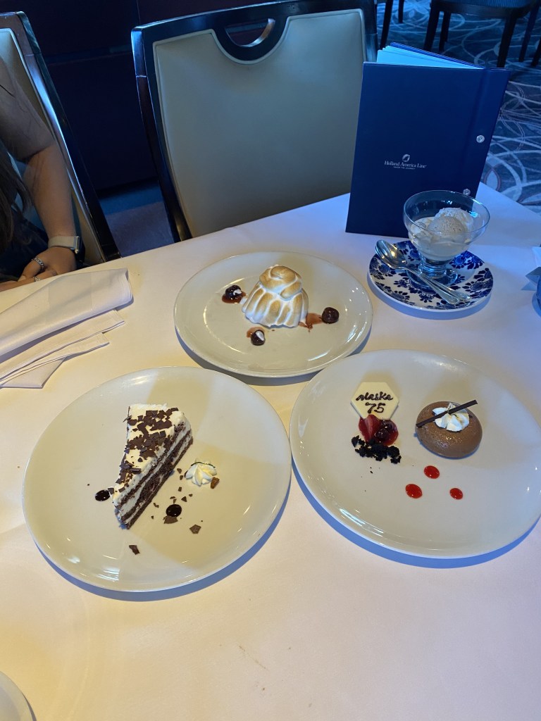 The best/worst part of cruising, you ask your server to bring you two desserts to share at the table, and he decides to bring you four instead.