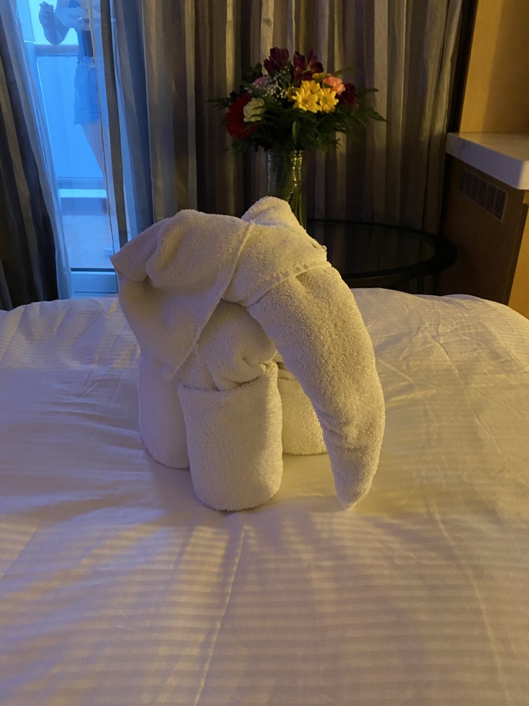 And lastly, our friend of the evening. Our elephant towel creation compliments of our room stewards.