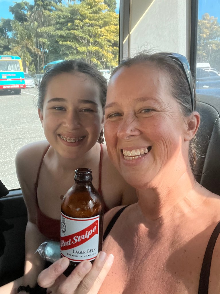 A day late, but as you know life gets crazy on the ship. Today we pulled into our very first port of this 2023 World Cruise adventure. We pulled into Falmouth, Jamaica around 10:30 am and were ready to disembark and go on our excursion. We took a bus over to Ocho Rios, about an hour away from the port. We had a lovely tour guide that shared a lot of local information about Jamaica and its history. Thank you, Stacy for giving Megan her history lesson for the day. We visited Dunes River Falls and got the opportunity to climb them. I hadn’t been there since 1993 so much has changed in 30 years. They actually scrub the rocks down now, but it was still a challenge and I was worried about one of us falling and injuring ourselves on the first excursion of our trip. We both came out relatively unscathed. A few bumps and bruises but it was a wonderful morning. Next we journeyed to a a touristy spot called Mystic mountain. There we got to “bobsled” down the mountain in a contraption where you get to control how fast, or slow you descend. Megan and I turned the brakes off, put it in full throttle and barreled all the way down the hill. We also had an adventurous ride on a type of roller coaster where your individual car swings to the left and right as you whip around the curves. In a few spots it actually swings you out and over the side of the cliff where the coaster is situated to increase your heart rate even more. We had lovely lunch of traditional style Jamaican jerk chicken and red beans and rice. (If anyone has a good recipe for Jerk Chicken, I’d LOVE to have it) I purchased a Red Stripe, the official beer of Jamaica, and enjoyed cooling off after all our adventures. So our excursion adventure lasted a bit longer then originally expected as there was a delay for about half the passengers that were also on our tour bus. They were zip lining and the locals are still on holiday which caused the lines to be longer than anticipated. You know it’s not a good sign when they board the tour bus at 5:15pm and you are supposed to be all aboard the ship by 5:30pm. And remember, we were an hour drive away. Let me now emphasize the importance of booking your excursion directly through Holland America. I can argue the pros and cons of this but this was definitely the biggest argument in favor of doing this. The ship waited for us. They delayed the departure of the ship as our driver made his own lane and tried to break the land speed record to get us back to the ship as soon as possible. We felt like VIPS when the bus pulled directly up the pier to the gang plank of the ship. As Megan and I always sit the back of the bus, we were among the last to get off and get back onto the ship. They pulled the gang plank up right behind us. We missed our 5:00pm seating time at the dining room, but we were too tired and in need of a shower to feel like getting dressed for the later seating. We enjoyed a delicious, casual meal in the Lido and I was on bed by 8:00pm. I walked over 7 miles yesterday between the morning workout, our hike up the falls and all our other adventures for the day. All in all a fantastic first day off the ship. I do also want to add that last night we received a very nice letter from Holland America apologizing to use for the stress and chaos that the excursion delay may have caused us. I know that this was completely out of the control of the excursion team and they even reimbursed us for the cost of our day. I feel that was way above and beyond and I want to recognize the level of customer service that we receive on this trip courtesy of Holland America staff and crew. Tomorrow is a sea day and we will enjoy all our normal activities that I will tell you all about tomorrow. To all our CA friends and family, please stay safe and dry. Love and Hugs to you all.