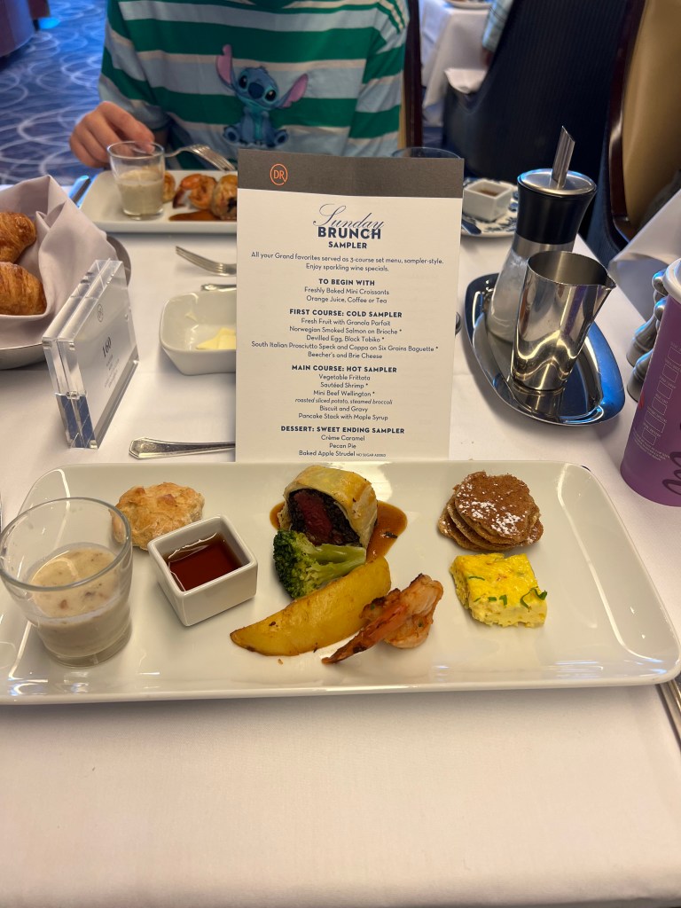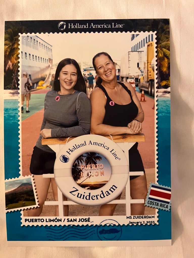 Sunday Sea Day. A true day of rest. Megan and I stayed in bed until 9:00am this morning. I woke especially early as normal, but forced myself to take a day off from eh gym and roll over and go back to sleep. After playing, who’s going to go across the hall and get mommy her coffee, I remembered we had to turn in our passports this morning so I lost. Periodically the ship has to present our passports on our behalf to immigration of certain countries. The first one is coming up so we turned over our passports to the ship for safe keeping. We also had to show them prove of our visas for both New Zealand and Australia as well as our yellow fever vaccination card. And yes, I did also get my coffee. Next it was off to crochet group. The group was a little smaller than usual this morning, porously because people were standing in line to submit the passports as well. You can imagine the logistics for having to do that for every passenger on board. This morning was the first Sunday brunch put on this cruise. We skipped breakfast this morning so we could participate in the event. See the menu posted below as well as a photo of the second course we were given. It always make me feel like a giant when we get to eat tiny food. It is always a wonderful sampling of some amazing foods and it did not disappoint. Then we headed back to the cabin because I have four days of blogs to get posted and I was hoping to get all caught up. It was a slow go but I successfully got all caught up on all my backlogged posts. Megan also met with Bonita for her tutoring for Algebra. I hope you enjoy seeing and reading about all the fun things we are doing. Don’t forget to check out the new and improved photos of Megan’s new hairdo. Make sure you leave comments and I can pass them on. Tomorrow is her 14th birthday and I have a few surprises up my sleeve. You’ll have to wait to hear about them tomorrow. I am waiting to hear back from the tailor on some alterations I want to have done on some clothes I brought. I have heard wonderful things about how well they sew. I also went to the photography studio and grabbed our portfolio of prints they have taken of us so far. I am in the process of getting them into my computer so I can show you all some of the great photos they have taken. I also have a new dress that I brought that I am not 100% happy with how it fit, so Henji, from guest services made arrangements for the tailor to come to my cabin and take a look at my dress. The tailor took to work on it and redesign the back it will be more comfortable for me to wear. We learned in 2020 that they do fantastic seamstress work on the ship. Permission had to be granted before they were allowed to work on my dress and I had to sign a release of liability waiver as well. It was then time to head back to the cabin to get ready for our 5:00pm seating for dinner in the main dining room. Tonight is Dressy night again so we opted for something a little dressier, which means what we would normally have worn, LOL! After dinner we took a little of our spare time and were finally able to reach out to family back at home. A quick hello and I love you was passed on while we had reception oh so briefly. Sometimes it’s all in the timing. Lastly, we went the Main stage to see tonight’s show called Swing, Swing, Swing. A 50’s style dance and singing show. It was pretty good and we enjoyed the music. Tonight we set our clocks ahead 30 minute. Yes, you read that correctly half an hour. So weird to us. We are officially leaving the Pacific time zone which we will not see again until May 12th, 2023. Farewell and Adieu. You must now do math again when remembering if it’s a good time to call or text me. Enjoy the photos some are from the past and one is from the brunch this morning. Eventually I’ll move the photos to the posts for the day they were taken. But for now I’ll post them a bit at a time so as to not overwhelm you all. Blessings and peace to you all.
