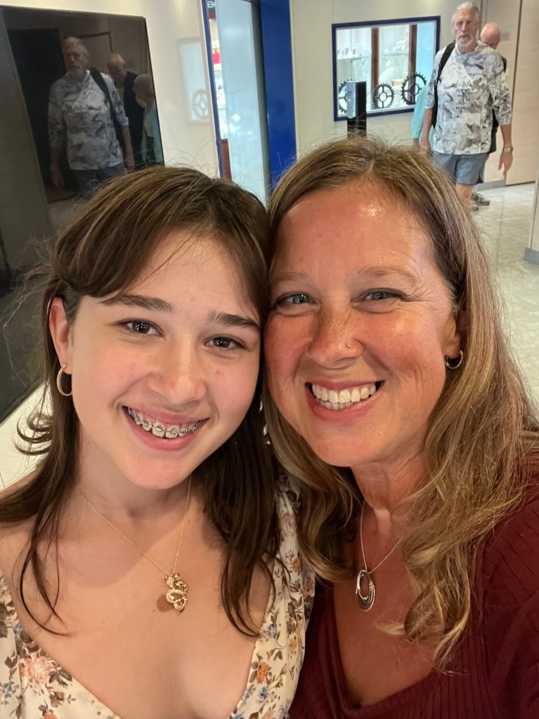 Last night we set our clocks back another hour so I unfortunately woke up at 4:00am. I laid in bed for about an hour before I got up and got ready to go the gym. The gym doesn’t open till 6:00am so I walked the decks on level 9 waiting for it to open. I was not the only one up that early either. After the gym I came home to wake up Megan. And because I am always so hungry after my workouts I want to go eat too. I have been coffee free now for about 2 weeks. I reward myself with a cup of tea after my workout now instead of coffee. We headed to the Pinnacle grill for breakfast and Megan brought another one of her mangos to eat. We allowed the waiter to take it to the kitchen and they cut and prepared it for her. Super sweet of them to do that!! She has one left and we are waiting for it to ripen. After breakfast I went to Project Linus and Megan went to play Mahjong. Megan came and got me around 11:30 as she was hungry for lunch today. There was a taco station and we both had build your own tacos for lunch. Next, we headed back to the cabin and I caught up on my blog from yesterday and Megan had Bonita come for tutoring. I watched a recorded EXC (excursion department) presentation of the upcoming ports of Auckland and Tauranga from the TV in our cabin. Most of the excursion talks take place at 10:00am and I have a conflict with my schedule due to Project Linus so I am glad they are recording them now so we can watch them later. We had to be at the shops by 1:45pm to model in the Effy jewelry store’s fashion show. We were given several beautiful pieces to wear and walk the “catwalk” as they talked about the pieces we were each wearing while announcing some fun facts, or hobbies we had told them about ourselves. It was a little nerve-racking walking in front of the other guests, but we definitely had fun with it and had a really good time. Afterwards, we all just stayed behind and received a nice thank you gift and shared a glass of champagne with the Effy store manager and talked about our lives. A very special and intimate time with other passengers and crew. The opportunity to bond with people on the world cruise is one of the things that allures me and others to come back again and again. It really becomes a family because we spend over a third of a year together. We have come to realize how precious time is and this trip away is truly a priceless gift we have given to ourselves. O.K., sorry the champagne makes me sentimental. After the fashion show we headed home to work on writing some postcards that we hope to send once we come into the next port of Tonga. We opted not to go to the main dining room for dinner tonight. Instead we went to Lido Buffet where we had the Chinese New Year Celebration the other evening. They had a stir fry station and I created (they cooked) a low calorie, low sodium, vegetarian stir fry for me and it was delicious and guilt free. Megan enjoyed some traditional Chinese food dishes and we shared some tempura. After dinner we headed to the Neptune Lounge for about an hour of Rummikub (Yes, that is the correct spelling. I had previously spelled it incorrectly and notice that on the box yesterday). After I beat Megan, two games to one, we headed home. I relaxed and got into my jammies and Megan went to the swimming pool for an hour. The pool doesn’t close until 9:00pm so she took advantage of being the only person in the pool and got in a few good cannonballs!! Another fantastic day. I am exhausted since I was up so early. Tonight is the weirdest night of the cruise for us. I shall go sleep on Friday January 27th and when I wake up it will be Sunday January 29th. Farewell to January 28th, for I shall never know you for I left you on the other side of the international date line. LOL!! Hugs and Love to you ALL!!