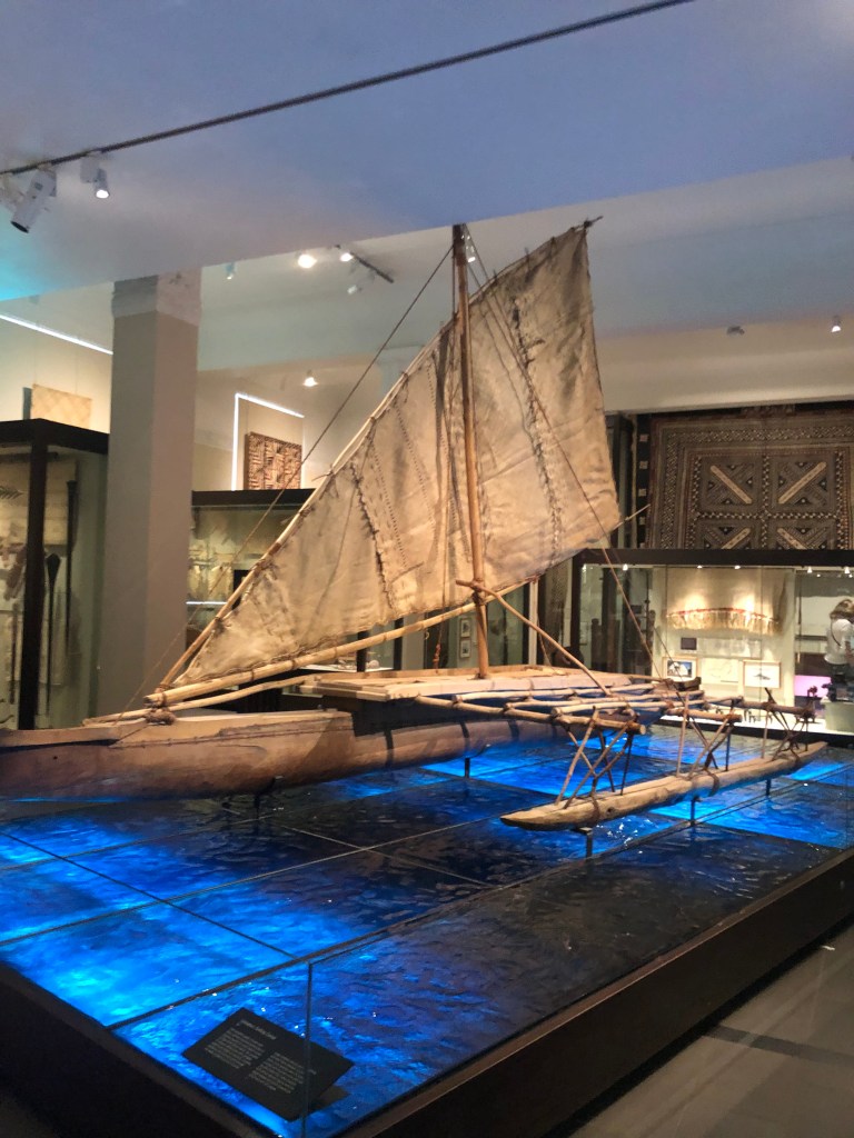 Happy Groundhog Day from Auckland! It’s a little groundhog Day-ee for us as we went to visit the Auckland War Museum that we got to visit in 2020. We slept in a little this morning. The alarm went off at 7:30am and when we awoke we were already in port. A shout of to my friends on the 2023 World Cruise facebook page for the beautiful photo taken of the city lights very early this morning. The pilot boarded our ship at 4:30am to bring us in as we had to be settled in before the ferry pier next to us started their daily runs. We went to the lido for a light breakfast and then headed off on our adventure for the day. I had previously purchased a membership to the museum and made a reservation to see their special exhibit on Stonehenge. A quick Uber ride to the museum and that’s where we spent our entire day. When we were here previously, we only had about an hour and a half in the museum and today we spent 6 hours and still didn’t see it all. It was a super educational experience and Megan took lots of notes in her journal. There are several photos to share and I hope you enjoy seeing a small part of all the wonderful things we saw and learned today about the Maori, New Zealand culture and history. We Ubered back to the pier and were able to find postcards and stamps and a few more cans of Dr. Pepper for Megan. We also picked up some gifts and souvenirs as well. The shopping was plentiful for sure. We saw a couple from the ship coming back from the grocery store and they were pulling a collapsible wagon filled with their treasures for the day. They said they were shopping for a few passengers and it was an ingenious way to get around and not have to carry everything. By the time we got back on the ship we had time for a quick call home to Valerie and Mom and then it was time to get ready for dinner. We walked around a little after dinner and ran into Freddy and Bob and had a chance to talk and catch up with them. We also stopped by the spa to talk to Raquel. She works on the ship and is from Mexico and is fluent in Spanish. She agreed to meet Megan on the next sea day so they could crochet and work on Megan’s Spanish at the same time. A win win for both of them, I think. We are wrapping up our evening at home. I’m finishing my blog and thinking about what we need to get ready for our next adventure tomorrow in Tauranga, New Zealand. But you’ll have to wait to hear about it till them. Sweet dreams and good health to you all from about 6,400 miles away.