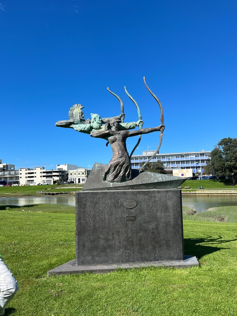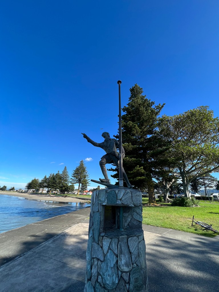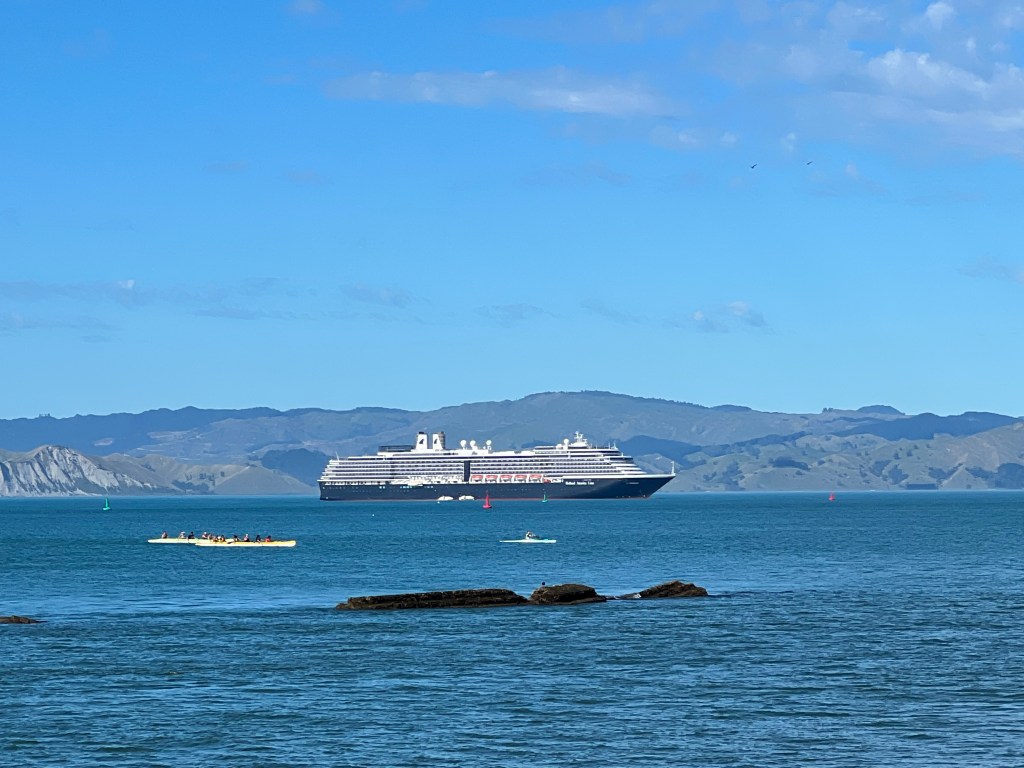 It’s was an early start day for us today. We were up with the sun and getting ready to go and meet the excursion group at 7:45am. Megan and I went on a bike tour today! We grabbed a quick breakfast in the Lido and then headed to the Main stage to meet our tour group and grab the tender off the ship. It was a smooth ride over to the pier and right at the end of pier we met our tour company The Gisborne Cycle Tour Company. We were all fitted with helmets, day glow green vests and our bikes and we were off on our adventure. Gisborne is such a beautiful area. It is the most easternly city in to the world. It is known as the the city “First to see the Sun”. As the sun rises first here before anywhere else in the world. We rode around the beach area and enjoyed what a day in the life is like here. It is Saturday so there are families just out and enjoying life. As was the same at our other New Zealand ports, there has been so much rain this entire summer. But today the sun was shining and you could tell everyone was so happy just to be enjoying a day outside in the beautiful weather. We rode our bikes around the Gisborne area and saw several local monuments, statues, and historical sites. We learned about the rich history of the Maori people who are indigenous to this area. There is over 50% Maori population here, the largest percentage in all of New Zealand. Spending the day here I can see why they would have chosen this area. After our fantastic bike tour we went to a restaurant right by the pier for drink and a snack. I had a delicious apple cider and Megan had a ginger beer. The young boy who waited on us must have been a family member of the owners and couldn’t have been more than 11 or 12 years old. It was weird ordering an alcoholic beverage from such a young man. We got to sit with Peter from the bike company and had a delightful conversation with him. After we returned our bikes, Megan and I walked into town a bit and found a local grocery store. We needed some crackers to go with the cheeses we picked up yesterday and Megan had a Cadbury ice cream bar. At this point of the day the sun was high, the temperature was rising and it was humid. So we decided it was best to head back to the ship. Since we were already dressed appropriately when we got back on the ship Megan suggested we go to the gym. She was excited to be able to try out the equipment without the intimidation of there being any passengers in there. We spent about an hour in there and got a good workout in. Then Megan decided she wanted to go play volleyball. I was pooped at this point so I opted to hit the showers. Before you knew it, it was time to head to the main dining room for dinner. After dinner this evening we had a cocktail party with some of the other guests, officers, and the captain. It was a really nice evening and we stayed and talk until almost 9:00pm. I think that is one of the latest evenings I have been up since we started our cruise. I am exhausted from our long day of fun, sun and fellowship. My heart is full with all the human connections and interactions I had today. I do live a relatively recluse life back at home. Maybe need to make some changes when I get back. But first, rest. Tomorrow is another port day and another adventure awaits us. Enjoy all the photos we took today!