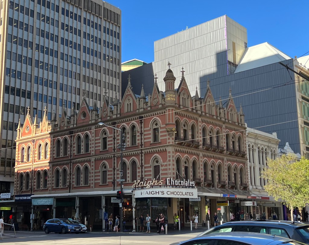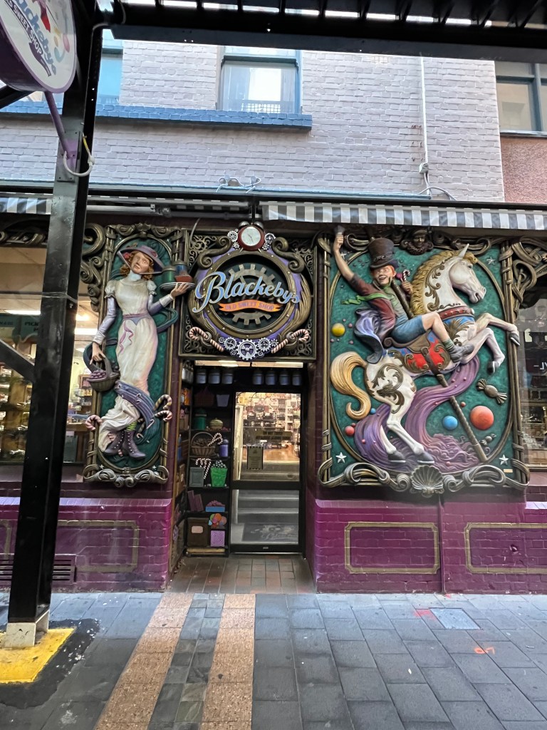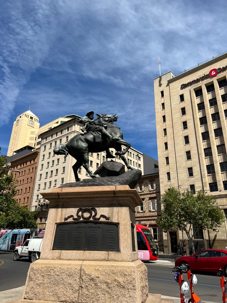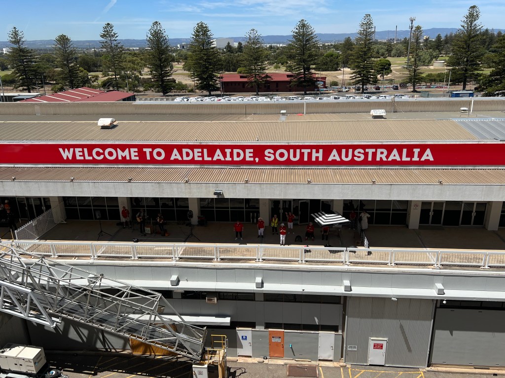 Today was a sea day and port day rolled into one. Happy Valentine’s day to all our loved ones back in the states. Being a day ahead we had Valentine’s day here a day before so it feels like we had almost 48 hours of lovey dovey holiday this year. We set our clocks back .5 hours last night. That time change in always a strange one, only a half an hour. I started my day with an acupuncture appointment at 8:00 am. I had never been to one before but had watched someone get it once. I felt some relief and am going to see him again tomorrow. It was explained that is is similar to chiropractic care in that you have to go a few times in a short period of time and then less often for maintenance. I ate breakfast solo this morning and gave Megan some extra time to sleep in. Then I got a chance to go to project Linus. After, I went with Megan to eat lunch. Then we headed home to read and get ready for the afternoon activities. The ship pulled into Adelaide Port and we were cleared to get off the ship at 2:00pm. Megan and I took the first train from the port into Adeleiade. The train was about a 40 minute ride and it was standing room only. So many passengers got off the ship and filled that first train out of the station. When we arrived in downtown Adelaide and walked around. We ate some fantastic sushi. Megan got a squish mellow, we found a cool toy store and we got a couple of puzzles too. Megan also found and bought pop tarts. We were excited to find a skate shop and I got a Santa Cruz Brand T-shirt. The shop owner was excited to meet someone “from” Santa Cruz and gave us some stickers from his shop. This shirt is special to me now cause it’s from Australia. We also went into Lincraft and I bought some Australian Merino wool yarn and I am going to make myself something as a souvenir too. We walked about 10,000 steps today. We found a small Mexican restaurant before heading back to the train station and split an enchilada. There were way less people on the train heading home and we luckily got to sit. We spend the night in Adelaide and have an excursion tomorrow. We are showered and ready to hit the hay tonight. There are six squish mellows on my bed and Megan. It’s getting crowded in here. Lol!!