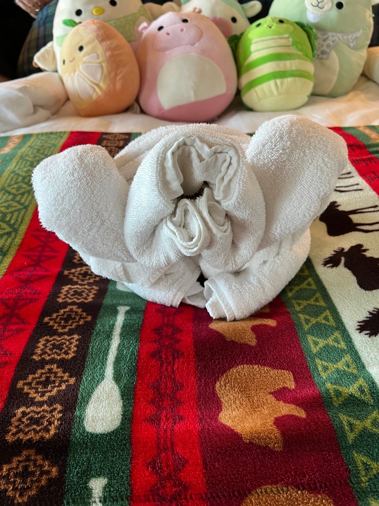 Hello from the Southern Sea’s of Australia. As we head West towards Fremantle over the next few days we get an opportunity to rest up, socialize with our friends we haven’t seen in a few days while we were in port, and catch up on some of our daily pass times. This morning we were up and off to the Pinnacle Grill for breakfast. Then we went to project Linus. I finished my fifth blanket and got to turn it in. I also, got to start my sixth blanket. I haven’t been able to crochet as much with my back bothering so much so I feel like I have at least temporally sewed down a bit. Hoping to get back to it more frequently as soon as I am feeling better. I went and had another session with the acupuncturist today as well. The recovery is slow and I am uber frustrated with the fact I am forced to slow down. The Dr. said it’s my body trying to tell me something so I just have to listen and allow myself to heal. I haven’t been to the gym in over a week and I suspect it will still be bit longer. Since Megan isn’t have tutoring today, because it is the Sabbath for our tutor, she and I took one of our newly purchased puzzles to the crows nest and spent about 3 hours completing a puzzle from start to finish. We got to listen to the afternoon trivia (we don’t play) and then the room turned to people coming in to play games. Mah Jong, Rummikub, bridge, chess, it was quite a mecca of activity. After we finished our puzzle we headed home to get ready for dressy night dinner in the main dining room. Megan and I wore our new dresses we purchases in Sydney and sadly, we forgot to take any pictures. We’ll have to wear them again, not a problem on the ship, and take photos next time. After dinner I was straight into my PJ’s and did get a chance to do a little extra crocheting tonight in the cabin as Megan and I watched a movie and just relaxed. We set the clocks back an hour again tonight. Making us 7 hours behind Ca time zone starting tomorrow morning. We are not setting an alarm tonight and we are sleeping in tomorrow. Tomorrow another sea day! Hugs from Megan and I!!