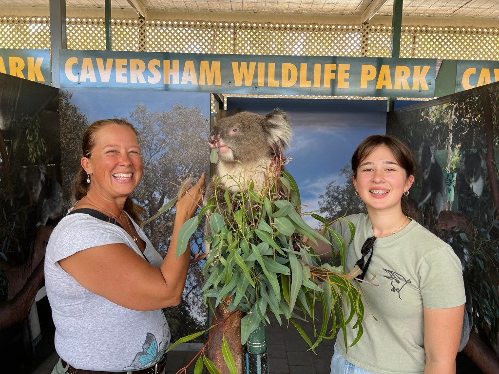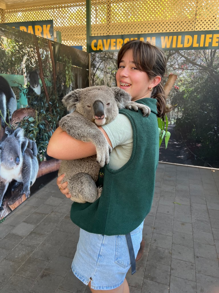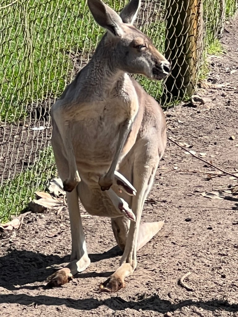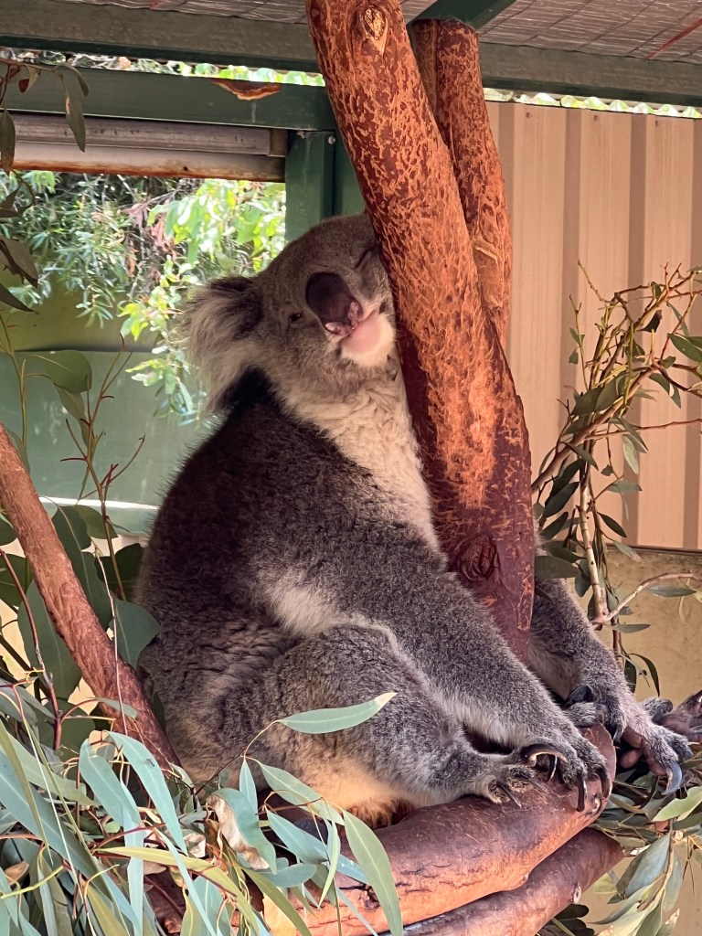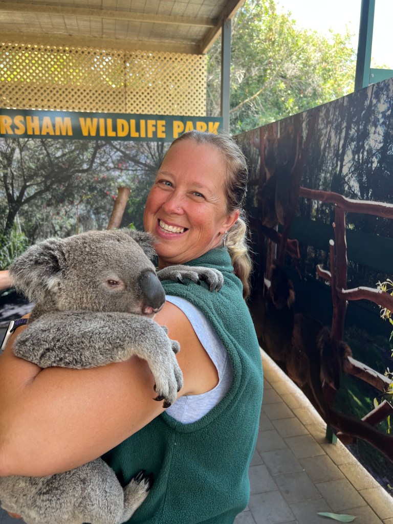 Good morning from Fremantle Day 2. Today was an early start for us. Alarm went off at 6:30 am so we could be ready to be off the ship by 7:30am. We grabbed a quick breakfast in the Lido and then we were off the ship among very few passengers this morning. We grabbed an Uber and ventured to Perth, Australia, about an hour away to the Caversham Wildlife Park. This was our last opportunity to get to hold a Koala before we departed Australia and I was going to do everything in my abilities to make it happen. The park opened at 9:00am so I made sure we were there by 8:30am. They sell the Koala holding experience tickets first come first served, no reservations available. Needless to say Megan and I were the first two people into the park this morning and purchase our tickets, #1 and #2. The holding was at 12:00 noon so we had a few hours to enjoy the park. We spent an hour in the kangaroo enclosure feeding and bonding with the different breeds of kangaroo they had there. It was still cool and they were hungry early in the morning so it was a fantastic experience. We saw several Kangaroos with their Joey’s still in their pouches with various body parts hanging it. It was a little like an alien movie. We got to attend the “Farm Show” where we watched a sheep get sheered and Megan had the opportunity to bottle feed a baby lamb. Then, we got to go and have an up close meeting with Cali the Wombat and Lilah (happy nana moment) the baby Quokka, and we also got to hold an Olive Python. Then we walked through the reptile area before heading to the Koala photo session. Every guest of the park gets to have their photo taken with a Koala and pet it with the back of your hand. There we met Sunshine the Koala. By then it was noon and it was time, drumrolls, nervous excitement and overwhelming feelings of appreciation washed over me. They called our numbers and we were given a fleece vest to put on over our clothes and the employee brought us Fred the Koala to hold and cuddle and take hundreds of photos with. It was an amazing experience and I will never forget it. The port of Fremantle now holds an especially traumatic and an amazingly wonderful memory for me!! We grabbed something to eat at the cafe and hydrated before we went to the gift shop for some souvenirs before getting an Uber to take us back to the ship. What a wonderful blessing it was to be able to fulfill that lifelong dream of holding a Koala. I collected stuffed Koala’s when I was a little girl and they have always held a special place in my heart as long as I can remember. When we got back to the ship it was time to relax a bit before heading out to the sail away party. A therapeutic ending and some closure that I didn’t even realize I needed. So I bid Fremantle adieu and put some new wonderful experiences into my memory banks. We also say goodbye to Australia. As we now head south toward Mauritius. We will be at sea for a week before we get to touch land again. Time to catch up on some rest, have a few more treatments, catch up with friends and hear about their adventures the last couple of days, and hopefully slowly return to the gym and my exercise routine. I am about 75% back to normal and am happy to say I can mostly bend over without winching anymore. Thank you all for taking the time to read and enjoy our adventures along with us. There is quite a few photos to see from today and one “Where’s Waldo” (Megan) photo to enjoy. It’s time to hit the showers cause despite the cuteness factor of a Koala, they are also equally as stinky. Good night and Hugs from abroad.