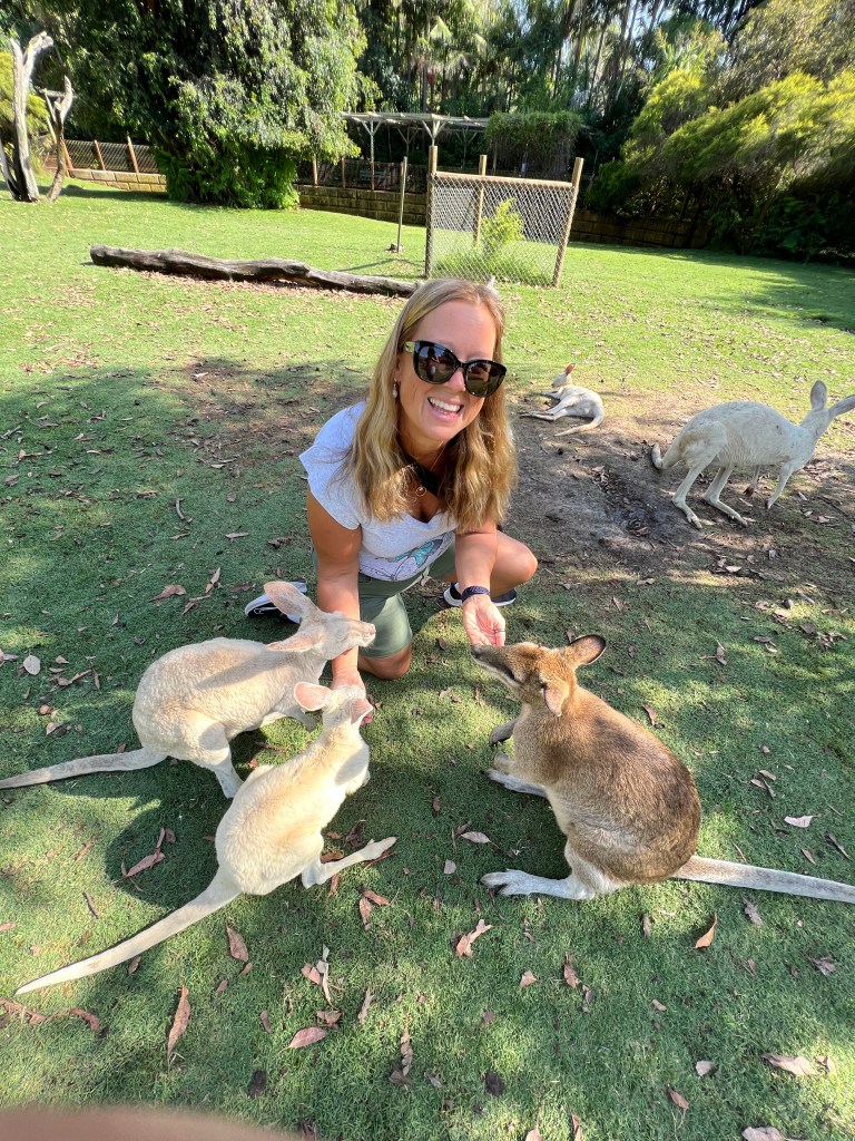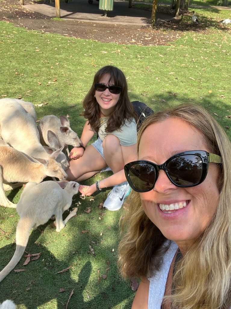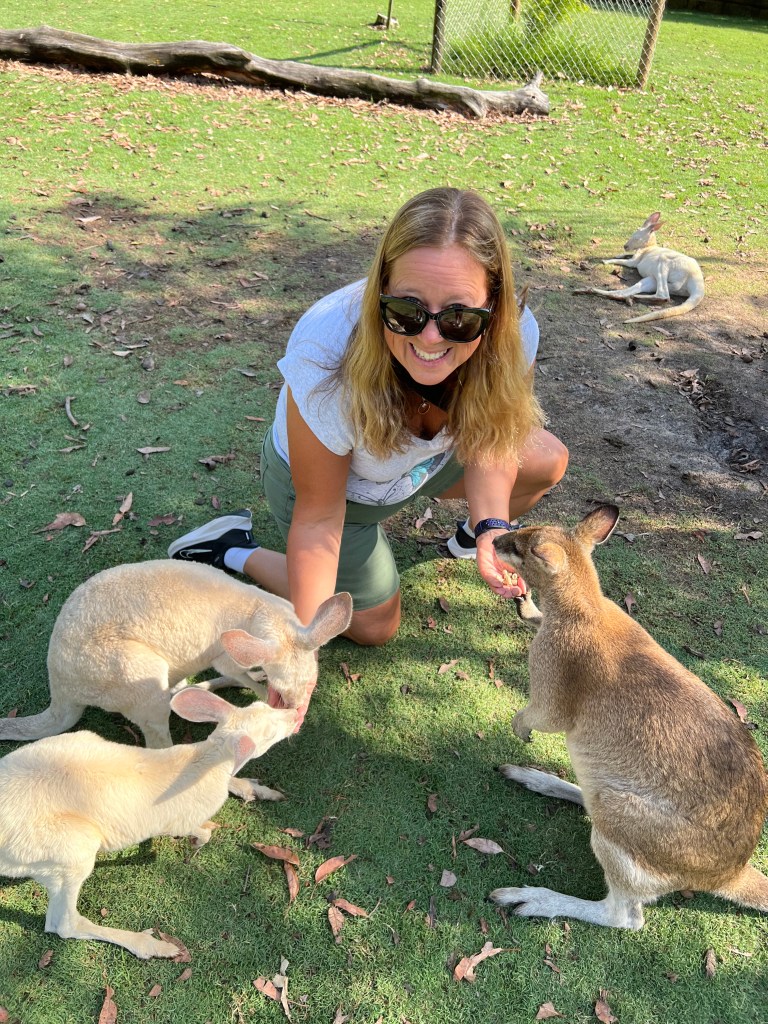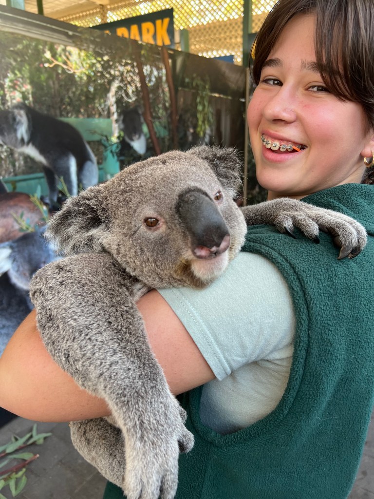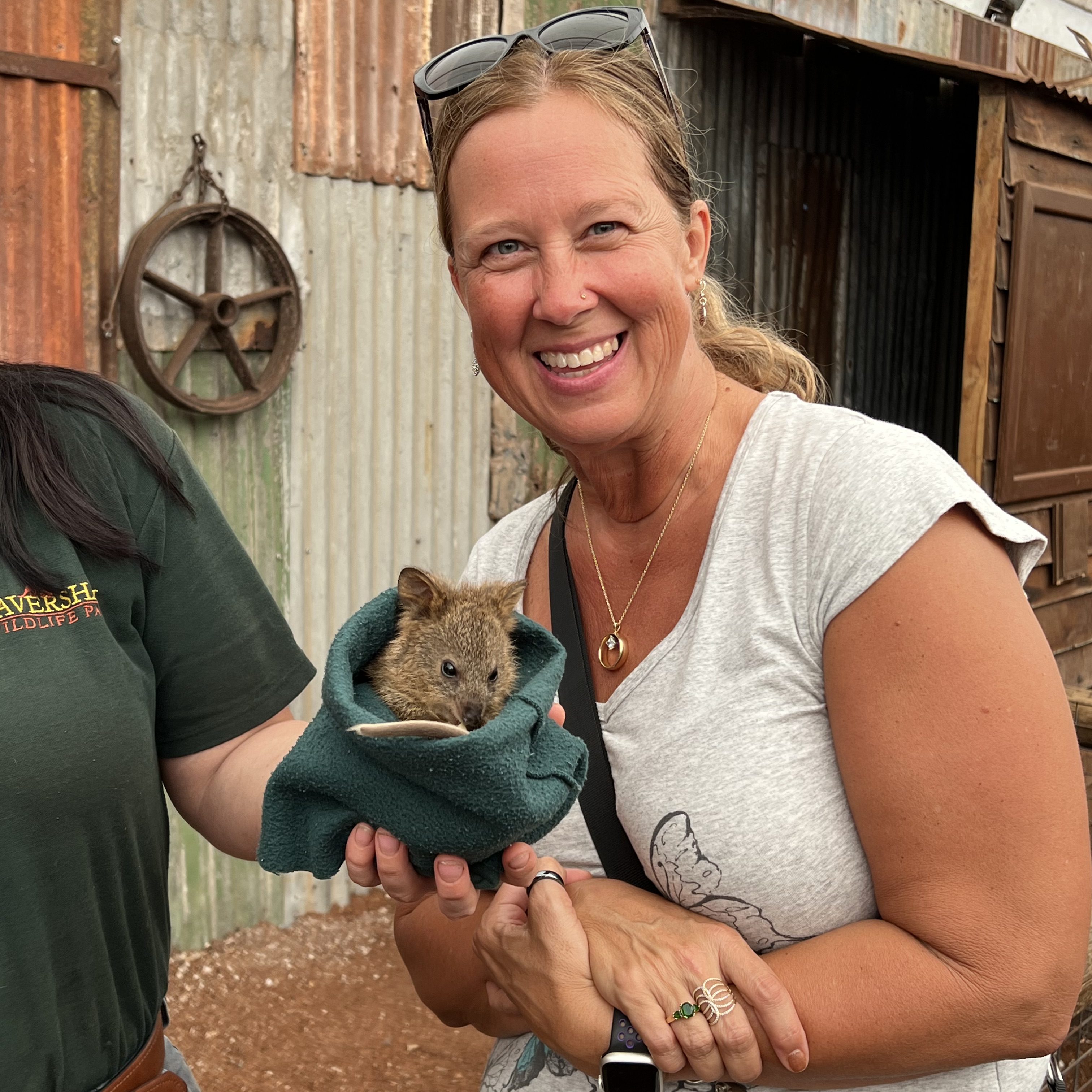 Good morning from Fremantle Day 2. Today was an early start for us. Alarm went off at 6:30 am so we could be ready to be off the ship by 7:30am. We grabbed a quick breakfast in the Lido and then we were off the ship among very few passengers this morning. We grabbed an Uber and ventured to Perth, Australia, about an hour away to the Caversham Wildlife Park. This was our last opportunity to get to hold a Koala before we departed Australia and I was going to do everything in my abilities to make it happen. The park opened at 9:00am so I made sure we were there by 8:30am. They sell the Koala holding experience tickets first come first served, no reservations available. Needless to say Megan and I were the first two people into the park this morning and purchase our tickets, #1 and #2. The holding was at 12:00 noon so we had a few hours to enjoy the park. We spent an hour in the kangaroo enclosure feeding and bonding with the different breeds of kangaroo they had there. It was still cool and they were hungry early in the morning so it was a fantastic experience. We saw several Kangaroos with their Joey’s still in their pouches with various body parts hanging it. It was a little like an alien movie. We got to attend the “Farm Show” where we watched a sheep get sheered and Megan had the opportunity to bottle feed a baby lamb. Then, we got to go and have an up close meeting with Cali the Wombat and Lilah (happy nana moment) the baby Quokka, and we also got to hold an Olive Python. Then we walked through the reptile area before heading to the Koala photo session. Every guest of the park gets to have their photo taken with a Koala and pet it with the back of your hand. There we met Sunshine the Koala. By then it was noon and it was time, drumrolls, nervous excitement and overwhelming feelings of appreciation washed over me. They called our numbers and we were given a fleece vest to put on over our clothes and the employee brought us Fred the Koala to hold and cuddle and take hundreds of photos with. It was an amazing experience and I will never forget it. The port of Fremantle now holds an especially traumatic and an amazingly wonderful memory for me!! We grabbed something to eat at the cafe and hydrated before we went to the gift shop for some souvenirs before getting an Uber to take us back to the ship. What a wonderful blessing it was to be able to fulfill that lifelong dream of holding a Koala. I collected stuffed Koala’s when I was a little girl and they have always held a special place in my heart as long as I can remember. When we got back to the ship it was time to relax a bit before heading out to the sail away party. A therapeutic ending and some closure that I didn’t even realize I needed. So I bid Fremantle adieu and put some new wonderful experiences into my memory banks. We also say goodbye to Australia. As we now head south toward Mauritius. We will be at sea for a week before we get to touch land again. Time to catch up on some rest, have a few more treatments, catch up with friends and hear about their adventures the last couple of days, and hopefully slowly return to the gym and my exercise routine. I am about 75% back to normal and am happy to say I can mostly bend over without winching anymore. Thank you all for taking the time to read and enjoy our adventures along with us. There is quite a few photos to see from today and one “Where’s Waldo” (Megan) photo to enjoy. It’s time to hit the showers cause despite the cuteness factor of a Koala, they are also equally as stinky. Good night and Hugs from abroad.