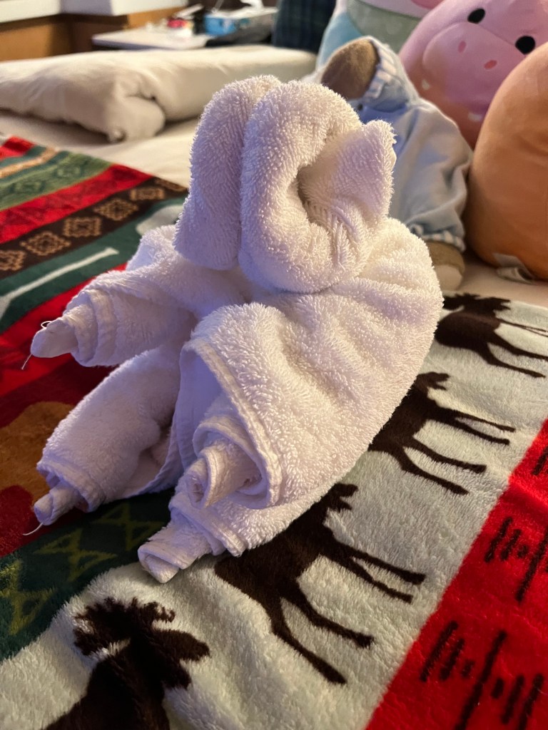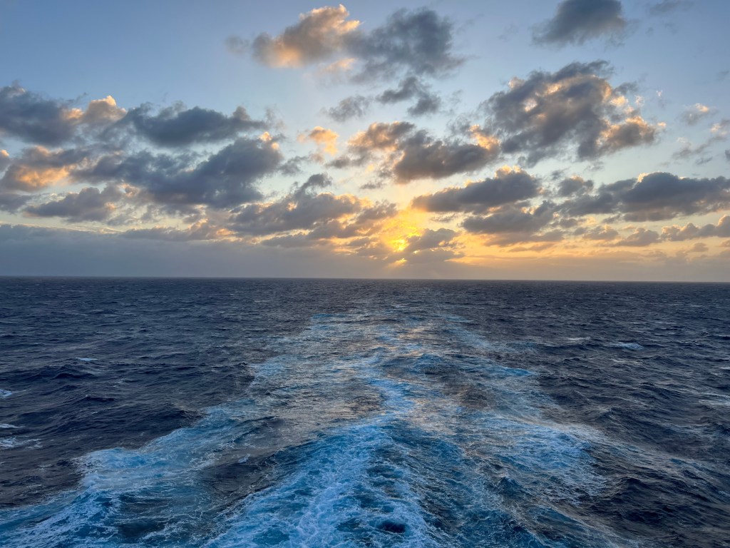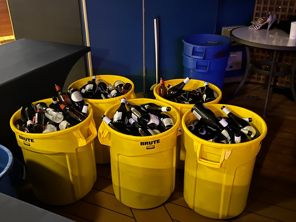 Lots going on around the ship today. They really try and keep us busy on Sea Days. There is much to do if you want to join in or you can choose to do a little or nothing at all. I was up at 5:30am this morning and decided to take a break from the gym. I am still feeling good and I want to keep it that way. Instead I grabbed my tea and went to the Lido aft deck and watched the sun rise. The weather was warm, the wind was blowing and the sun was out for the first time in a couple of days. I got some amazing photos and I hope you enjoy them. After I watched the sun rise, I went back to the cabin and woke up Megan. We went to the Pinnacle Grill and had breakfast. They had a special today, avocado toast, it wasn’t as good as mine is, but it was a nice switch from my normal vegetarian omelet. After breakfast we went and did our project Linus time. Around 11:00 am we headed home and change into our bathing suits. The sun was shining, the weather was warm and I needed to bronze my body. Megan had tutoring at 12:30 and I napped on my lounge chair. We rounded up our afternoon with a nice soak in the hot tub before heading home. I had an acupuncture appointment at 2:30pm and then I headed home. Megan and I crocheted and watched a movie this afternoon until it was time to get ready for dinner. Tonight was formal night and we took some extra time getting all dolled up for dinner. We had a special menu tonight compete with escargot and steak & lobster. I had a lamb shank and a lobster tail. Hey what good is it being on a cruise if you can’t get exactly what you want right? LOL!! After dinner we headed home so I could write my blog and we could wait out part of the evening until the party at 9:00pm. We were greeted in our cabin by an adorable towel animal and a pillow gift from Holland America. They gave us each a power bank with the 2023 WC logo on it. Tonight’s party theme was a “Poolside Crew Party.” It was a night for the memory books. Crew member Nyron was our DJ all night. The music started at 9:00pm appropriately with Toto’s Africa and it didn’t stop until 12:15 am. The ship hosted champagne for the guest and it was free flowing. The photo below is just a small portion of the bottles that were consumed tonight. We visited with friends, both passengers and crew members. The crew was allowed to come in their street clothes and dance and party with the passengers. Everyone seems to have a most fantastic time. At 10:30pm there was a late night buffet and everyone who wanted to, could visit the Lido and eat, as taco bell used to call it, fourth meal. Some of this crew generally don’t get to eat in the passenger area as they have their own dining area and it was a wonderful time for everyone. Megan and I took to the dance floor around 10:00pm and we barely stopped until the music did. We have sore feet, happy hearts, and sweaty bodies. There will definitely be clothes needing to go to get dry cleaned and showers to be had before bedtime. The weather out around the pool deck couldn’t have been any better. It was perfectly warm and they had the retractable pool roof fully open all night. I can’t express enough how wonderful it was to see all the crew who work so very hard, who take such wonderful care of us, dancing and laughing and joining in with us in the celebration of just being right here right now. I feel bad for those who have the morning shift tomorrow and there is a time change tonight, another hour back. Hopefully that means some extra rest for some. LOL. Thank you for following along on my journey with me. I am feeling especially blessed this evening as I go to sleep. The upcoming Safari we are about to go on, the fun we had this evening, my wonderful family at home living their lives and holding down the fort while I am away, I have much to be thankful for. I will have one more post tomorrow and then I will be MIA for a few days as we travel on land. Megan is hoping for a room with two beds as we have been sharing a bed for 62 days along with a myriad of squishmallows and pillows in a wall between us. But she would love the opportunity to have her own bed for a couple of nights. Enjoy the photos!