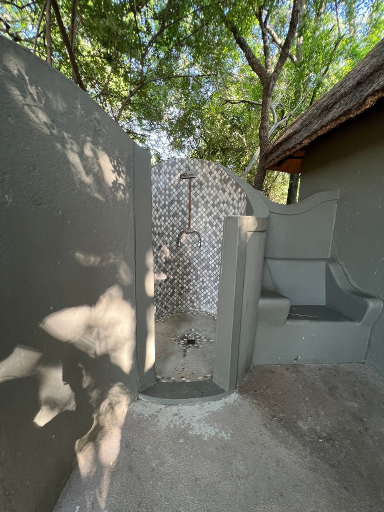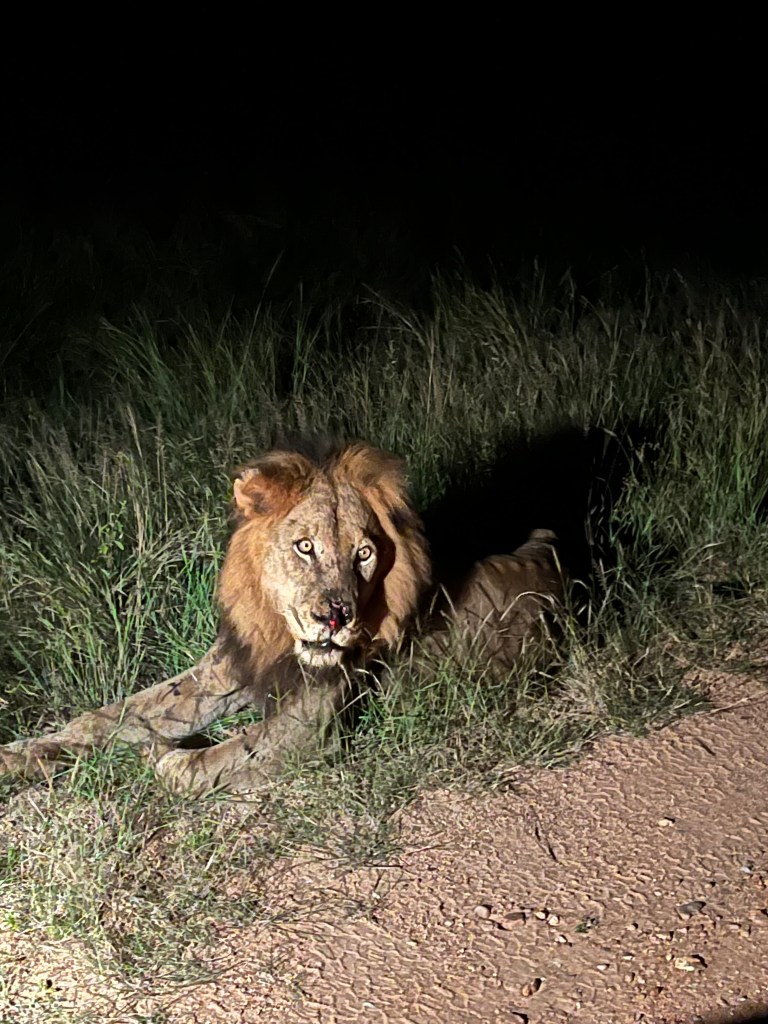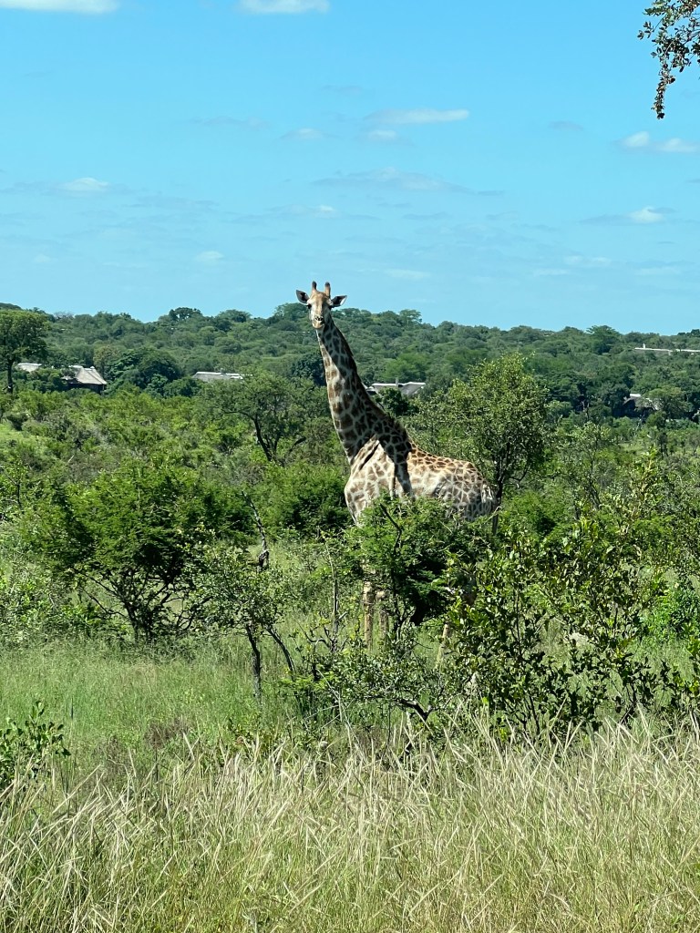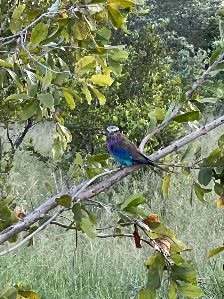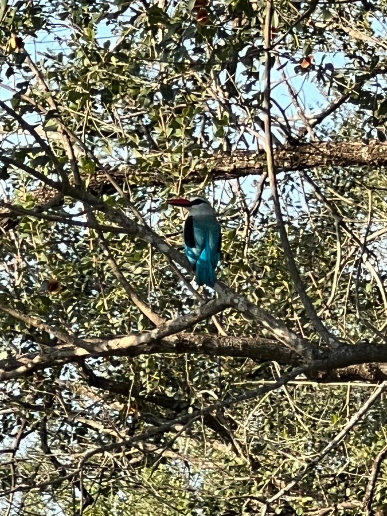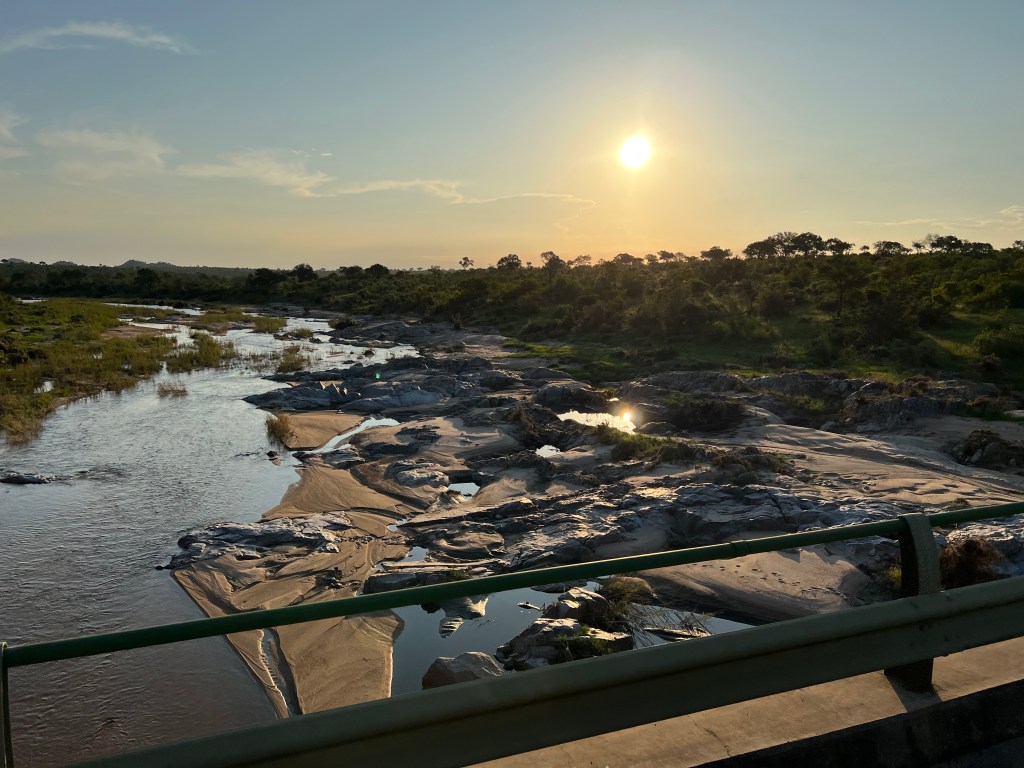 Before I even got out of bed this morning I smelled fire. I went outside on the balcony and the smell was even stronger. I watched the sun rise in the East as the full moon was setting in the west. It was an amazing sight to see. Last night we preordered room service for the first time. We were able to eat breakfast in our cabin while we finished getting up and ready for the Safari. Around 8:00am we headed to the Rolling Stone Lounge and waited for immigration to finish clearing us so we could get our passports back before getting off the ship. We loaded up into two separate vans to accommodate our group of 25. Our van had a trailer behind it with all our luggage in it. We had to drive about three hours to Kruger. We passed through three toll booths and paid a toll, but there are no EZ Pass lanes. Along our drive we saw hundreds of trucks hauling iron ore, coal and raw chrome to the port for export to China. Sadly, the driver told us there is not enough coal here to power the country, yet they export so much to other countries. They actually have mandatory power shut offs three times a day lasting a minimum of two hours each. Around 11:00 we came to the Mozambique/South Africa border. We had to get off the bus and get into line for passport inspection. We got stamped and got back into the bus. About a mile up the road we repeated the process again as we needed to go through immigration to get into South Africa. Quite a long process. But with the kindness and expertise of our driver we got through very smoothly. Ahhh. But did we? Unfortunately our HAL escort got stopped at the South African border. She did not have a visa and we had to leave her there. After an hour of failed negotiations, they are making transportation arrangements to get her back to the ship and we ventured forward. We stopped to pick up pre-boxed lunches and continued on and ate lunch in our bus. We were stopped three times along our drive by police offers looking for people not traveling with proper papers. We saw lots of agricultural land papayas, mango, banana, lemons and sugar which they use to make gin. As we crossed the bridge at Crocodile River just before entering the gates at Kruger Park, we saw crocodiles, impalas and hippopotamuses and we weren’t even in the park yet. We arrived at the Jock Safari house and were warmly greeting by so many staff that work here. We were given a quick tour of the property and then we were escorted to the dining hall where there was food and drinks waiting for us. There is a small community pool, two swinging chairs, and a beautiful view of the river below. There is an electrical fence surrounding the entire compound and security 24/7 to protect us. The lodge is so beautiful. We were given a quick talk on the itinerary, meeting times and places for the rest of the day. Next, we were escort to our suite where our luggage was already waiting for us. We have our own little piece of paradise right here in Africa. We have a small private plunge pool on our giant patio, an outdoor shower and an outdoor bathtub and a large screened in enclosure with a day bed. Inside our room is all the amenities you could need. Coffee maker and fridge a king size bed with mosquito netting, a huge double headed shower and two sinks. We also have a small sitting area. There was a lovely letter welcoming us to the lodge. We feel so pampered. There are 25 guests here and I think there are as many, if not more, employees as there is guests. We were given about 90 minutes to get settled in. We dipped our feet in the pool and took in the amazing view from our deck. Then it was time to get ready for our first game animal drive. We met up with our group and our Ranger Lazarus who will be our driver and guide for the duration of our stay here. He has worked in Kroger National Park for twenty one years. At 4:30 we were separated into four jeeps and away we went!