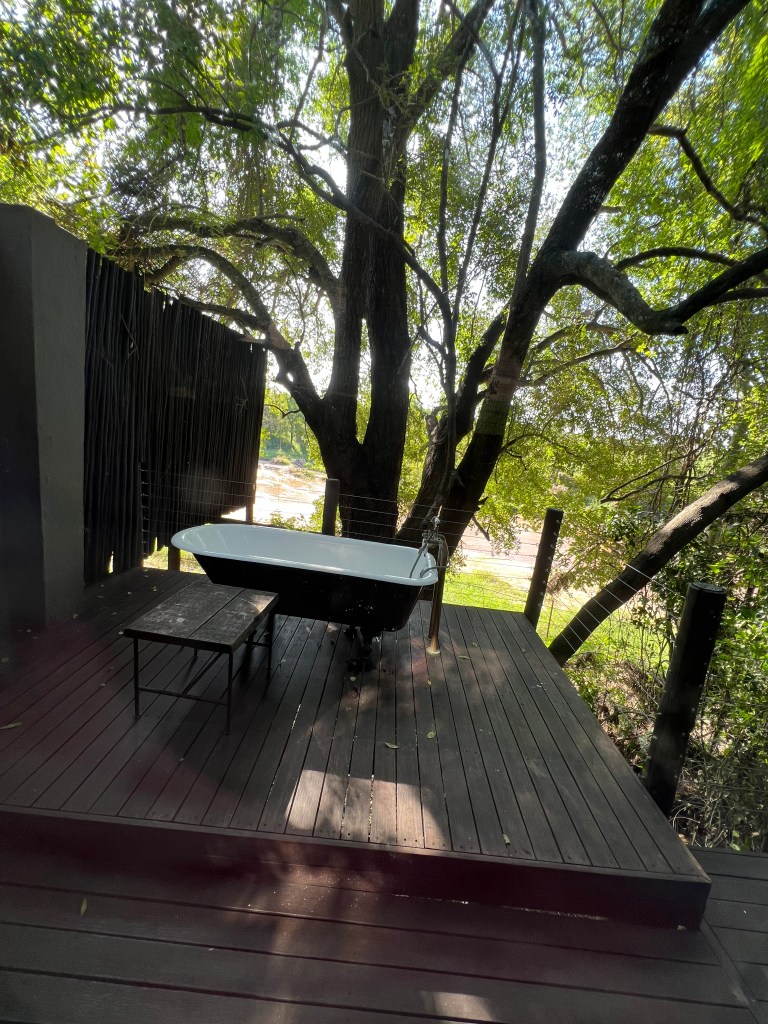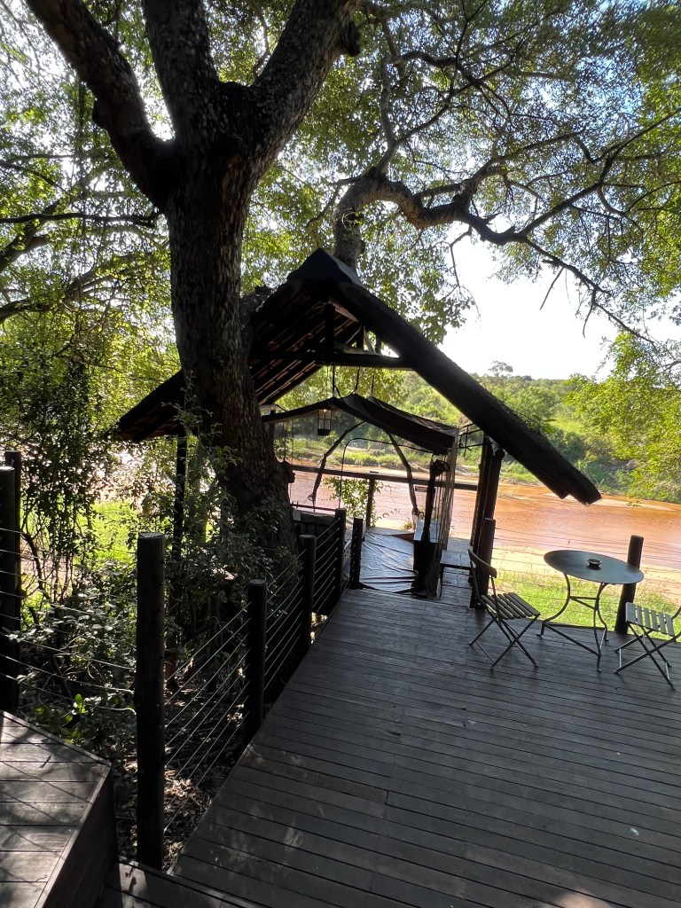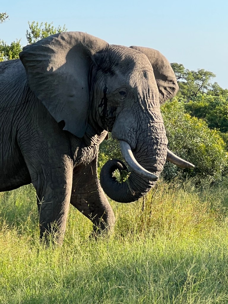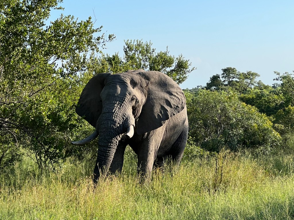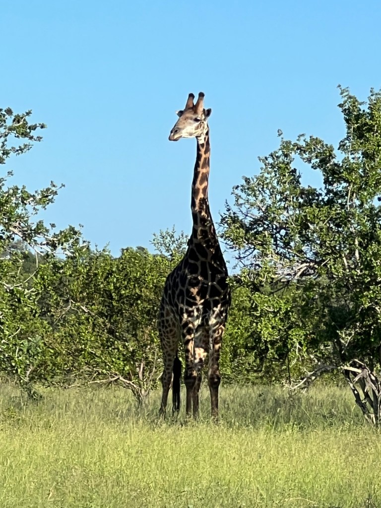 Before I even got out of bed this morning I smelled fire. I went outside on the balcony and the smell was even stronger. I watched the sun rise in the East as the full moon was setting in the west. It was an amazing sight to see. Last night we preordered room service for the first time. We were able to eat breakfast in our cabin while we finished getting up and ready for the Safari. Around 8:00am we headed to the Rolling Stone Lounge and waited for immigration to finish clearing us so we could get our passports back before getting off the ship. We loaded up into two separate vans to accommodate our group of 25. Our van had a trailer behind it with all our luggage in it. We had to drive about three hours to Kruger. We passed through three toll booths and paid a toll, but there are no EZ Pass lanes. Along our drive we saw hundreds of trucks hauling iron ore, coal and raw chrome to the port for export to China. Sadly, the driver told us there is not enough coal here to power the country, yet they export so much to other countries. They actually have mandatory power shut offs three times a day lasting a minimum of two hours each. Around 11:00 we came to the Mozambique/South Africa border. We had to get off the bus and get into line for passport inspection. We got stamped and got back into the bus. About a mile up the road we repeated the process again as we needed to go through immigration to get into South Africa. Quite a long process. But with the kindness and expertise of our driver we got through very smoothly. Ahhh. But did we? Unfortunately our HAL escort got stopped at the South African border. She did not have a visa and we had to leave her there. After an hour of failed negotiations, they are making transportation arrangements to get her back to the ship and we ventured forward. We stopped to pick up pre-boxed lunches and continued on and ate lunch in our bus. We were stopped three times along our drive by police offers looking for people not traveling with proper papers. We saw lots of agricultural land papayas, mango, banana, lemons and sugar which they use to make gin. As we crossed the bridge at Crocodile River just before entering the gates at Kruger Park, we saw crocodiles, impalas and hippopotamuses and we weren’t even in the park yet. We arrived at the Jock Safari house and were warmly greeting by so many staff that work here. We were given a quick tour of the property and then we were escorted to the dining hall where there was food and drinks waiting for us. There is a small community pool, two swinging chairs, and a beautiful view of the river below. There is an electrical fence surrounding the entire compound and security 24/7 to protect us. The lodge is so beautiful. We were given a quick talk on the itinerary, meeting times and places for the rest of the day. Next, we were escort to our suite where our luggage was already waiting for us. We have our own little piece of paradise right here in Africa. We have a small private plunge pool on our giant patio, an outdoor shower and an outdoor bathtub and a large screened in enclosure with a day bed. Inside our room is all the amenities you could need. Coffee maker and fridge a king size bed with mosquito netting, a huge double headed shower and two sinks. We also have a small sitting area. There was a lovely letter welcoming us to the lodge. We feel so pampered. There are 25 guests here and I think there are as many, if not more, employees as there is guests. We were given about 90 minutes to get settled in. We dipped our feet in the pool and took in the amazing view from our deck. Then it was time to get ready for our first game animal drive. We met up with our group and our Ranger Lazarus who will be our driver and guide for the duration of our stay here. He has worked in Kroger National Park for twenty one years. At 4:30 we were separated into four jeeps and away we went!