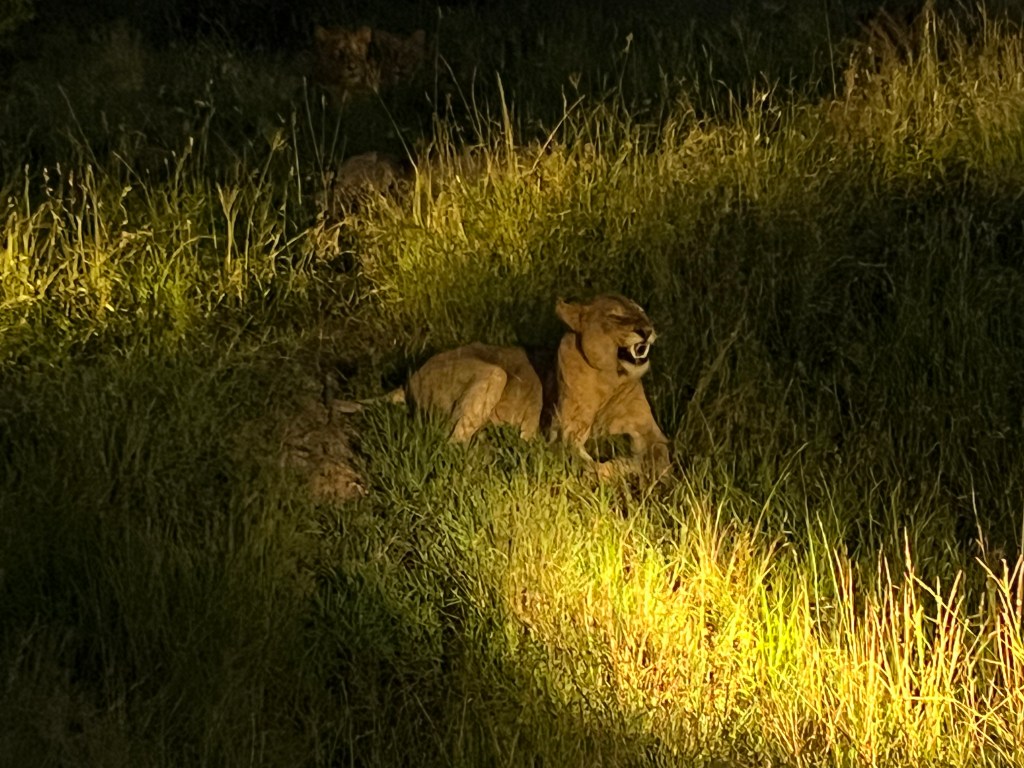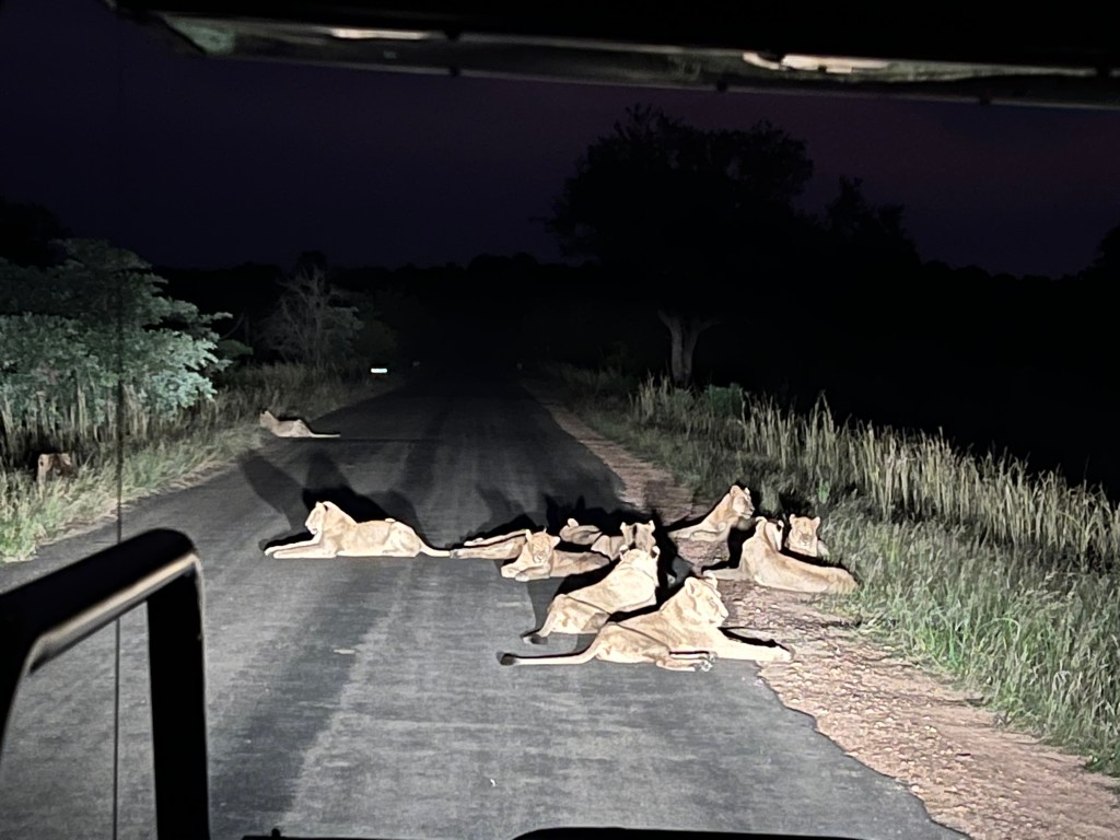 About midway through our animal drive while we waited for the Lions to cross the fields so we could hopefully get a better view, our ranger brought out drinks and snack for us. We were offered beer, wine, sodas and water to drink. We also had Biltong beef jerky, crackers, and a nut trail mix. I couldn’t believe we were eating a snack in Africa as we watched a whole pride of lions cross over to what was to come right next to and in front of us. It was surreal seeing these majestic animals in their own habitat roaming wild, free from captivity. I had several moments where I thoughts to myself is this really happening, am I really here experiencing this?!? We watched the Lioness and one male Lion for about an hour as the sunset in the distance. It was a beautiful start to our adventure heres and we have already seen far more than I had anticipated. Today will be hard to top. For those who know Safari lingo, you will notice that we saw what is referred to as the “Big Five” already today. I could have only hoped to have seen them all by then end of our time here, but today is only day one and we saw them all!!