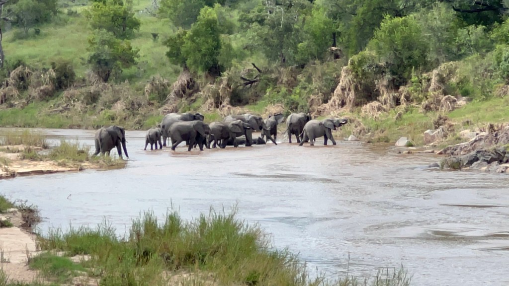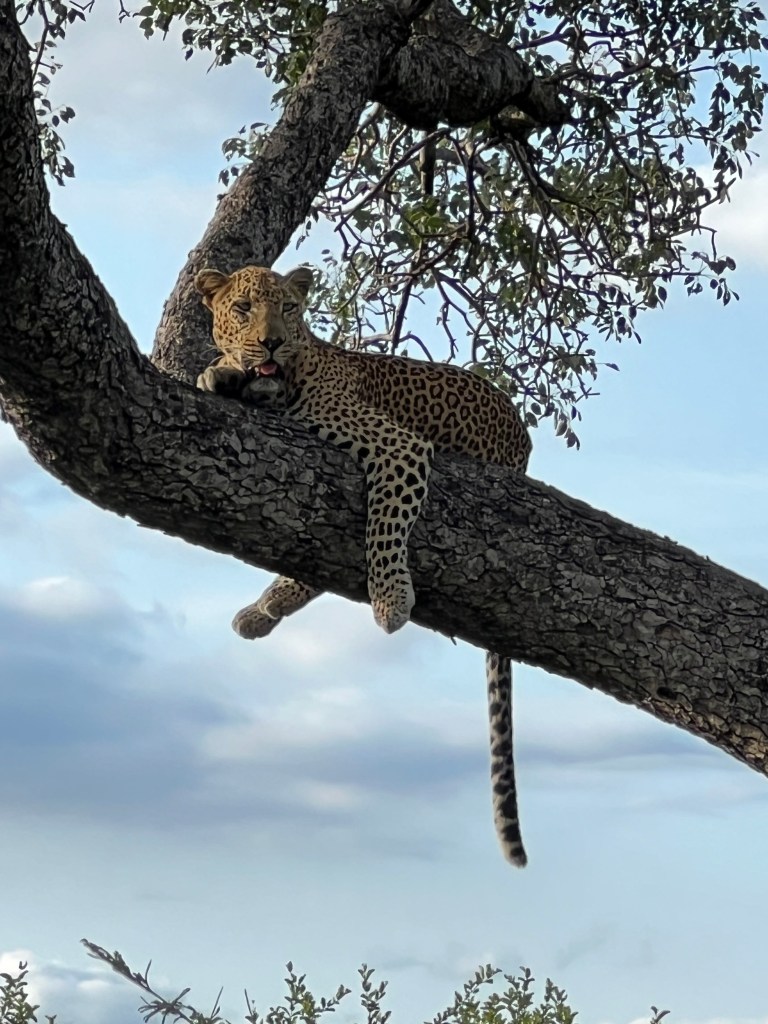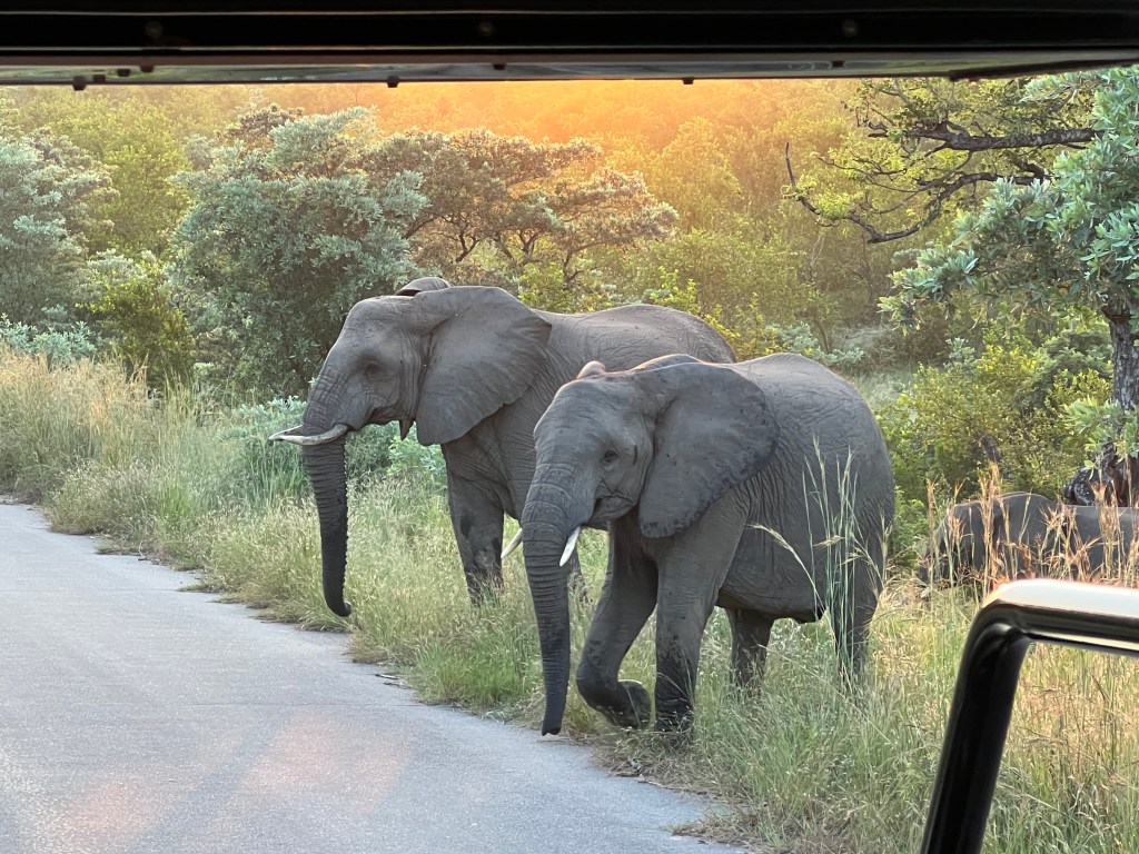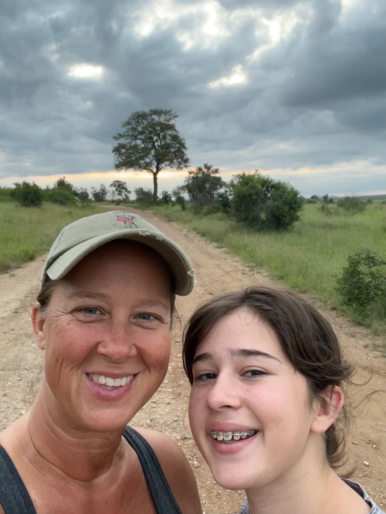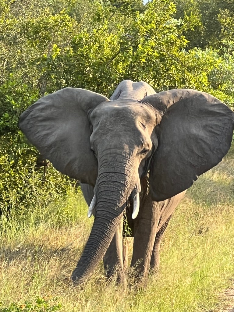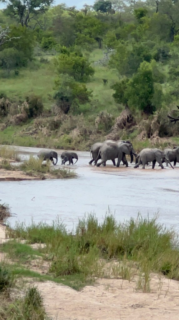 The alarm went off at 4:30am and we were up and dressed, covered head to toe in bug repellant and headed out before the sun was even up. We saw the sun starting to rise as we enjoyed danish and fruit at 5:15. We were off on our animal drive by 5:45 am. We drove all around the park and followed the sightings as they were called into the CB of our woeful driver Lazarus. We learned this week that the rangers speak in code that only other rangers understand so the poachers don’t know where the animal sightings have been. We also learned that those not staying at lodges within the Kruger National Park are only allowed in the park from 6am-6pm. The advantage of staying in the park is early morning starts and late night finishes. There are 12 lodges within the park. Jock Safari Lodge is among the newest and it was built in 2001. Others are older mostly built in the mid late 70’s. Jock Lodge is “one of the top lodges in the park” according to Lazarus. Mid morning we had our first stop and had the opportunity to stretch our legs and were served tea, coffee and hot chocolate and biscuits. We were back to the lodge around 9:00am and were greeted by smiling staff members and a beautiful breakfast buffet. We spent the rest of the morning showering in our outdoor shower, bathing in our outdoor tub, and plunging in our private plunge pool. It was so surreal being in the middle of the Park, in a bubble bath outside on our deck. Later in the morning we went to the gift shop and did some sovenier shopping. Megan got some post cards and stamps and we took the time to fill them out and we sent them off back to the United States. Lunch was at 1:00. We had now eaten four times today.The highlights of this afternoons menu were Wildebeest Veal shepherds pie, Vegetable Lasagna, and a dulce de leche tart. After lunch we sat on the outside dining patio relaxing and we were rewarded with an entire herd of elephants including many babies crossing the river right beside us. Wow. Then we retired to our cabin for a short nap before we met again for tea time and then on to our second animal drive at 4:00pm. Today was like being in a National Geographic movie most of the day. We saw a Leopard today jump out of tree, slink through the grass and attack a baby Water Buck. The Buck got away and sent the entire herd into high alert. They were all violently exhaling as a warning to the other bucks and animals in the area. The Impalas starting to make the same noise. I don’t know if the buck survived the attack. It had puncture wounds in the back of it’s neck and its mother came right over to it and licked its wounds after the attack. We saw it run off with its mom and hope that whatever needs to happen in this circle of life happens. We had a mid drive stop again with the chance to visit the Lava-tree if needed, to stretch of legs and to eat again. Our evening snack was Biltong Jerky, cheese and crackers, trail mix, beer, wine, sodas and water. I am overwhelmed with everything we have already seen. I am feeling beyond blessed yet again. I was moved to tears this afternoon as I breathed it all in and gave a multitude of thanks to everyone who has been instrumental in getting me to where I am right now in this exact moment in time. I will suffice it to say that if you’re reading this, you’re most likely a part of life and therefore one of my many blessings, and I thank you, from the bottom of my heart, for being exactly who you are. Thank you for what you have done to encourage, support and love on me. This opportunity is a priceless one and I have experienced something that I will treasure for my lifetime. When we returned back to the lodge after our second drive we were seated in the dining room for a plated meal. We had placed our orders this afternoon before we left for our drive and dinner was served. For those of you keeping count, this was the SEVENTH time we were fed today. Three meals and fours snack/mini meals throughout the day. Every thing we ate was absolutely delicious and obviously prepared for us with love and passion for the art of cooking. Cooked with local ingredients and served to us with such hospitality that I don’t want to go back to the ship. Megan doesn’t either. This wasn’t enough time here at all. We have one final animal drive bright and early tomorrow. Need to sleep fast. We’ll definitely need to catch up on sleep when we get back to the ship. It worth every moment of lost sleep. Hugs from across the miles. Enjoy all the photos.