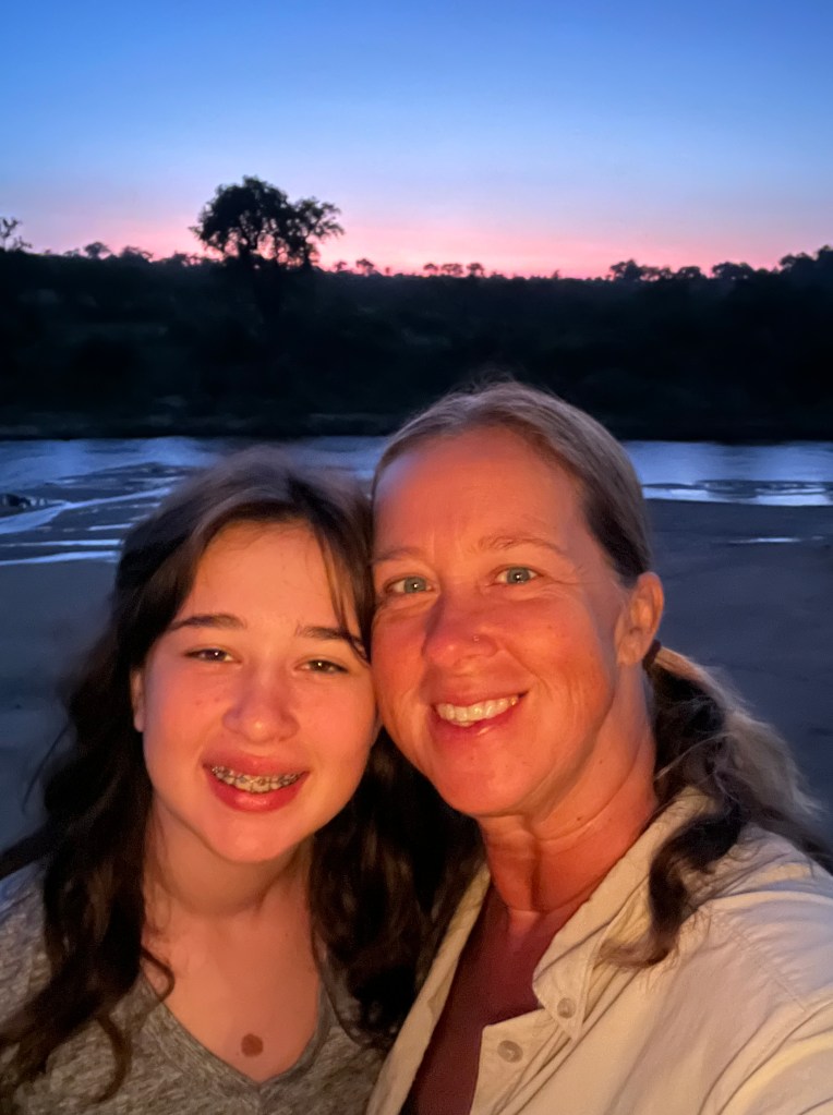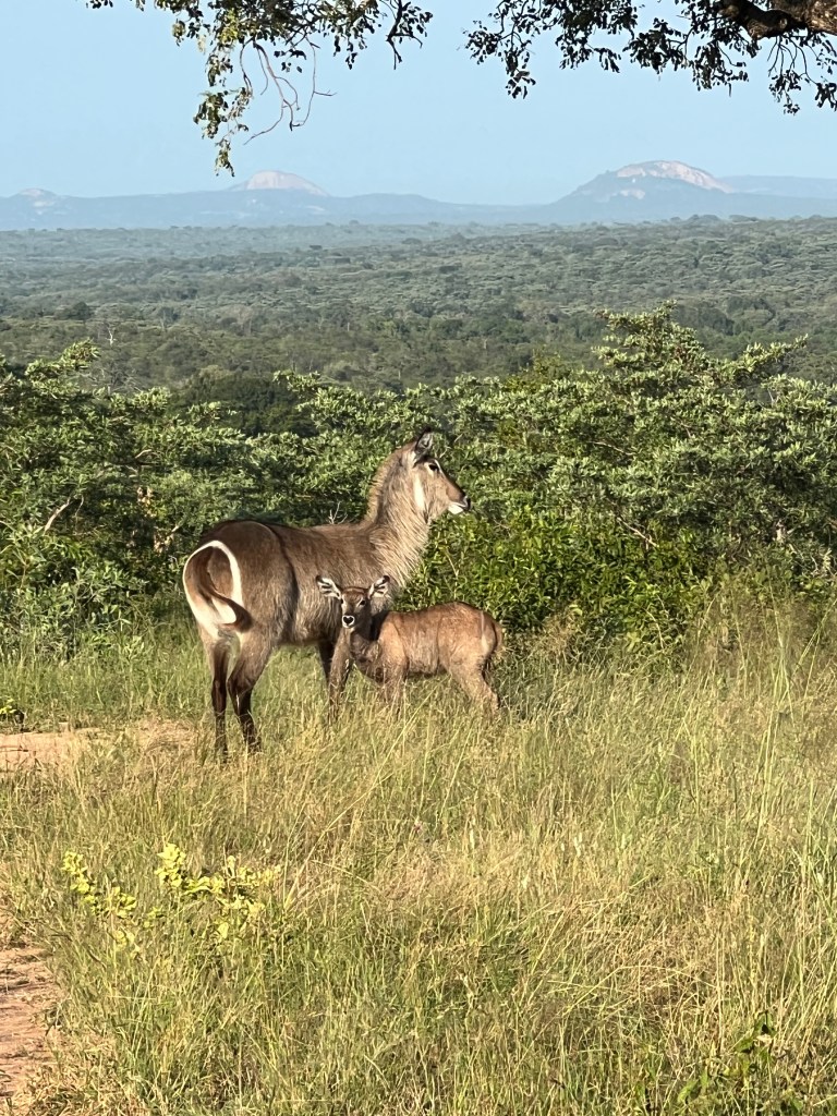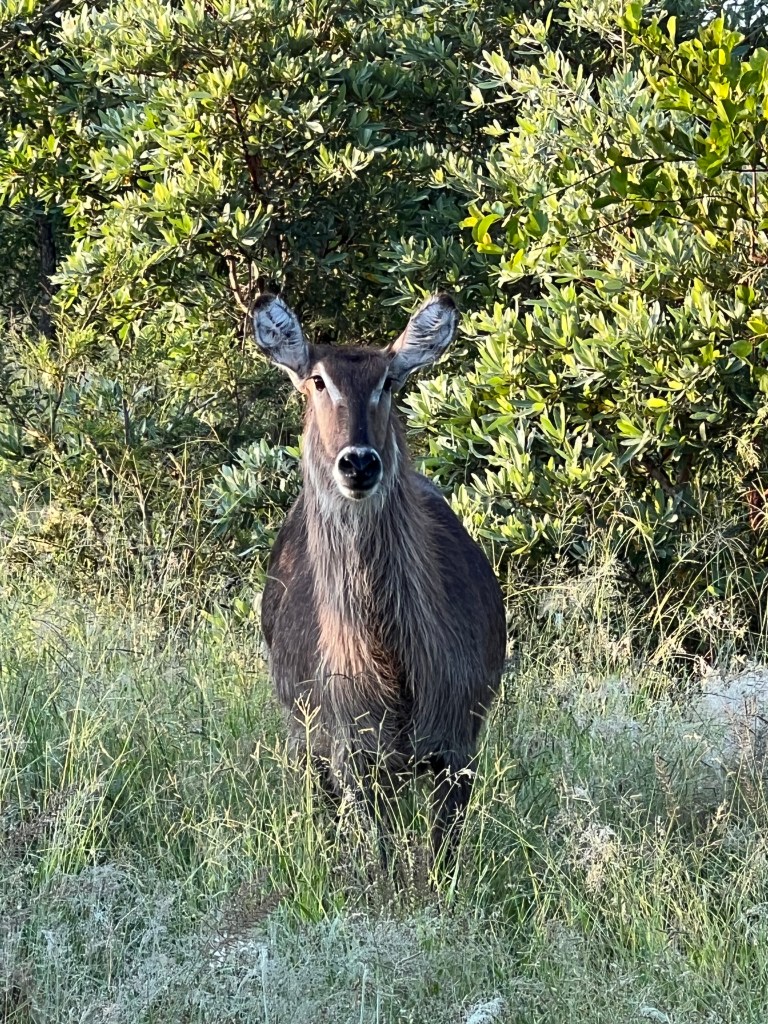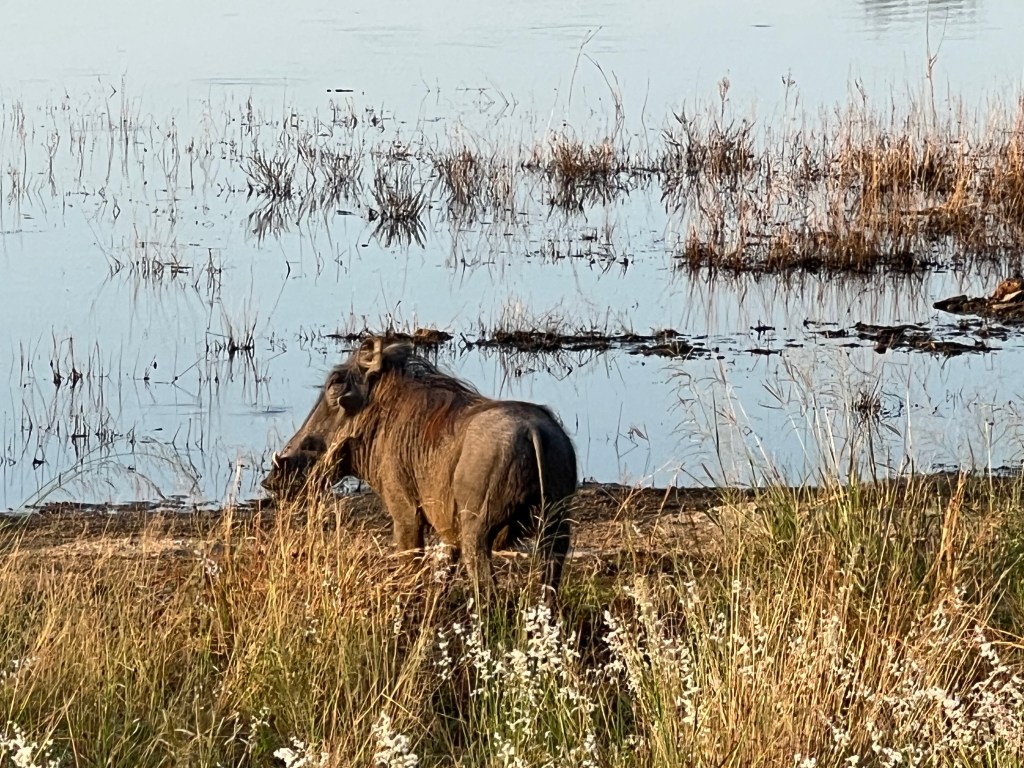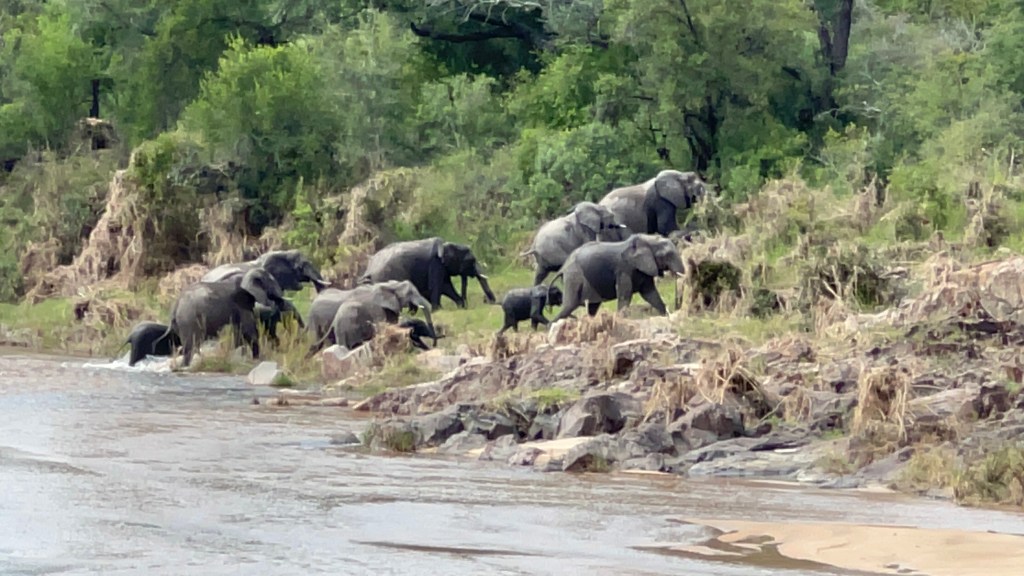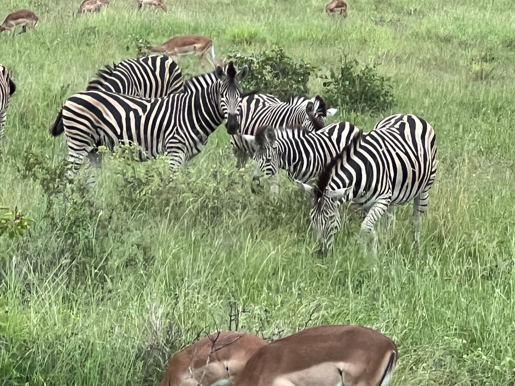 The alarm went off at 4:30am and we were up and dressed, covered head to toe in bug repellant and headed out before the sun was even up. We saw the sun starting to rise as we enjoyed danish and fruit at 5:15. We were off on our animal drive by 5:45 am. We drove all around the park and followed the sightings as they were called into the CB of our woeful driver Lazarus. We learned this week that the rangers speak in code that only other rangers understand so the poachers don’t know where the animal sightings have been. We also learned that those not staying at lodges within the Kruger National Park are only allowed in the park from 6am-6pm. The advantage of staying in the park is early morning starts and late night finishes. There are 12 lodges within the park. Jock Safari Lodge is among the newest and it was built in 2001. Others are older mostly built in the mid late 70’s. Jock Lodge is “one of the top lodges in the park” according to Lazarus. Mid morning we had our first stop and had the opportunity to stretch our legs and were served tea, coffee and hot chocolate and biscuits. We were back to the lodge around 9:00am and were greeted by smiling staff members and a beautiful breakfast buffet. We spent the rest of the morning showering in our outdoor shower, bathing in our outdoor tub, and plunging in our private plunge pool. It was so surreal being in the middle of the Park, in a bubble bath outside on our deck. Later in the morning we went to the gift shop and did some sovenier shopping. Megan got some post cards and stamps and we took the time to fill them out and we sent them off back to the United States. Lunch was at 1:00. We had now eaten four times today.The highlights of this afternoons menu were Wildebeest Veal shepherds pie, Vegetable Lasagna, and a dulce de leche tart. After lunch we sat on the outside dining patio relaxing and we were rewarded with an entire herd of elephants including many babies crossing the river right beside us. Wow. Then we retired to our cabin for a short nap before we met again for tea time and then on to our second animal drive at 4:00pm. Today was like being in a National Geographic movie most of the day. We saw a Leopard today jump out of tree, slink through the grass and attack a baby Water Buck. The Buck got away and sent the entire herd into high alert. They were all violently exhaling as a warning to the other bucks and animals in the area. The Impalas starting to make the same noise. I don’t know if the buck survived the attack. It had puncture wounds in the back of it’s neck and its mother came right over to it and licked its wounds after the attack. We saw it run off with its mom and hope that whatever needs to happen in this circle of life happens. We had a mid drive stop again with the chance to visit the Lava-tree if needed, to stretch of legs and to eat again. Our evening snack was Biltong Jerky, cheese and crackers, trail mix, beer, wine, sodas and water. I am overwhelmed with everything we have already seen. I am feeling beyond blessed yet again. I was moved to tears this afternoon as I breathed it all in and gave a multitude of thanks to everyone who has been instrumental in getting me to where I am right now in this exact moment in time. I will suffice it to say that if you’re reading this, you’re most likely a part of life and therefore one of my many blessings, and I thank you, from the bottom of my heart, for being exactly who you are. Thank you for what you have done to encourage, support and love on me. This opportunity is a priceless one and I have experienced something that I will treasure for my lifetime. When we returned back to the lodge after our second drive we were seated in the dining room for a plated meal. We had placed our orders this afternoon before we left for our drive and dinner was served. For those of you keeping count, this was the SEVENTH time we were fed today. Three meals and fours snack/mini meals throughout the day. Every thing we ate was absolutely delicious and obviously prepared for us with love and passion for the art of cooking. Cooked with local ingredients and served to us with such hospitality that I don’t want to go back to the ship. Megan doesn’t either. This wasn’t enough time here at all. We have one final animal drive bright and early tomorrow. Need to sleep fast. We’ll definitely need to catch up on sleep when we get back to the ship. It worth every moment of lost sleep. Hugs from across the miles. Enjoy all the photos.
