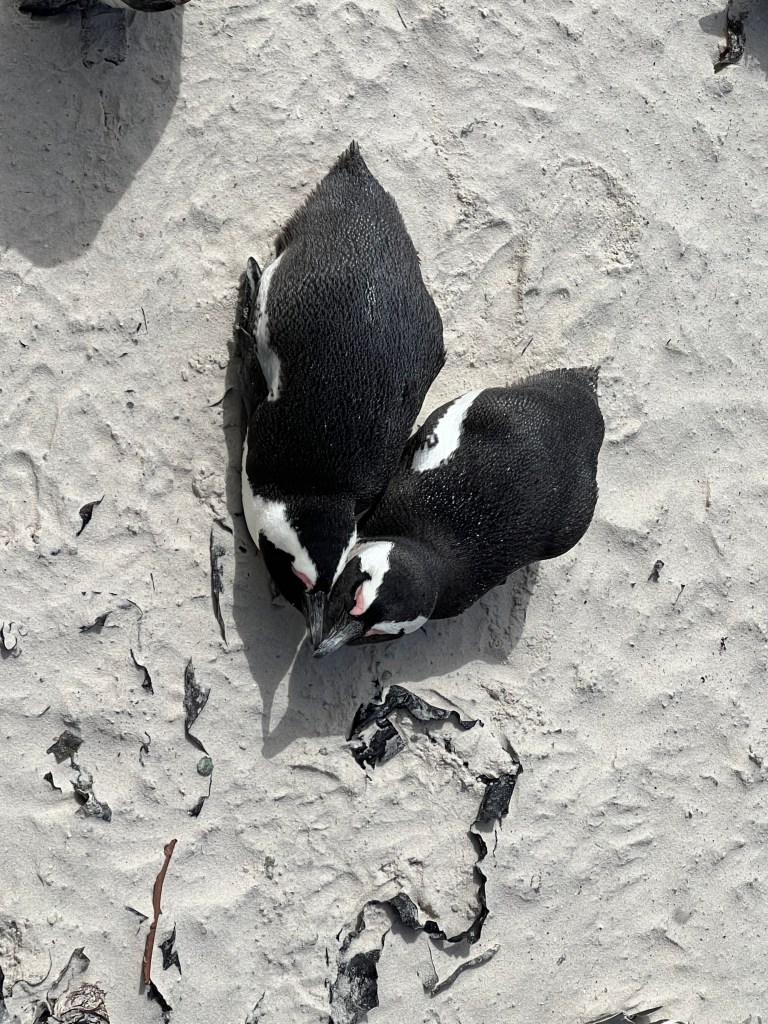 This morning we awoke in the same place we went to sleep last night which is a novelty still for us on this adventure. Since we stayed here overnight it also means our excursions can start earlier due to not needing to wait to go through customs and to be cleared for dis-embarkation. We were up at 6:45 am and dressed quickly. We headed to the Lido to grab a quick breakfast and then to the Rolling Stone lounge to meet our excursion group from Cruise Specialist. It was nice to see some fellow passengers we hadn’t seen in a while and catch up with our travel hosts. After some chaos due to a mechanical issue with a bus and a delay in our departure, we were on the road for a drive to the top of Chapman’s Peak. We stopped first at an outlook where we had a beautiful panoramic view of the Cape of Good Hope. There was beautiful white sand beaches and it was super windy. Glad I brought my brush with me today. We learned about Table Mountain and its history of once being at the bottom of the Sea. We weaved our way along a mountain side road around the back of Table Mountain. The drive was not for the weak of heart at all. We saw shack style home where locals lived and multimillion dollar homes just a couple of blocks away. The juxtaposition was an alarmingly extreme example of the separation of classes here. We even saw a community of homes where Oprah Winfrey currently owns a home. We headed next to Boulder Beach, home of a colony of African penguins. We got to see LOTS of penguins today. We saw parent with their babies, eggs waiting to be hatched, penguins playing hide and seek from their sand burrows and penguins splashing in the surf. This was a way better penguin experience than we had a few days ago. The hike in and out of the beach we were sand blasted from the sand and the wind on our faces. I wish I had had a mask to protect myself. After we enjoyed our time with our web footed friends we got back on the bus for some more scenic driving and on to our next destination Mount Nelson Hotel so we could indulge in the elegance of High Tea time. The food was phenomenal, we sampled a few different teas and the sweets were out of this world. It was a lovely property and I wish we had more time to explore the grounds. But since we were late we were rushed through our time both at tea and then to leave the hotel. This hotel was built in 1899 and it is rich with lavish history. If you get a chance check out the website and the photos of the grounds and the hotel. After tea time we took a scenic drive back through Cape Town on our way back to the ship. Some of the highlights of our drive were; the 2010 World Cup Soccer Stadium, Saint George’s Cathedral where Desmond Tutu first became a bishop, a slave lodge where 600 slave where made to sleep in extremely close quarters back to back, and City Hall where Nelson Mandela made his first speech after being freed from jail in 1990. There is a statue there depicting where he stood when he gave the speech. We also saw a brightly painted neighborhood of homes that were a joy to see. So colorfully done. Next, we headed back to the ship so we could grab our passports because we have to go through immigration and customs again before we are allowed to leave here this evening. But we weren’t ready to be done quite yet. When we were on the bus we observed a Ferrari dealership a couple of blocks from the ship so we had to stop by. We had hoped to buy some apparel from here, but sadly they did not sell any. We had a lovely time looking at their 2023 models in the showroom and a couple of classics they had for sale. The salesman was so nice to us and I will be sending an email to his boss praising his customer service and kindness. He was adamant we didn’t go home empty handed so he gave us his personal Ferrari keychain from his pocket to take home with us. It was WAY above and beyond and so sweet of him to do that for us. We headed back to the ship and presented our passports to be stamped and waited our turn to then get back on the ship. It was just past our seating time in the Main dining room and we weren’t hungry as we were still full from our tea time this afternoon so we headed to the Main Stage for this evening performance. I am SO glad we did. It was the best performance we have seen to date on this cruise. We were treated to a number of songs sang by the South African Youth Choir. There were a number of group performances as well as solos. They are one of the most sought after performance choirs in the country and I can totally understand why. They range in age from 15-25 and they are definitely an extremely talented group of young people. After the performance we headed to the Lido and we were delighted to see the choir group there excited to be eating from the buffet and having so many choices of things to eat. Think kids in a candy store. We had a lovely conversation with a choir member named Victoria. She and Megan became fast friends as they bonded over friendship and their commonalities. Victoria presented Megan with a friendship bracelet and Megan ran back to the cabin to grab her something to give in kind. It was a beautiful thing to watch these two young ladies from totally different parts of the world sharing this moment of kindness and generosity. I am a proud human and mom. It was the most wonderful way to end our time here in Cape Time. I couldn’t have scripted it better if I wanted to. This evening we will sail away from here and head north to Namibia. We will also cross over a line I am told is visible (during the day) where we will leave the Indian Ocean and will once again be in the Atlantic Ocean where we started this journey. But this trip is not yet at an end. We will head up north further into Europe before heading back to the US. I am grateful for my time here and look forward to sleeping in tomorrow as it is a sea day. Enjoy all the photos!!