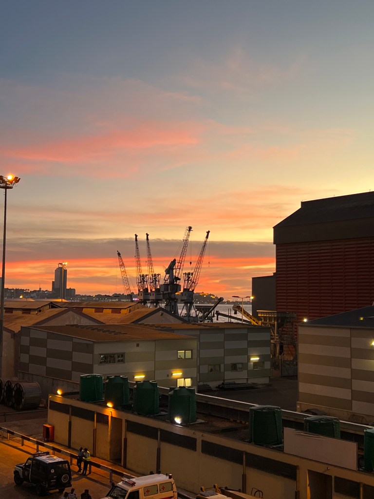 Isolation freedom. We were cleared for take off at 7:30 this morning. Enough time to finish up our breakfast and meet our excursion group at the Main Stage at 8:00am. We had a small group of 11 passengers on our trip today. I was not 100% comfortable with our safety situation today and I really had hoped a member of the shore excursion department would have accompanied us, but they said because of the currently health status on our ship they were not allowed to get off with us today. We visited the San Miguel Fort and got see the history of the military uprisings, civil wars and governmental upheavals here in Angola. The president’s home and the homes of other dignitaries are within a short distance from the Fort and therefore it is still pretty actively used by the military. We saw many officers at the Fort. Next, we went to Augustino Nieto Mausoleum. He was the first president of Angola and he is remembered very fondly by the people. His sarcophagus if here and it a beautiful building shaped like a rocket on the outside and inside it looks like a flower. This building was built in memory of Nieto and a museum of the people of Angola. We actually got to stand in the area that President stood and stands to make public appearances before his constituents. There is also a second area that is going to opened here shortly with the sarcophagus of the second president of Angola who just passed away last year. We also saw the domed parliament building that was quite grand in stature. Next, we drove through a part of town that will forever be in bedded to my memory. The amount of poverty and trash we saw was so sad. Luanda is supposedly one of the richest countries in the world due to the amount of oil produced here, but there is a very large percentage of the country that doesn’t even have access to clean drinking water. Where the funds are all going is your guess. It was difficult to see people living this way and it was a reminder to appreciate what we are blessed with. Our next stop was the Mussulo Pier for a crossing to the Mussulo Island. We boarded our boat just as it was starting to rain. We were pelted by raindrops as we made our way to the island and it stopped raining as we arrived. We arrived at Dally’s Resort on Mussulo Island around 11:00am. They seemed surprised we had arrived as early as we did and told us they weren’t prepared to serve us lunch until 1:00pm. So Megan and I made our way to the pool and spent the afternoon relaxing, sunning ourselves, and trying to stay cool from the 90+ degree weather we are having today. We are making our way back towards the equator and we will be crossing it for the second time of this voyage on Friday. We will be doing a King Neptune’s Ceremony. I have not had the opportunity to participate in one thanks to COVID in 2020 and I am looking forward to my first one ever. This being my third equator crossing. This will be special as it is my understanding is we are crossing at the Prime Meridian making us “Golden Shellbacks”. But that is TBD. We had a nice seafood lunch on the island around 1:00pm. We are still being really careful about what we eat so we opted for simple and only cooked foods that we knew. We took the boat back across to the pier around 3:15pm. We hopped back on the bus and took the ride back to the ship. I have never felt so happy to step back on the ship. There were a couple of times today I feared for our safety and well being and I was happy to back home. One of the weirdest things about today was that people kept continuously taking our photo all day. Police officers, officials, our tour guides, it made us uncomfortable. It was described to me that we are a novelty here due to the color of our skin, but we didn’t care for it very much. I allowed Megan to stand behind me as often as possible. We made it to the main dining room tonight for our 5:00pm seating. It was nice seeing Umam and Regy for the first time in a while. The dining room was noticeably empty tonight. I am guessing due to the number of ill passengers. It gave us a great chance to talk to the crew and catch up on what they have been doing the last few days. We were supposed to sail away at 4:30pm but we were delayed almost two hours due to a medical emergency that necessitated them to remove a passenger from the ship and to have them taken to the hospital via ambulance. I hope that passenger is ok and gets quality care while they are here. We arrived back to our cabin to find a notice reminding us of a time change tonight, we are rolling our clocks back another hour. Putting us 7 hours ahead of CA time. We also we informed our excursion at our nest port has been cancelled. We were supposed to visit a school for the blind and deaf and had been preparing goodies to take to the school for the students. We are very disappointed as we were going there to work, to complete community service projects like painting and to love on the children. We are disappointed we will miss the opportunity. So many ups and down today. But ultimately we are so happy to have been allowed out of cabins, that we are feeling better, and that we have many more adventures ahead of us. Sweet dreams all!!