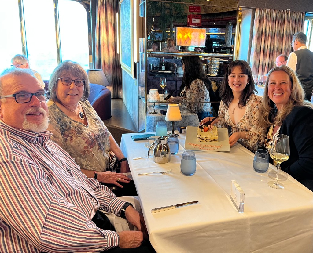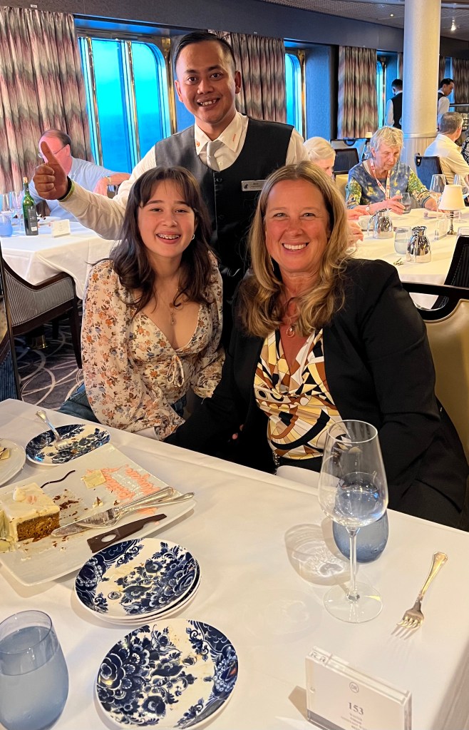 Our second sea day in a row and our last one for a bit. After today we will have four port days in a row. But, you will have to wait to hear about them. Our morning began the same as usual. Gym for me. Extra sleep for Megan. Breakfast at the Pinnacle Grill where Megan finished up some Algebra homework for later in the afternoon and demolished her second of four mangos she bought in Nuku Hiva. I am still anxiously awaiting my avocado to get ripe. Next it was up to Project Linus where I finished my second blanket. Photo below. When someone finishes a blanket they turn in what left over from their yarn balls, aka “muffins” and I took the pastels and made a blanket with the “leftovers”. It was a lot of color change, but I think it turned our well. I started my third blanket as well today. I am doing a granny square next with the left overs. At noon today Megan was invited to a wine tasting event. Yes, you read that right, Megan was invited. It is for four and five star mariners, we are four, and for some reason the invitation just came in her name. I did the right thing and went on her behalf. They had wines to sample that they offer in the wine packages aboard the ship. Invitations for this event have been going out periodically for the last week or so as it turns out they had to host this event multiple times as there are approximately one thousand four and five start mariners on this ship currently. I am not surprised considering this unique group of world cruisers that are aboard. I got to catch up with Freddy and Bob who I hadn’t seen in a couple of days. It is funny no matter how “small” or “big” you think the ship is, the perspective is really skewed by how much time you spend out of your cabin, participating in events, and dining in the public dining spaces. We have people we see every day because we all participate in the same activities and others we won’t see for weeks even though we know they are on the ship. The afternoon was spent writing this lovely blog to you all and Megan met with her tutor. Tonight we had dinner in the main dining room back at our usual table at 5:00pm. Tomorrow morning we will pull into port in Papeete, Tahiti. We have some fun adventures planned but you will have to wait to read about those.