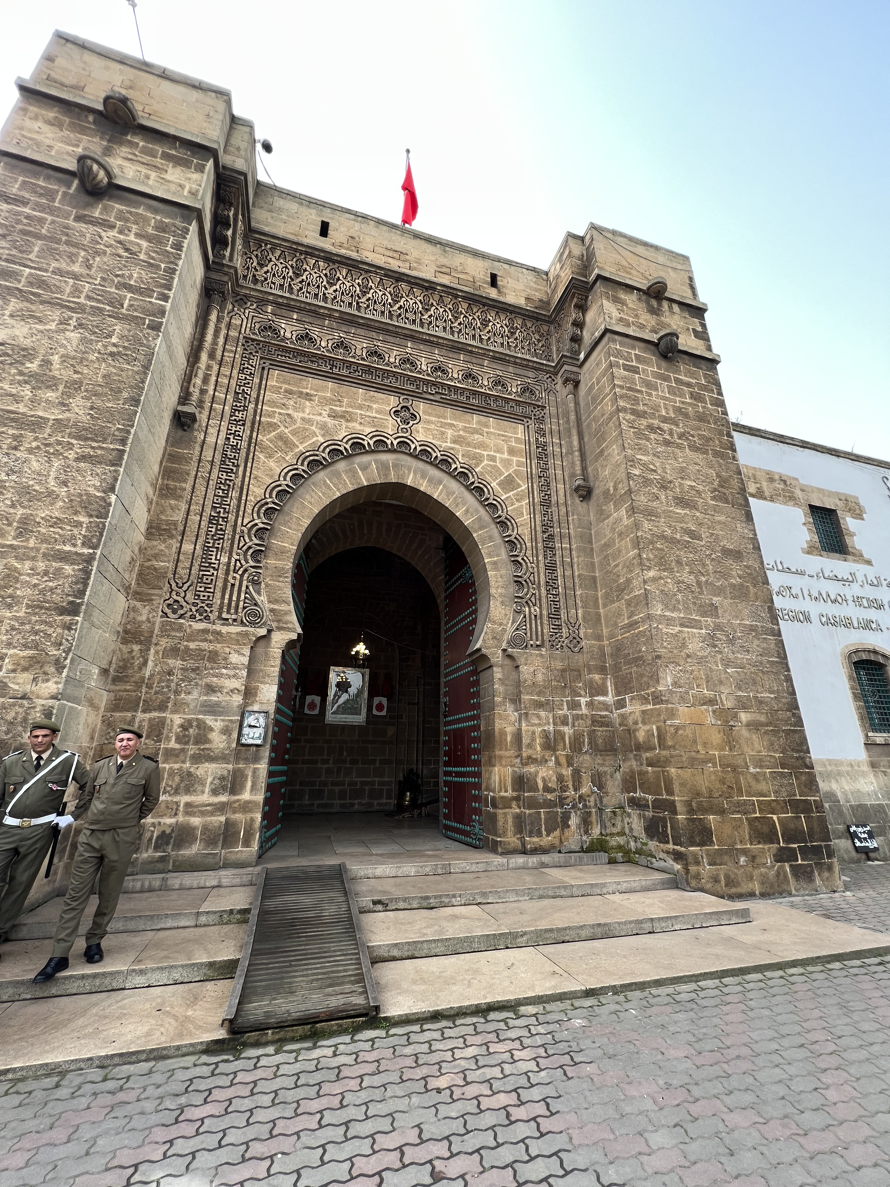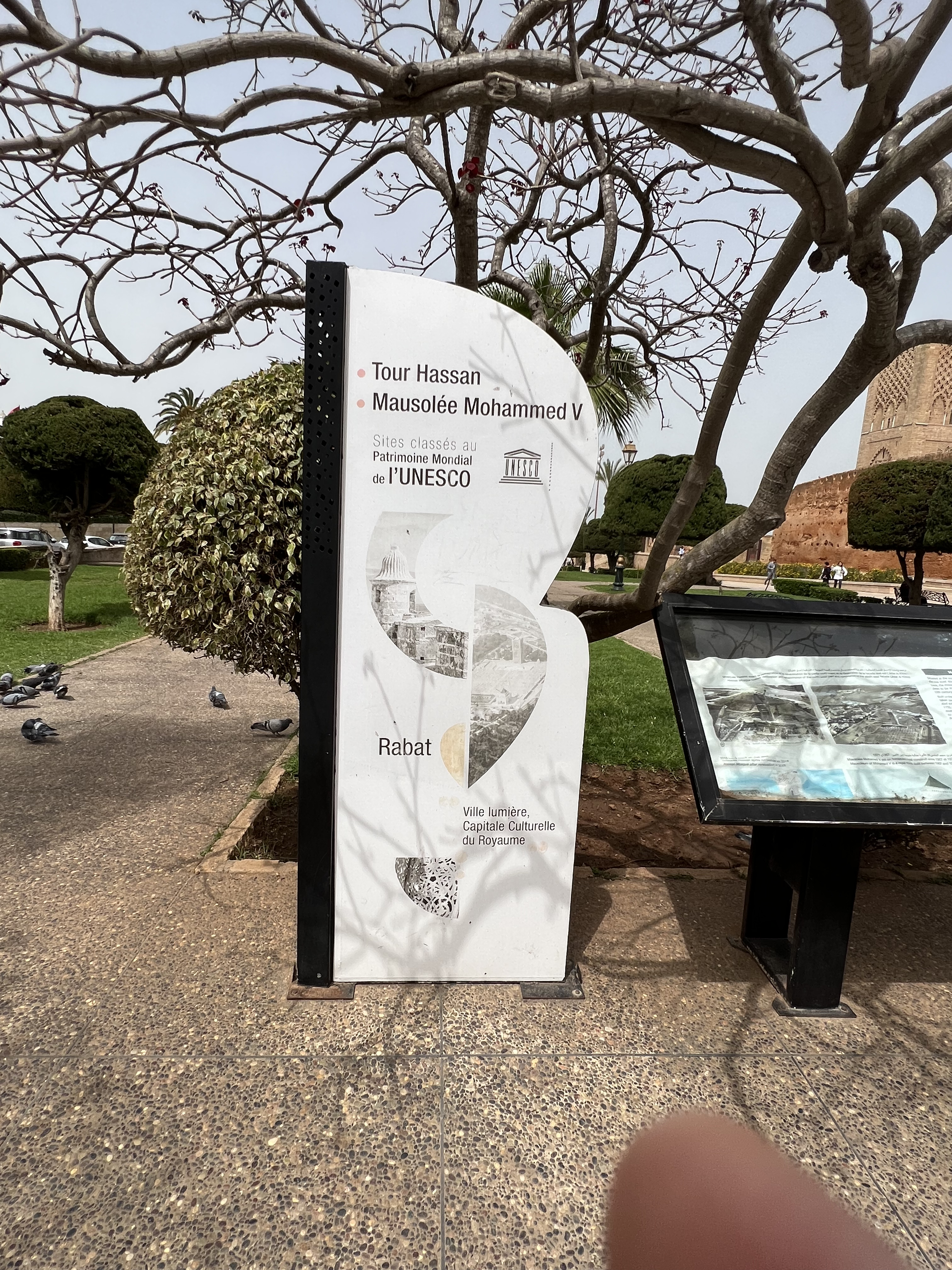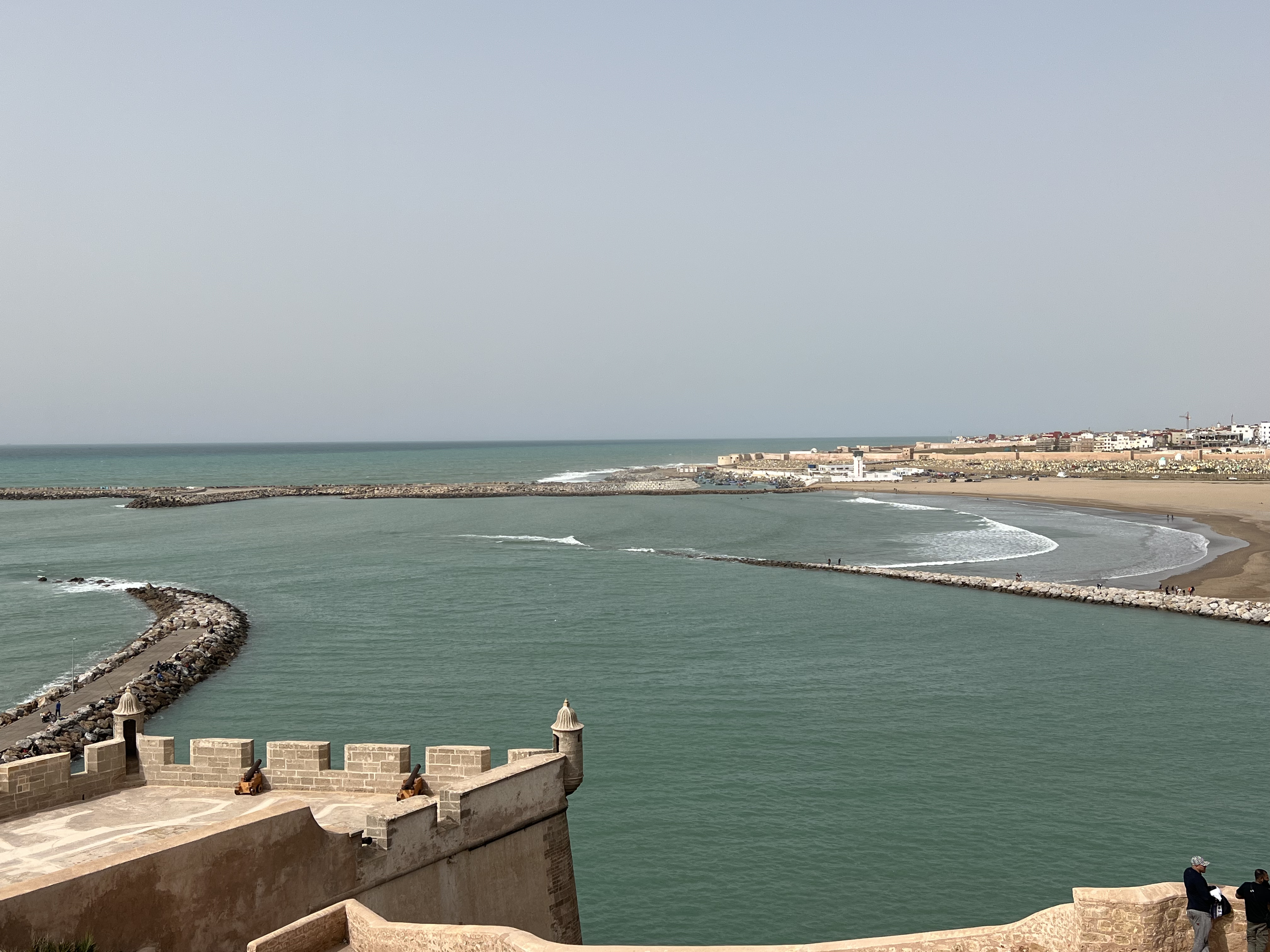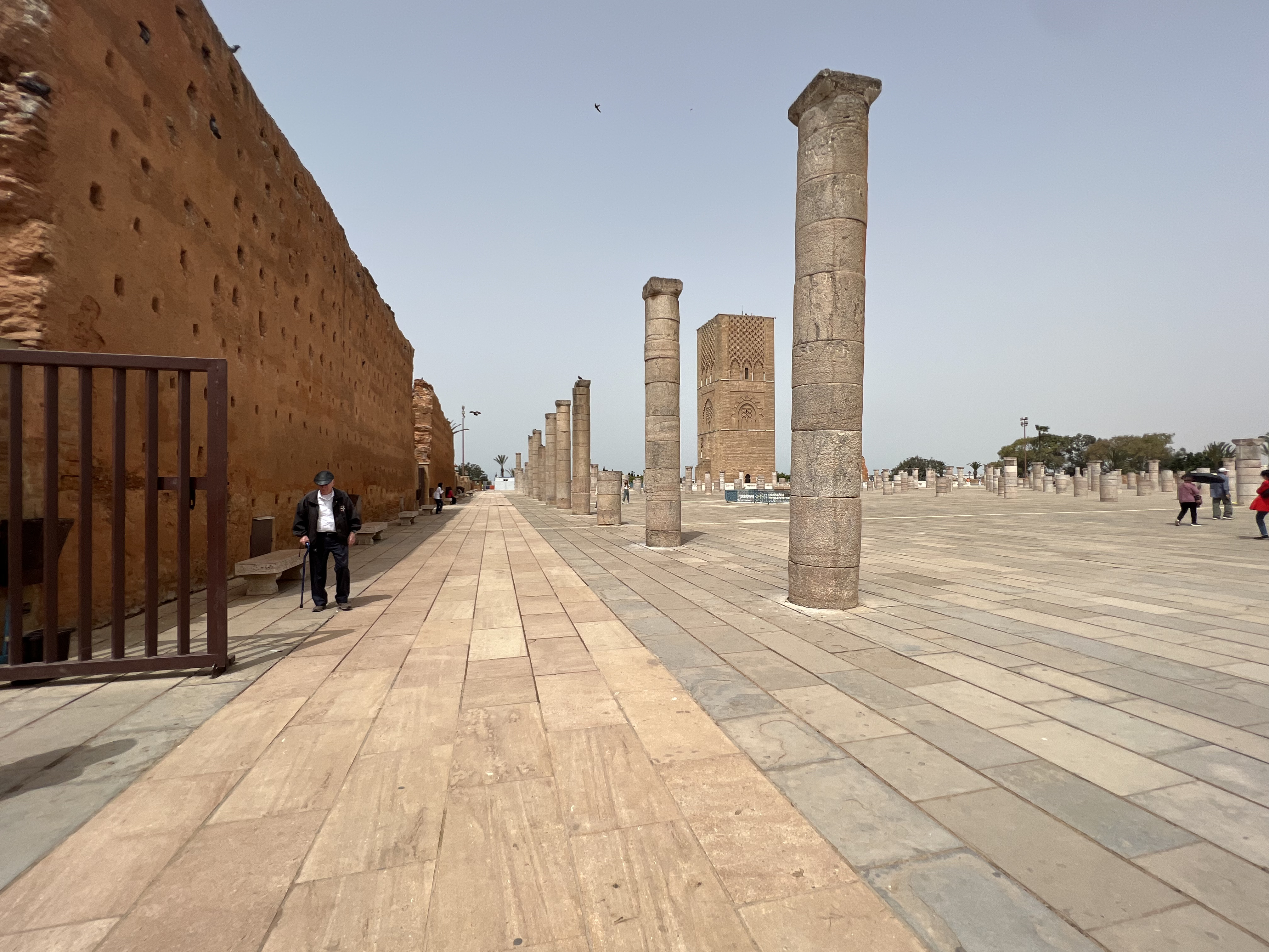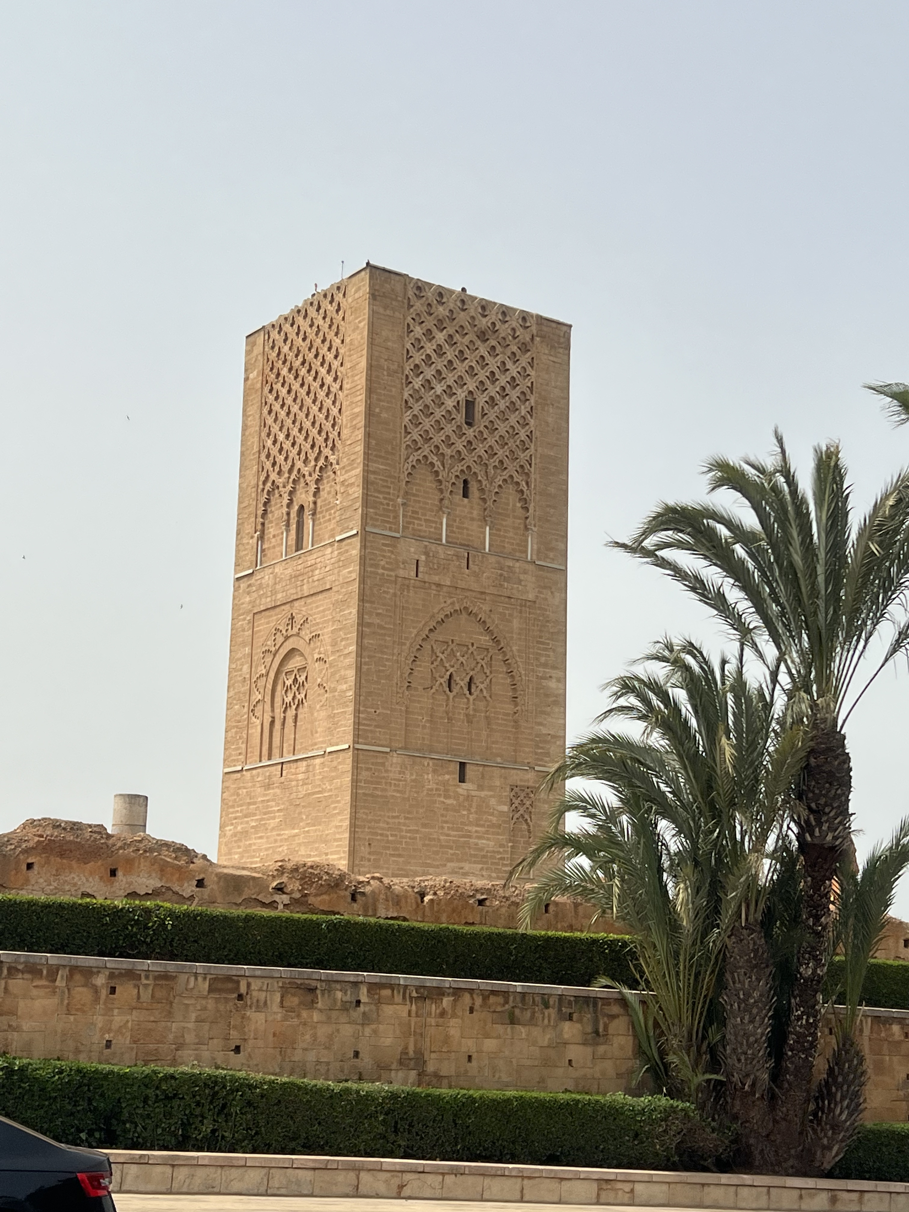 Good morning from the port of Casablanca. Today is a long one and we were up early and ready to tackle the days adventure. The alarm went off at 5:45am and breakfast was delivered at 6:00am. We ate in our room as we got ready and then headed to the Main stage to meet our excursion group at 7:15am. We wore our new pants we bought in the Canary Islands today and we got so many compliments on them. I wish I had bought more! They also made for great photos. There was a large group going to Marrakesh today on a 12+ hour excursion and our group was four buses going to Casablanca and Rabat on a 10 hour excursion. We left the pier and got stuck at the gate before even leaving the port. I guess our bus driver made an illegal turn and had to pay a $40.00 fine before we could even leave delaying us another 30minutes. Luckily, that was not an omen of the things to come for the rest of the day. In Casablanca we stopped at The Hassan the II Mosque. It is the third largest Mosque in the world. King Hassan the II had this built in seven years and ordered the workers to work around the clock until it was finished in 1993. He wanted to see it done before he died. Ironically, it was finished six years before he passed away. Ahhhh, it’s good to be king right? We saw the only Catholic church still offering services in Casablanca, the Mohammad the V Mosque, and the Mohammad the V square. Today was the day for uniquely beautiful doors with hand made knockers, tile mosaics and arches in every shape and size. Some we barely passed through in our bus and several we walked though. The architecture was so unique to Morocco and will forever be embedded in my memory. We had an absolutely wonderful time feeding the pigeons (flying rats as my mom calls them) in the square. We have such joyous memories of doing this in multiple places around the world and today was no exception. The man charged $1.00 for bird food and we gave him $5.00 and told him to keep the change. He kept filling our hands with more food until it was time to get back on the bus. I finally had to say no thank you, no more please. It always feels wonderful to bless another human and sometimes something so small means so very much. From Casablanca we drove to the Capitol city of Rabat, about an hour away. The King arrived in Casablanca yesterday and we saw the palace there, but he lives in Rabat normally and today we visited the palace there as well. Then we went to the Mausoleum of Mohammad the V and saw the architectural marvel that is an unfinished Mosque. It has 360 granite pillars the were erected to support the Mosque, but it was never completed so all that remains are its ruins. There is an unfinished spire here and we were lucky enough to be standing in front of the spire at noon when the call to prayer came to pass from the speaker on top of it. We could hear the announcement being echoed throughout the city from the mountain top we were on and it was quite a moving experience. From there we went to a local restaurant and had a traditional Moroccan lunch. We were served a salad or marinated vegetables, followed by Chicken Tangine and stewed beefed over couscous with cooked carrots, cabbage, zucchini, and potatoes, lastly, the brought a large bowl of fresh strawberries, oranges and Loquat. I had never had Loquat before and a passenger showed us how to peel it and eat it. It was delicious and I am excited to have tried something new. After lunch we boarded the bus and had one last stop at the Kabash Oudaya. It was once used as military base and it now alleys of shops, homes and restaurants. The view from the top of the wall looking out over the Atlantic Ocean was beautiful and a fabulous spot to take photos. After we left the Kabash we had a scenic drive along the coastline for a bit before getting back on the freeway and heading back to Casablanca and the port. Today was also the day of a 100 cats. Megan had fun loving on cats all over Morocco today. Every shape and size imaginable. There are so many photos we took today but there are already 66 photos attached below so I will save those for another time. We were back on the ship by about 5:30pm. We had a large late lunch and opted to just order some light bites from room service around 7:00pm and stayed in for the rest of the night. We have another long excursion and adventures ahead for us tomorrow so we are heading to sleep and hope to sleep fast. Enjoy all the photos, oh and the sunset photos is compliments of a fellow passenger, it’s so beautiful. I will “see” you tomorrow. Hugs.