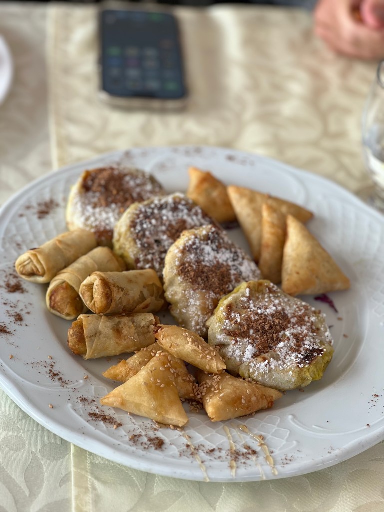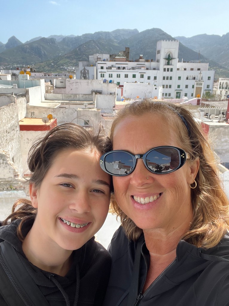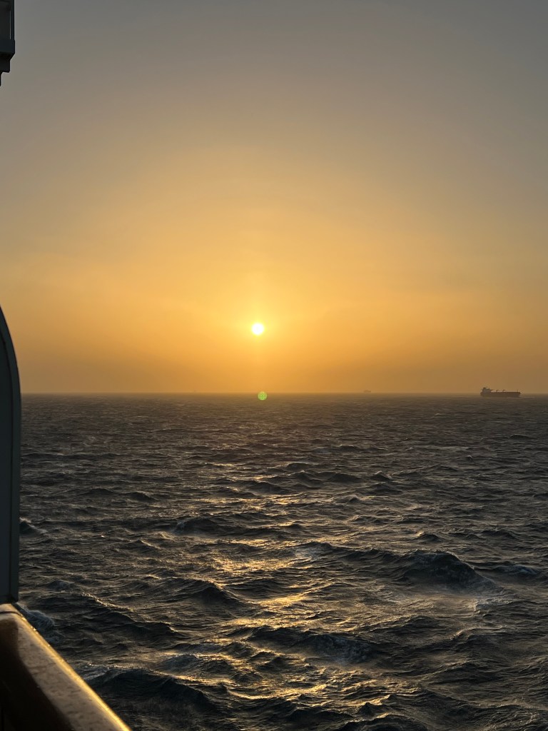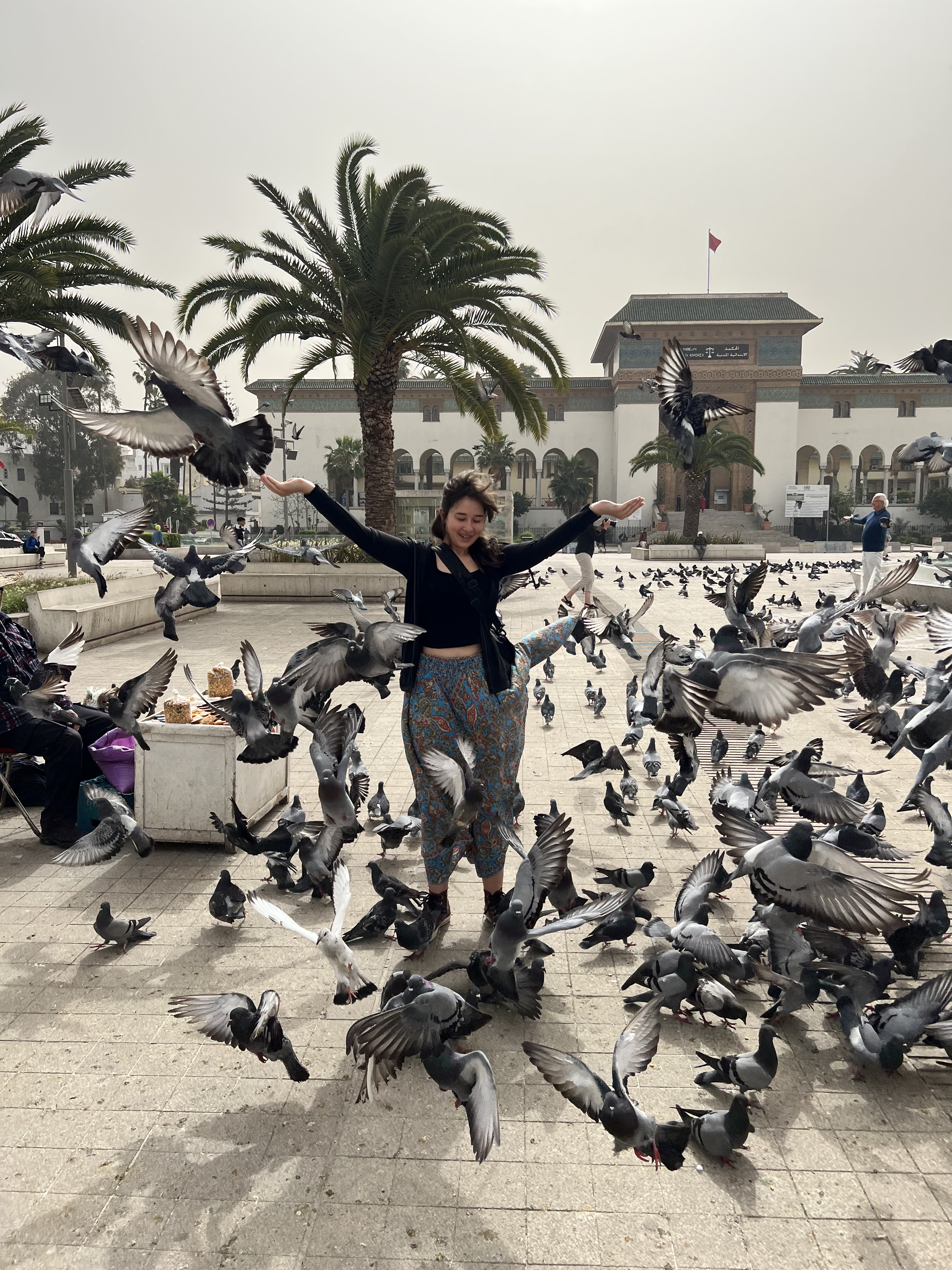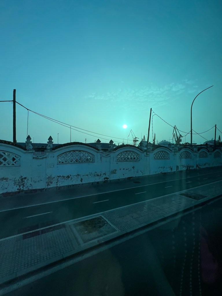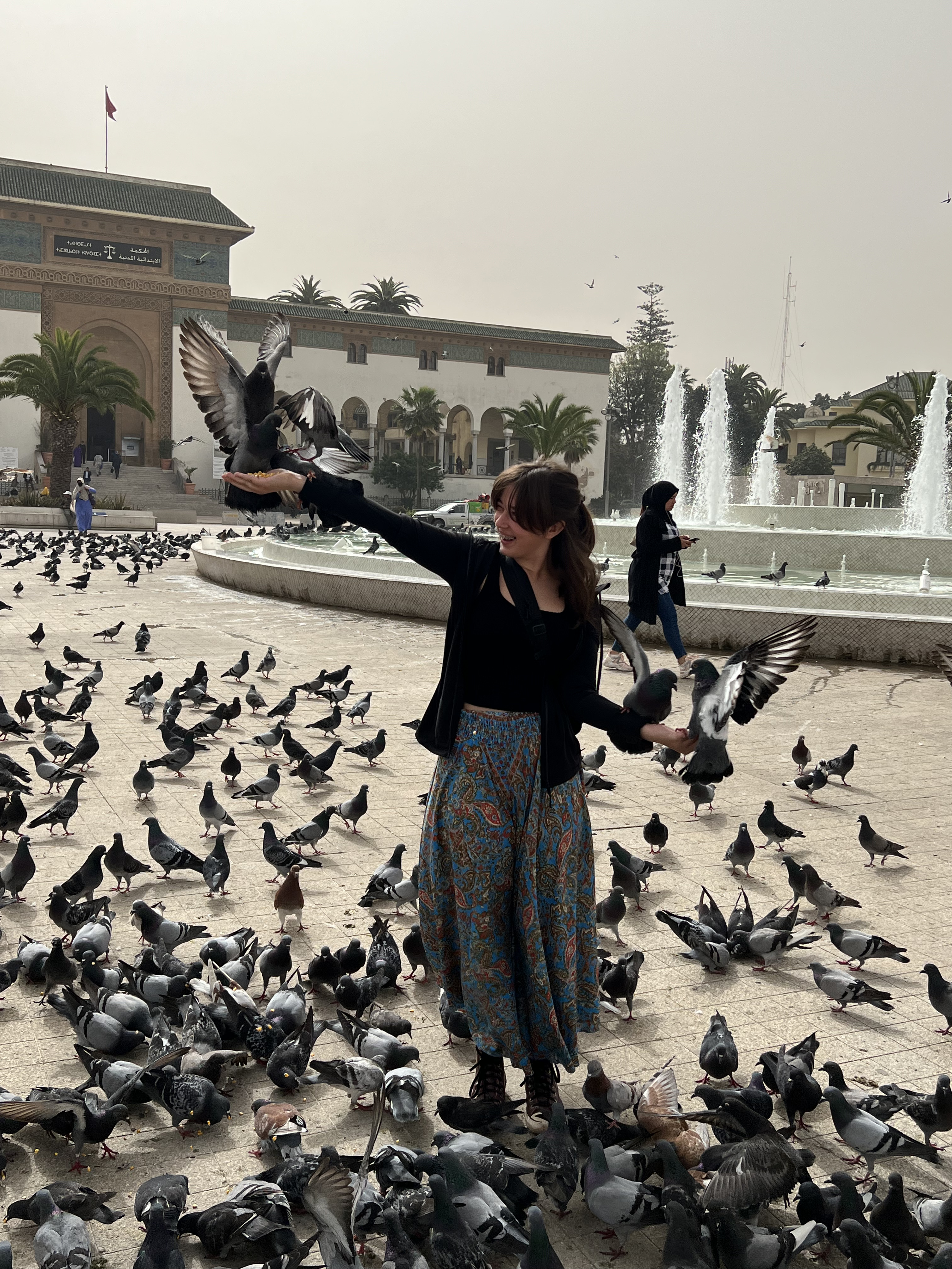 Good morning from the port of Casablanca. Today is a long one and we were up early and ready to tackle the days adventure. The alarm went off at 5:45am and breakfast was delivered at 6:00am. We ate in our room as we got ready and then headed to the Main stage to meet our excursion group at 7:15am. We wore our new pants we bought in the Canary Islands today and we got so many compliments on them. I wish I had bought more! They also made for great photos. There was a large group going to Marrakesh today on a 12+ hour excursion and our group was four buses going to Casablanca and Rabat on a 10 hour excursion. We left the pier and got stuck at the gate before even leaving the port. I guess our bus driver made an illegal turn and had to pay a $40.00 fine before we could even leave delaying us another 30minutes. Luckily, that was not an omen of the things to come for the rest of the day. In Casablanca we stopped at The Hassan the II Mosque. It is the third largest Mosque in the world. King Hassan the II had this built in seven years and ordered the workers to work around the clock until it was finished in 1993. He wanted to see it done before he died. Ironically, it was finished six years before he passed away. Ahhhh, it’s good to be king right? We saw the only Catholic church still offering services in Casablanca, the Mohammad the V Mosque, and the Mohammad the V square. Today was the day for uniquely beautiful doors with hand made knockers, tile mosaics and arches in every shape and size. Some we barely passed through in our bus and several we walked though. The architecture was so unique to Morocco and will forever be embedded in my memory. We had an absolutely wonderful time feeding the pigeons (flying rats as my mom calls them) in the square. We have such joyous memories of doing this in multiple places around the world and today was no exception. The man charged $1.00 for bird food and we gave him $5.00 and told him to keep the change. He kept filling our hands with more food until it was time to get back on the bus. I finally had to say no thank you, no more please. It always feels wonderful to bless another human and sometimes something so small means so very much. From Casablanca we drove to the Capitol city of Rabat, about an hour away. The King arrived in Casablanca yesterday and we saw the palace there, but he lives in Rabat normally and today we visited the palace there as well. Then we went to the Mausoleum of Mohammad the V and saw the architectural marvel that is an unfinished Mosque. It has 360 granite pillars the were erected to support the Mosque, but it was never completed so all that remains are its ruins. There is an unfinished spire here and we were lucky enough to be standing in front of the spire at noon when the call to prayer came to pass from the speaker on top of it. We could hear the announcement being echoed throughout the city from the mountain top we were on and it was quite a moving experience. From there we went to a local restaurant and had a traditional Moroccan lunch. We were served a salad or marinated vegetables, followed by Chicken Tangine and stewed beefed over couscous with cooked carrots, cabbage, zucchini, and potatoes, lastly, the brought a large bowl of fresh strawberries, oranges and Loquat. I had never had Loquat before and a passenger showed us how to peel it and eat it. It was delicious and I am excited to have tried something new. After lunch we boarded the bus and had one last stop at the Kabash Oudaya. It was once used as military base and it now alleys of shops, homes and restaurants. The view from the top of the wall looking out over the Atlantic Ocean was beautiful and a fabulous spot to take photos. After we left the Kabash we had a scenic drive along the coastline for a bit before getting back on the freeway and heading back to Casablanca and the port. Today was also the day of a 100 cats. Megan had fun loving on cats all over Morocco today. Every shape and size imaginable. There are so many photos we took today but there are already 66 photos attached below so I will save those for another time. We were back on the ship by about 5:30pm. We had a large late lunch and opted to just order some light bites from room service around 7:00pm and stayed in for the rest of the night. We have another long excursion and adventures ahead for us tomorrow so we are heading to sleep and hope to sleep fast. Enjoy all the photos, oh and the sunset photos is compliments of a fellow passenger, it’s so beautiful. I will “see” you tomorrow. Hugs.