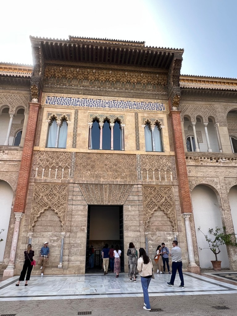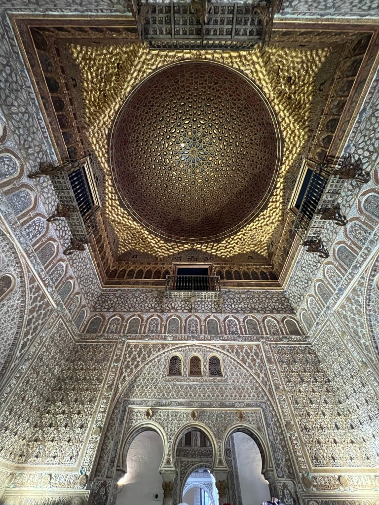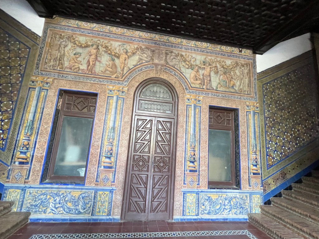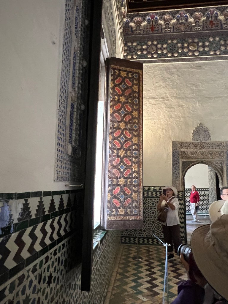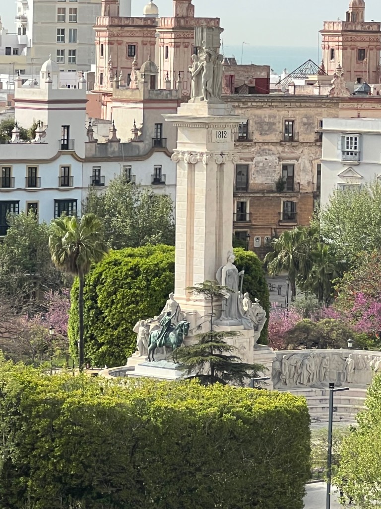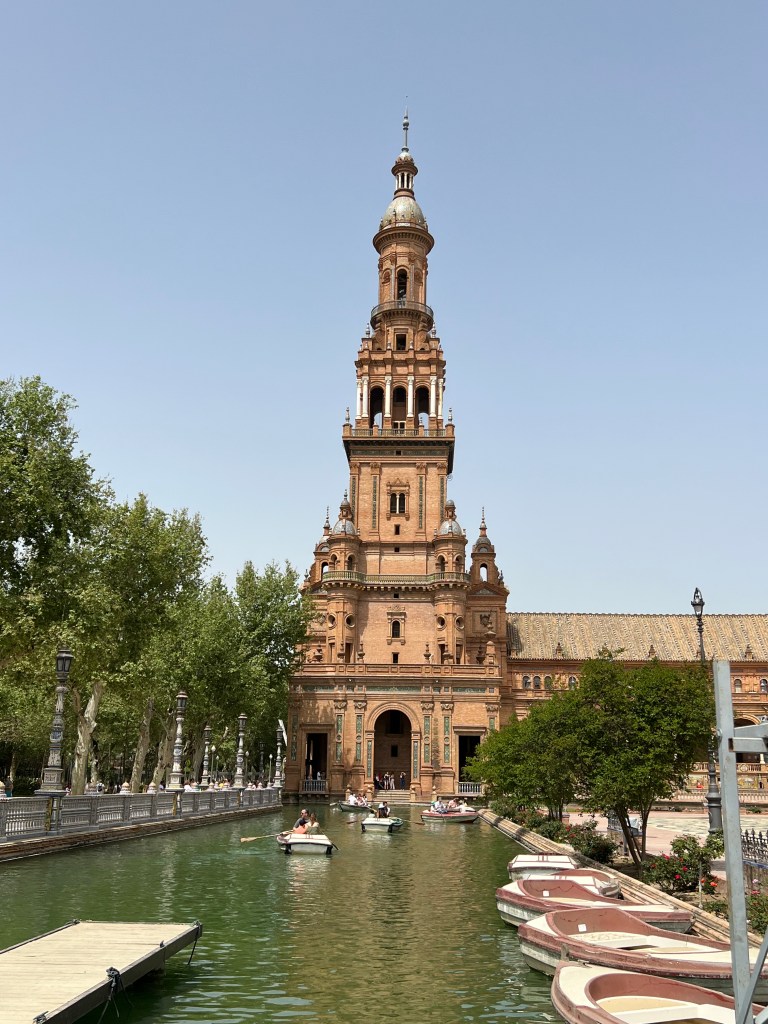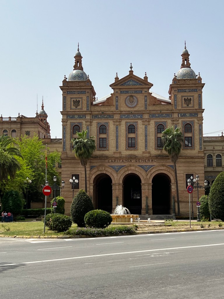 Feliz Pascua from Spain. Happy Easter. We started our morning with the knocking on our door again this morning. In my defense alarm was set for 6:45. Room service was scheduled for 7:00 and they can come 15 minutes anther way. They were there around 6:40. At least I heard them knock on the door this morning. Reminder to self, make sure I wear pajamas on days we order room service for breakfast. Lol!! I had my “dyed”hard boiled eggs this morning in true Easter tradition. We had an hour to get ourselves ready to meet our excursion group at 8:15 am in the main stage. Cadiz is the oldest city in Spain and was founded almost 3,000 years ago by the Phoenicians. This is Holy Week here is Spain and over the last two days there have been many parades and processions through the streets of town as they carried large statues in honor of the holiday. Today, being Easter, the town was quiet as most people don’t have to work today (unless you work in the tourist business and there is a ship in port). As we left Cadiz we drove over the Puente De La Constitución De 1812, the largest bridge in Spain. It was designed to allow large ships to pass under it. We had a two hour bus ride to the city of Seville. We had a comfort stop about halfway at a rest stop where there was a market and coffee shop. Megan and I got some caffeinated beverages cause we were dragging our wagons a little. Not really sure how we made these choices when booking our excursions, but the way I look at it is, in the future when I come back here, I’ll be able to spend more time in the port cities and less time on a bus. As we came into Seville we drove by the the soccer stadium and then got off the bus at the Maria Luisa Park. In 1914 it was decided that the friendship between the Americas and Spain needed to be celebrated and honored. They decided to hold a grand world’s fair but it took ten years to raise the money to have the celebration. In 1925 they started to build the park and all the trees, imported from America, then the two main squares and the hotel. It took 4 years and 10k men to complete the project. A wall was made with bricks, marble, and stone to surround the park. There are 58 benches all along the wall of the square to represent the 58 providences in Spain. They are all covered in painted tiles. Those tiles are all made in Seville. There are many pavilions (buildings and castle like structures) representing different countries. Spain’s is the biggest. Once we got off the bus, our first stop at the park was to see a large statue erected in honor of Christopher Columbus and his discovery of the Americas. Christopher Columbus sailed from Seville to Cadiz and then on to Americas. The navigators all came back to Seville with the gold and silver that they brought back from the Americas. They used their fortunes to bless this community. Columbus is actually buried here in Seville, a fact I learned today. As we walked through the square there were flamenco dancers performing in the streets and I wish we had had more time to stop and watch them. Our next stop on our walking tour was to the Visita Real Alcazar de Sevilla. This Castle originally started as a Moorish castle in the 10th century. The King of Spain renamed this area the Santa Cruz district in the 13th century. Also, known as the district of the holy cross. In the 15th century the Kings of Spain lived here. The kings loved this castle so much they added to it a little at a time to construct the grand structure we saw today. It is still a royal residence when the kings of Spain come here today. They close it to the public when they are here. This entire area was a Jewish community with the typical Jewish quarter with very narrow streets, winding streets small squares. It is very easy to get lost and we were strongly encouraged to stay with our guide and not wander away. There are three UNESCO world heritage sights all in the square here. The Visita Real Alcazar de Sevilla, the Cathedral de Santa María de Sede la 1929, and the Archivo de Indias. We could not visit the cathedral because it is Easter and there are services being held today. But we got to see and hear the bell tower. It has 25 bells that ring in scheduled sequence. At 12:30pm the bells rang with joyous jubilation. They marked the end of Lent, the end of Holy week and the start of the bull fighting season which officially starts today. It is their “Super Bowl” of bullfighting days. It was overwhelming to hear those bells ringing while standing in a centuries old castle, on Easter, in Spain. I was moved to tears and it was another moment of imbedded memories for me for this trip. After we left the castle we had a chance to walk through the alleyways and see shops and cafes. We were also given about thirty minutes of free time to do some shopping. Megan and I had a lot of fun running back to shop where they were making toffee coasted almonds and the smell drew us right back. They were still warm and they were delicious. We then headed to the bus for a five minute drive to the restaurant where we had lunch. The dessert was the best part of lunch to write home about, cream puffs with a hot chocolate dipping sauce. Megan and I each had an espresso and we were zinging for the rest of the day. After we left the restaurant we walked across the street to The Plaza de España. It has been used as a filming location, including scenes for Lawrence of Arabia(1962), Star Wars: Episode II – Attack of the Clones(2002) in exterior shots of the City of Theed on the Planet Naboo and it was also used in the movie Night and Day. This Plaza was our second WOW moment of our time here in Spain. Again, my photos do not do it justice. The buildings are exquisite. There is a beautiful water fountain in the middle and moat of sort with boats you can rent a trip in, much like Venice There are multiple walking bridges that take you over the water way and in the center there is a round about where the horse drawn car