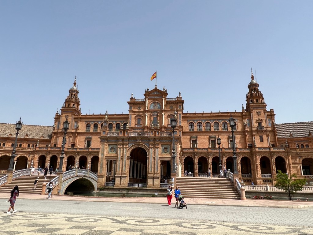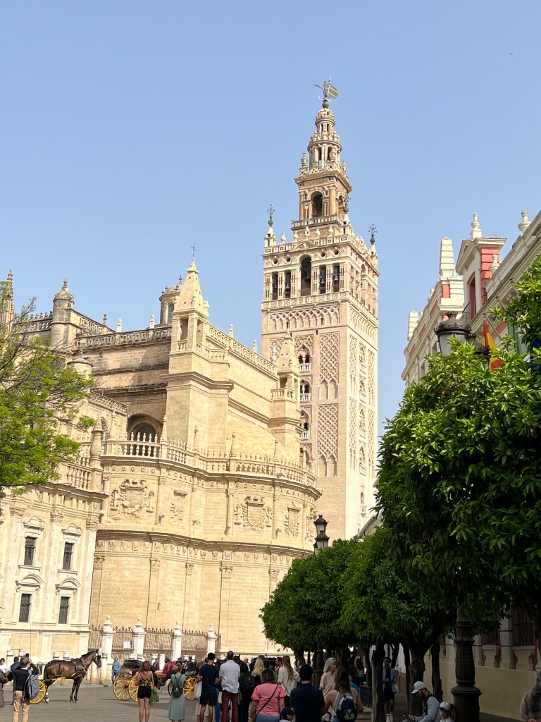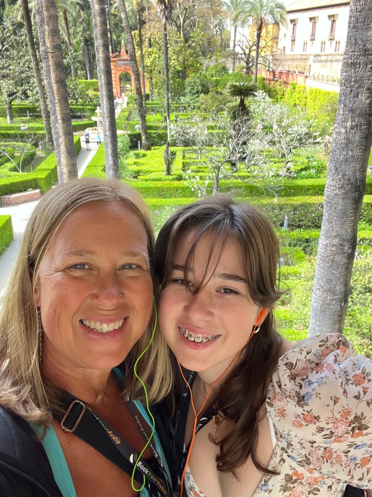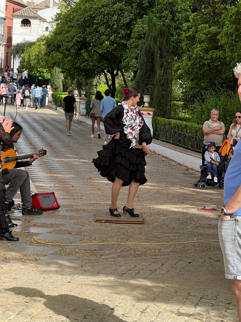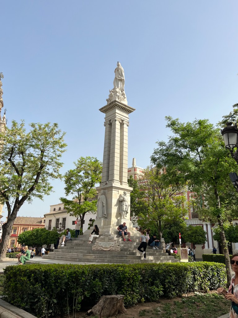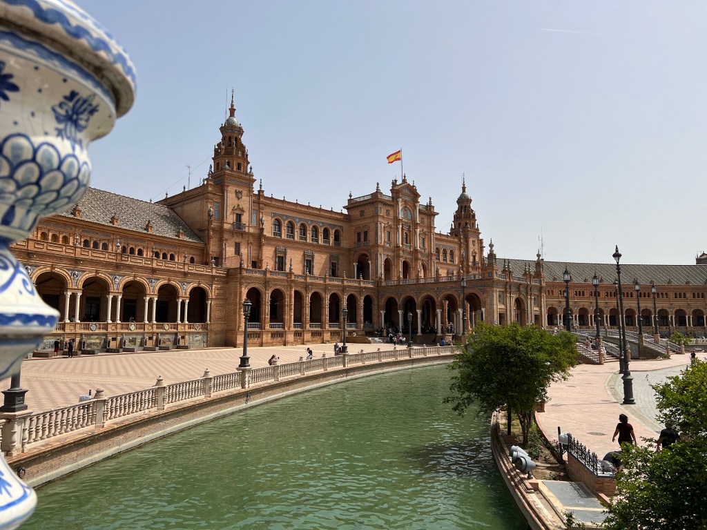 Feliz Pascua from Spain. Happy Easter. We started our morning with the knocking on our door again this morning. In my defense alarm was set for 6:45. Room service was scheduled for 7:00 and they can come 15 minutes anther way. They were there around 6:40. At least I heard them knock on the door this morning. Reminder to self, make sure I wear pajamas on days we order room service for breakfast. Lol!! I had my “dyed”hard boiled eggs this morning in true Easter tradition. We had an hour to get ourselves ready to meet our excursion group at 8:15 am in the main stage. Cadiz is the oldest city in Spain and was founded almost 3,000 years ago by the Phoenicians. This is Holy Week here is Spain and over the last two days there have been many parades and processions through the streets of town as they carried large statues in honor of the holiday. Today, being Easter, the town was quiet as most people don’t have to work today (unless you work in the tourist business and there is a ship in port). As we left Cadiz we drove over the Puente De La Constitución De 1812, the largest bridge in Spain. It was designed to allow large ships to pass under it. We had a two hour bus ride to the city of Seville. We had a comfort stop about halfway at a rest stop where there was a market and coffee shop. Megan and I got some caffeinated beverages cause we were dragging our wagons a little. Not really sure how we made these choices when booking our excursions, but the way I look at it is, in the future when I come back here, I’ll be able to spend more time in the port cities and less time on a bus. As we came into Seville we drove by the the soccer stadium and then got off the bus at the Maria Luisa Park. In 1914 it was decided that the friendship between the Americas and Spain needed to be celebrated and honored. They decided to hold a grand world’s fair but it took ten years to raise the money to have the celebration. In 1925 they started to build the park and all the trees, imported from America, then the two main squares and the hotel. It took 4 years and 10k men to complete the project. A wall was made with bricks, marble, and stone to surround the park. There are 58 benches all along the wall of the square to represent the 58 providences in Spain. They are all covered in painted tiles. Those tiles are all made in Seville. There are many pavilions (buildings and castle like structures) representing different countries. Spain’s is the biggest. Once we got off the bus, our first stop at the park was to see a large statue erected in honor of Christopher Columbus and his discovery of the Americas. Christopher Columbus sailed from Seville to Cadiz and then on to Americas. The navigators all came back to Seville with the gold and silver that they brought back from the Americas. They used their fortunes to bless this community. Columbus is actually buried here in Seville, a fact I learned today. As we walked through the square there were flamenco dancers performing in the streets and I wish we had had more time to stop and watch them. Our next stop on our walking tour was to the Visita Real Alcazar de Sevilla. This Castle originally started as a Moorish castle in the 10th century. The King of Spain renamed this area the Santa Cruz district in the 13th century. Also, known as the district of the holy cross. In the 15th century the Kings of Spain lived here. The kings loved this castle so much they added to it a little at a time to construct the grand structure we saw today. It is still a royal residence when the kings of Spain come here today. They close it to the public when they are here. This entire area was a Jewish community with the typical Jewish quarter with very narrow streets, winding streets small squares. It is very easy to get lost and we were strongly encouraged to stay with our guide and not wander away. There are three UNESCO world heritage sights all in the square here. The Visita Real Alcazar de Sevilla, the Cathedral de Santa María de Sede la 1929, and the Archivo de Indias. We could not visit the cathedral because it is Easter and there are services being held today. But we got to see and hear the bell tower. It has 25 bells that ring in scheduled sequence. At 12:30pm the bells rang with joyous jubilation. They marked the end of Lent, the end of Holy week and the start of the bull fighting season which officially starts today. It is their “Super Bowl” of bullfighting days. It was overwhelming to hear those bells ringing while standing in a centuries old castle, on Easter, in Spain. I was moved to tears and it was another moment of imbedded memories for me for this trip. After we left the castle we had a chance to walk through the alleyways and see shops and cafes. We were also given about thirty minutes of free time to do some shopping. Megan and I had a lot of fun running back to shop where they were making toffee coasted almonds and the smell drew us right back. They were still warm and they were delicious. We then headed to the bus for a five minute drive to the restaurant where we had lunch. The dessert was the best part of lunch to write home about, cream puffs with a hot chocolate dipping sauce. Megan and I each had an espresso and we were zinging for the rest of the day. After we left the restaurant we walked across the street to The Plaza de España. It has been used as a filming location, including scenes for Lawrence of Arabia(1962), Star Wars: Episode II – Attack of the Clones(2002) in exterior shots of the City of Theed on the Planet Naboo and it was also used in the movie Night and Day. This Plaza was our second WOW moment of our time here in Spain. Again, my photos do not do it justice. The buildings are exquisite. There is a beautiful water fountain in the middle and moat of sort with boats you can rent a trip in, much like Venice There are multiple walking bridges that take you over the water way and in the center there is a round about where the horse drawn car