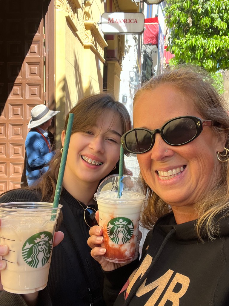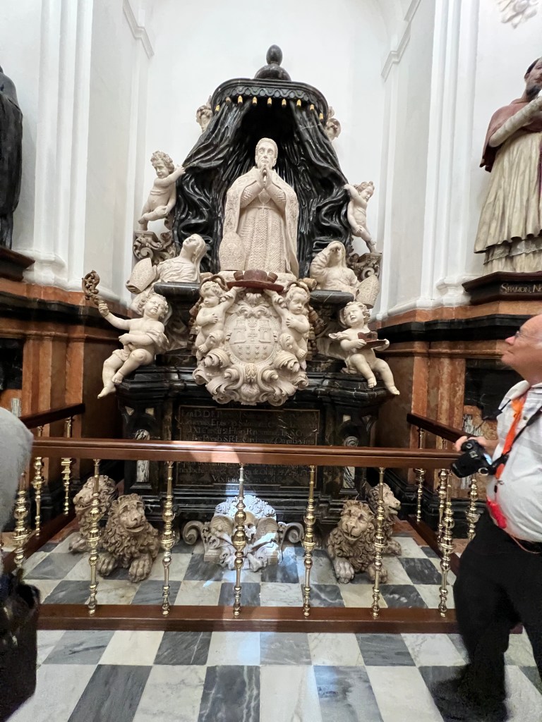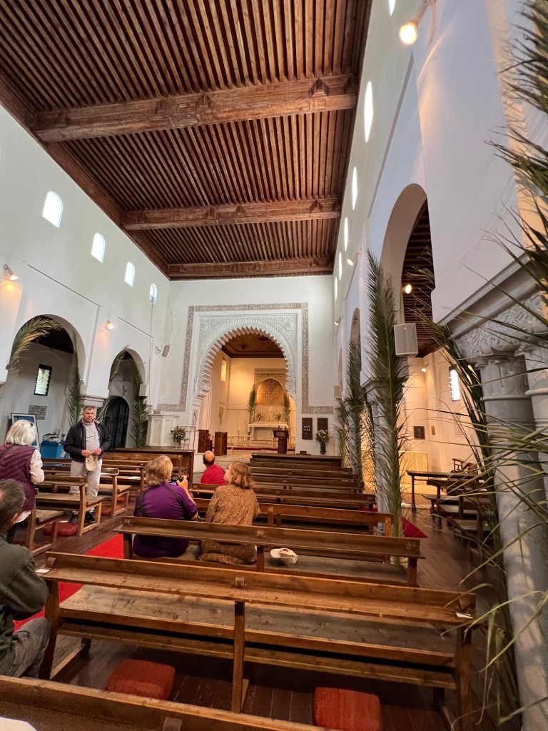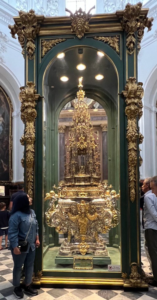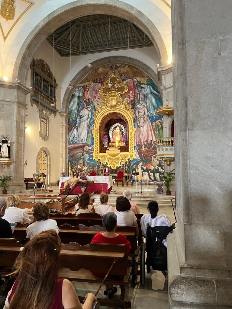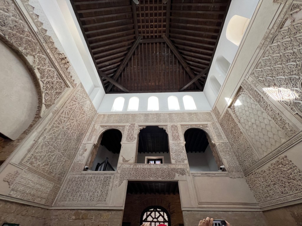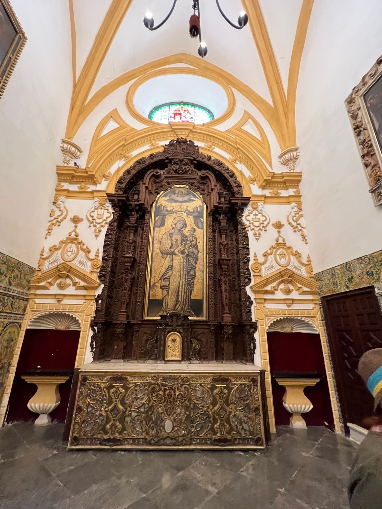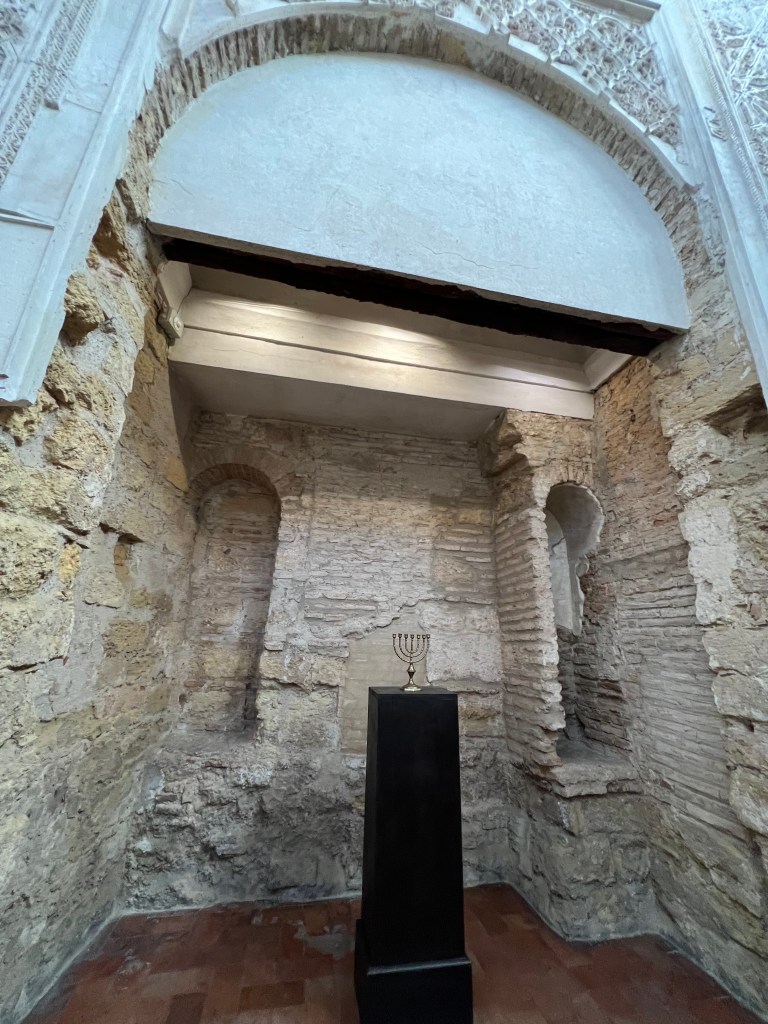 This morning we woke up in Malaga Spain even before the sun was up. Last night we moved our clocks ahead TWO hours and that 7am wake up call felt like the 5am it was to our bodies. It’s a good things we ordered room service because my alarm didn’t go off, I didn’t hear him knock on the door, so they called and woke us up. We had an hour to get ready before we had to be at the Main Stage to meet our tour group at 8:00 am. Today we took a brief driving tour around the town of Malaga and saw the fountain, the kasbah, the soccer stadium, the bullfighting stadium (where they have actual bullfighting, in Morocco they’ve deemed it inhumane so they are all shut down), a couple of churches and some historic building before we headed to the freeway. We took a two hour drive to the city of Cordoba. Along the way we passed through miles and miles of olive trees and then vineyards. The olive trees are actually called “The Sea of Olives” and spans 1.3 million hectares (3212369.959 acres) and over 180 million olive trees and are between Jaén and Estepa. This area is currently under candidacy for being registered as UNESCO World Heritage sight. It would be Spain’s 49th sight if approved. Once we arrived in Cordoba, we had a great walking tour all around the old town section of Cordoba. We first visited the old Jewish quarter and the Mudejar Synagogue. This synagogue had been covered over with plaster and paint and was discovered during a renovation of the building that was at that time a hospital. We found a Starbucks and had a brief break so, Megan and I took a quick run over to enjoy our first “home” treat in a long time. The highlight of todays trip by far was the Great Mosque of Cordoba also called the Mosque-Cathedral of Cordoba. They started construction in 785 and continued to add on to it for centuries. It was used as a temple, a Catholic Church and a Mosque. The building was so rich in religious artifacts, symbols, statues and paintings. I kept catching myself saying WOW. It is one of the most beautiful places I have ever seen before. There are two pipe organs and multiple alters. The brick-and-stone striped arches are supported by 856 granite and marble pillars. There is a bell tower in the courtyard that stands over 150 feet tall. It is the largest urban center declared World Heritage Site by the UNESCO. I took so many photos and they pale in comparison to what we actually saw. After our visit to the church we walked through the narrow passages, walkways and alleys to a lovely restaurant where we had lunch. We were served a chilled tomato soup, meat and potatoes, and frozen dessert. We were also served bottled water and red wine. It was a very traditional Spanish lunch and it was delicious. After lunch we had quite a long walk back past the Mosque through an ancient gate and across a Roman bridge to where the bus awaited on the other side. We then had a to hour drive back to the port and our ship. We had a few moments to do some quick shopping at the shops at the port, I got a magnet, Megan got a keychain and we had the opportunity to sample and then purchase some Spanish Iberico ham that was freshly carved off the leg in front of us. I will be enjoying that soon. We got back on the ship around 5:30pm and decided to go to the Main dining room for a quick dinner. Again, I wasn’t very hungry after a large lunch so I ate light. After dinner I changed into my cozies and headed to an acupuncture appointment. I am happy to say my hip is better today. Three days of almost 10k steps every day and lots of sitting on a bus and I am happy to report that I am not in pain this evening. I am writing my blog so I can go to bed, because with these crazy schedules I know if I don’t do it now I will forget everything I did today by this time tomorrow. Such busy days, such little sleep, and so many blessings in everything I am getting to do and see. Again, another day of an overwhelming number of photos. Please enjoy them. I encourage you if you get a chance to look up the Mosque we visited today and learn about it and all of it’s wonderful history.