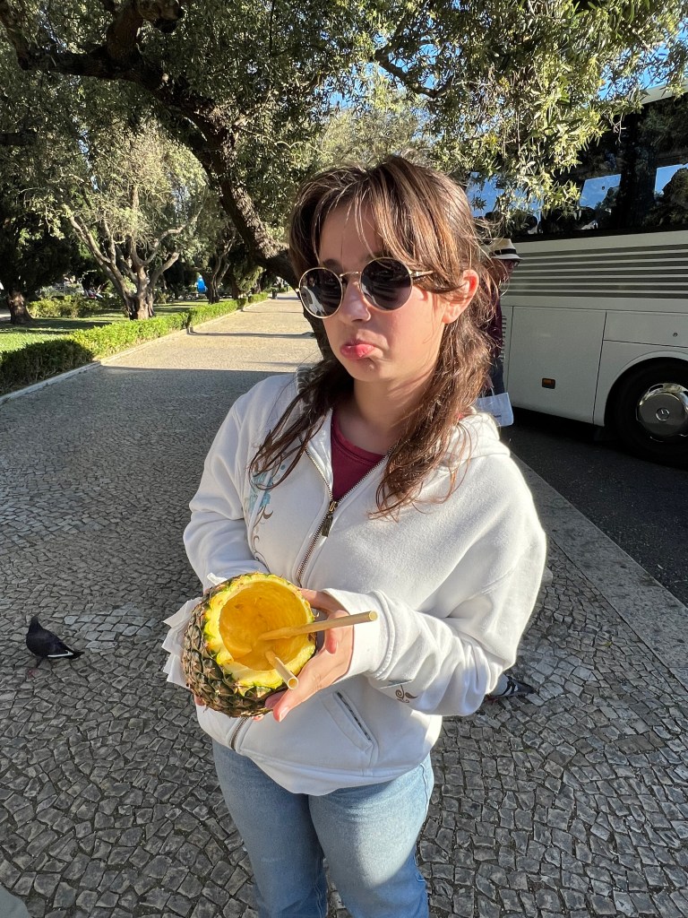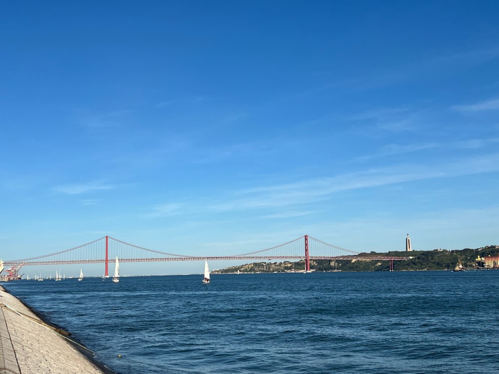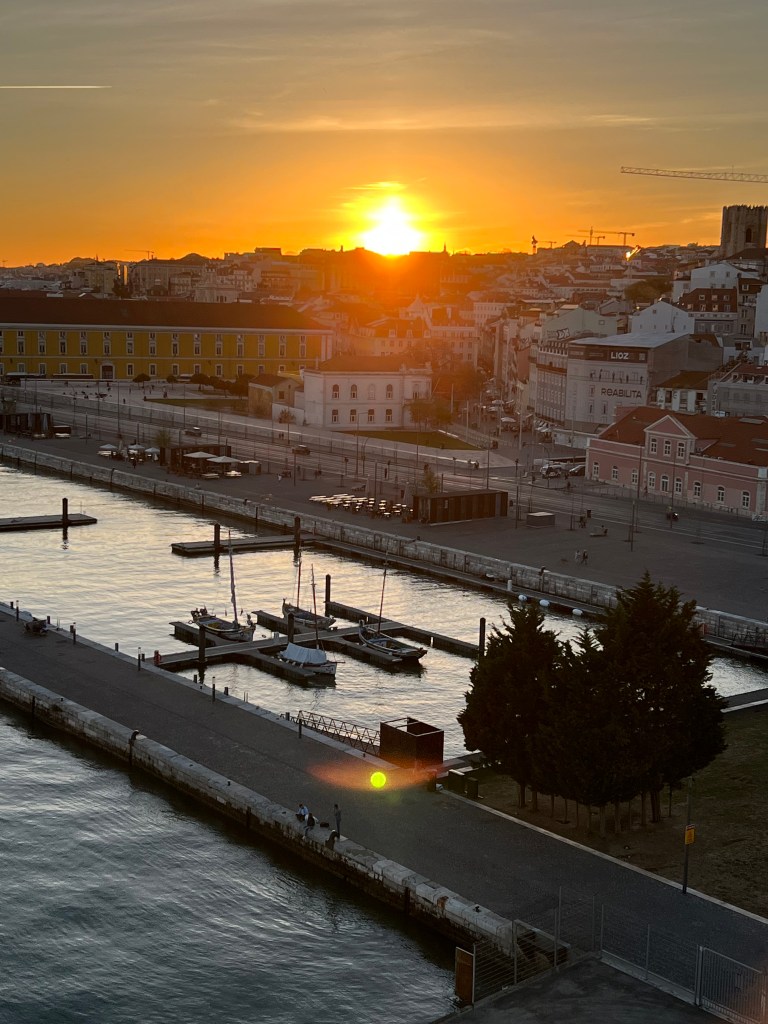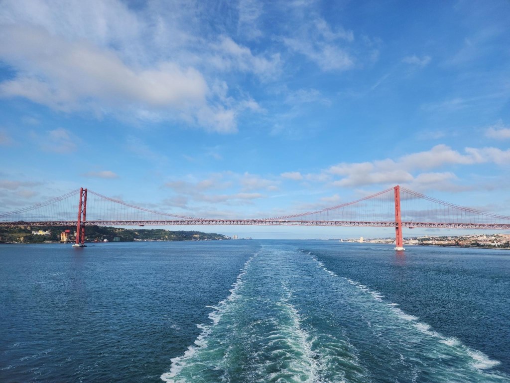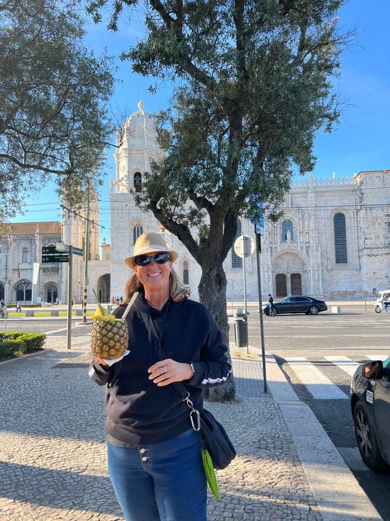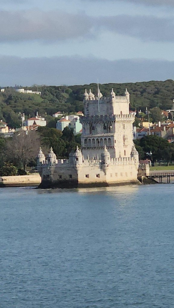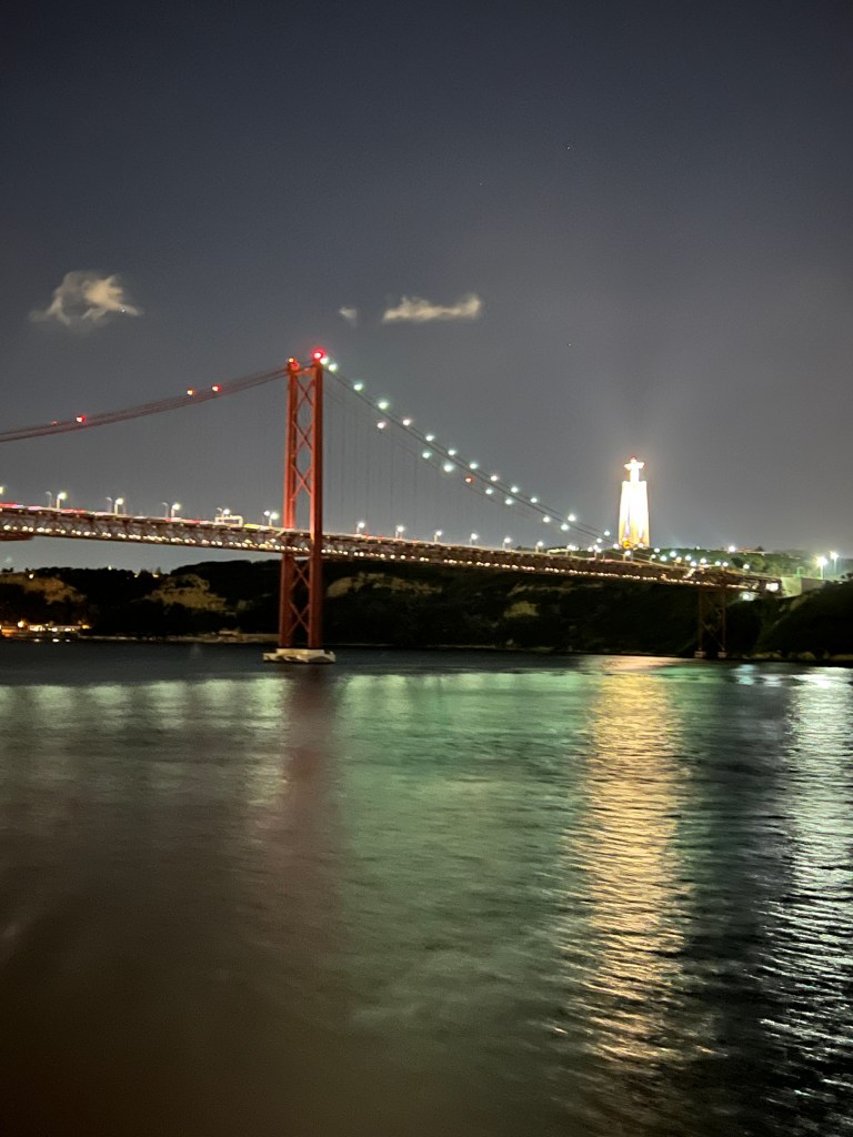 Good morning from Lisbon on this Monday after Easter. It is still national holiday here today as part of the holy week celebrations and there were three ships in port today so that definitely made for some big crowds. We thankfully didn’t have to meet our excursion group until 10:30am this morning so were able to get little extra rest before getting up. We grabbed breakfast in the Neptune lounge before heading off to the Rolling Stone lounge to meet our group. Today was a Cruise Specialist excursion and there were around 80 passengers going so we were split up into two buses for the day. We took a bit of scenic drive around the downtown Lisbon area and got to see some of the historical buildings. They had a lot of hills, cable cars, and a giant red bridge spanning the water. Sound familiar to you? Except for the centuries old buildings and architecture, it definitely felt very reminiscent to San Francisco. Next we drove to Sintra and visited this quaint village. It’s largest draw in the Sintra National Palace. But before we visited the palace we had lunch at a cafe directly across the street. By the time we were done eating we were given the option to walk through the palace or enjoy some free time to walk the cobblestone streets, visit the shops and the hands-craft stores, and look through the wine shops. After visiting several grand palaces over the last few days and keeping up a crazy pace behind a tour guide we opted for the later. We had about 90 minutes to go where we wanted and to do what we wanted. It was lovely! We walked through several shops, got our souvenirs, Megan enjoyed a chocolate croissant, and we just absorbed the day to day life of this village in Portugal. I know it was exactly what my soul needed. We did visit the palace gift shop as well and bought a book with lovely photos and the history of the palace so we can read all about it at our leisure. Instead of taking the freeway back to Lisbon, we traveled all the way back along the coast line. We made a stop at the Cabo de Roca. It is one of the most famous places in Portugal, it has a beautiful lighthouse and it is the westernmost point of Europe. So we have now been to the “end of the world” in Ushuaia and now to the western “end of Europe”. As we traveled back along the coast we saw many beautiful villas, I would have called them mini castles, that were hundreds of years old. The people who lived along the coast had an undersanding with the military that at any time needed, their homes could be taken over to be used for a fort to protect Portugal. We saw lots of young people enjoying the beaches, surfing and lining the coast line to watch the sunset as the day came to a close. I definitely felt some pangs of homesickness today. So many sights reminiscent of California today that it made me miss home even more. As we got back into Lisbon we were able to make a few more stops so we can get photographs of the 16th century Jeronimos Monastery. Right next door was the famous Pasteis de Nata (Also known as Pasteis de Belem) where they originally started making a custard tart that can now be found all over Portugal. We were told that this was the original bakery that made them with a recipe from the monks at the monastery. We opted for the photos of the monastery and as it turned out a hand made Pina Colada. Made from a fresh pineapple that I smelled before I even saw them. A taste of Hawaii!! Lucky for Megan and I, a fellow passenger was kind enough to bring a couple of pastries back to the bus for us. Thank you Rodger!! So it was a definite treat stop in more ways than one, history, alcohol and sweets. One of the best 10 minute stops I have ever had!!! We then visited the Monument of the Discoveries depicting many heroes of Portuguese history. As we drove back to the port we got to drive right along the waters edge and we learned that they usually don’t let tourist buses come this route, but due to some road construction, we were allowed to and it was a special treat that we enjoyed very much. Our 7 hours excursion turned out to be about 9 hours instead with the extra stops we made along the way back, but they were not as stressful or hectic as the last few days so it made for a wonderful experience. We got back to the ship around 7:45pm and we went to the Lido to grab something to eat from their specialty themed buffet this evening “Portuguese Food”. Megan went off to play cards and I spent some extra time just looking out the window from the Lido, going through all my photos from today, and then suddenly I looked out the window and realized we were moving. So I hauled home and out onto my patio so I could get some photos as we sailed under the bridge and past the Tower of Belem again. They were both so beautiful lit up at night. I am going right to sleep tonight as I am tired and we have to set the clocks ahead an hour again this evening. Boy are we looking forward to our sea day tomorrow. 5 days straight of 10 thousand plus steps and so much information and culture absorbed over that time I am mentally and physically exhausted. I wouldn’t trade this opportunity I am having for anything in the world, just wish all my loved ones were here with me. We are nine hours ahead of California again and we have a couple of more back and forth’s before we start only losing time again. Enjoy the photos everyone! Hugs.