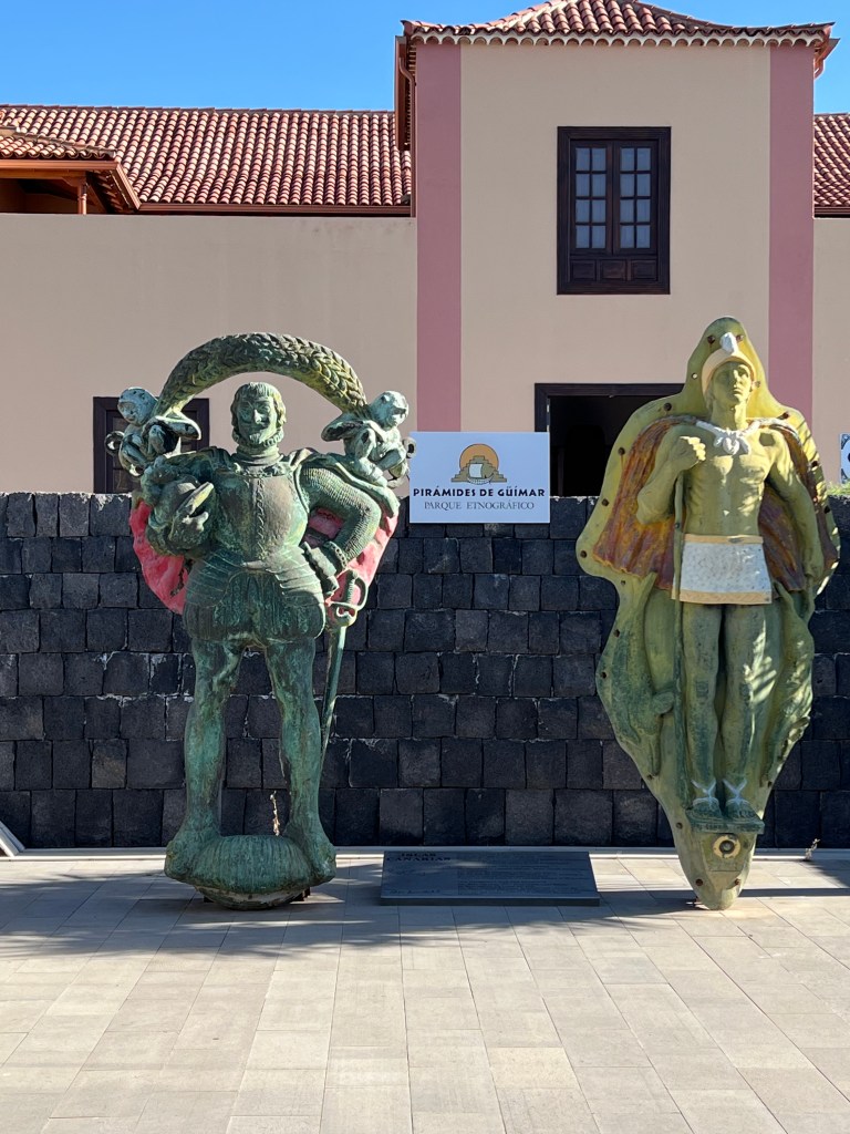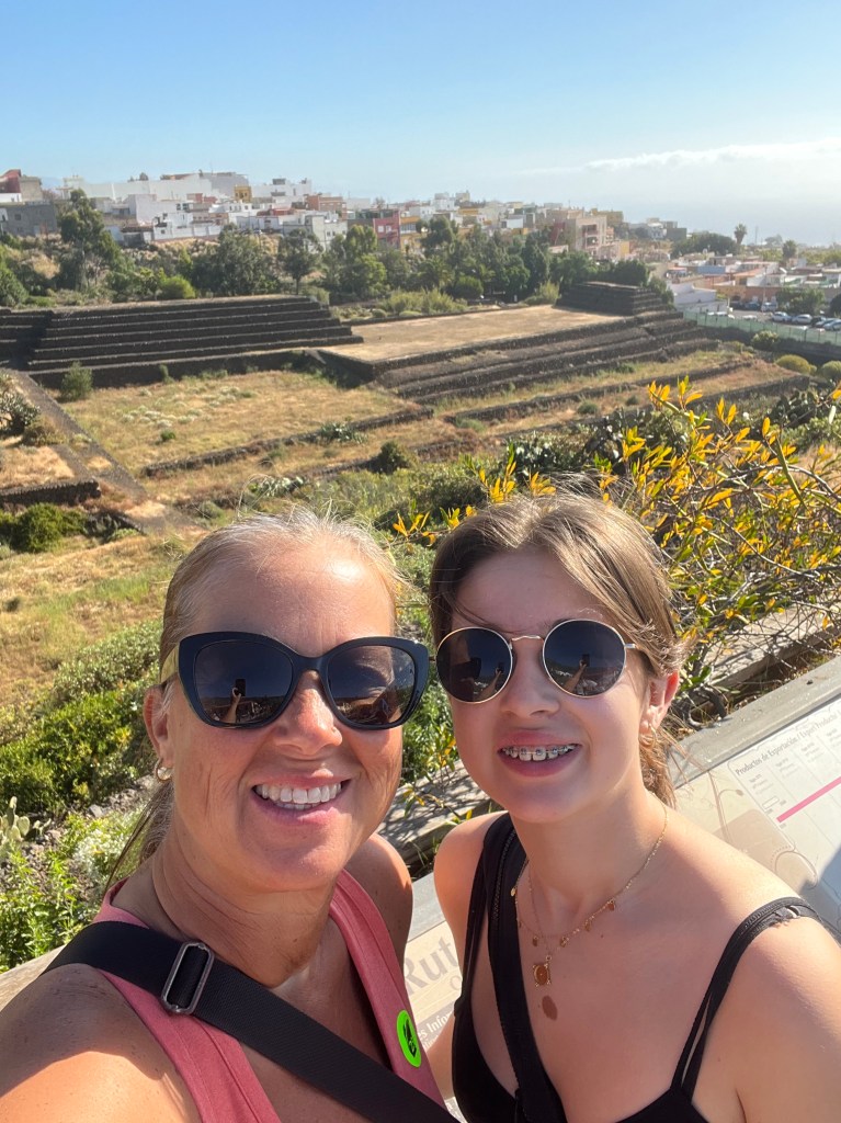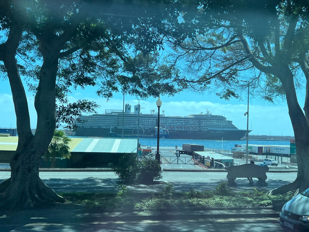 Good morning from Tenerife in the Canary Islands. It is a new country, Spain, a new climate, about 75 degrees, and a new and welcomed sense of security as we pull into a new port. Of course we are always aware of our surroundings and others around us, but I do feel like a weight has been lifted. We started our morning off rough. We didn’t get much sleep after last nights festivities and I have a bit of a headache this morning. (And it has wine written all over it). Also somehow our phones self changed the time last night so we woke up later then we had hoped to cause the alarm went off an hour later then we had planned. We grabbed a quick bite from the Neptune lounge and ate it in the Main stage while we awaited our number to be called for our excursion. A little bit about the Canary Islands. They all have a rare Micronesian climate that is controlled by the trade winds that usually blow from the North. There are varied microclimates throughout Tenerife alone that changes between northern and southern Tenerife. You can experience all four seasons in a 2.5 hour drive. They have no hurricanes on the Canary Islands. But due to the climate here and the and mountain ranges that form the island, the Canary Islands actually create them and from here they hear to the Caribbean. There are other islands in the distance but we were unable to see them due to the Calima which carries the fine particles of sand from the Sahara desert here to the islands. This is a phenomenon we experience the other evening and I didn’t even know it existed till now. The desert is about 90 miles from where we are now and the sand has been known to cover the entire town with a light dusting periodically. Our first stop was the pyramids. They are actually a giant macro calendar where the sunset is aligned perfectly during the summer solstice and the sunrise is in perfect alignment during the winter solstice. There are legends as to how they came to be here and we were told all the possibilities and then we were left to make a decision for ourselves. There was a lovely cafe in the property and Megan and I had a recommended leche leche coffee drink. It was so delightful. Next, we took a drive to Candelaria to visit the Basilica there. They are known for their black Madonna. Every year on Augusts 15th, Dia de La Candelaria, the statue is carried through town in a procession to the fishing dock where she sails around the bay before returning to the dock and then carried back to the Basilica here. It was Palm Sunday today but the services had ended before our arrival. The church and altar was decorated beautifully for the Holy Week ahead. We had some free time after to walk through town. Megan had an ice cream and bought some Oreos. We both purchased some wide legged pants, they actually look like skirts. We will be visiting some churches in our upcoming ports and there is a dress code that says we can not show bare shoulders, mid drifts or knees. We only have shorts and jeans with us. So these will be cool and can be worn alone of thrown over our shorts. We drove through the downtown area on our way back to the ship and some of our highlights were the Bull Fighting Stadium, which is no longer used and anticipated to be torn down soon. Beautiful blooming Orchid trees, a statue called the Fallen Angel and the theater building (that reminded me of the Sydney Opera House). We were back to the ship by 1:00pm. There were some shops at the pier but we had already grabbed our magnet and our keychain so we opted not to go back out. I changed my evening massage appointment to this afternoon and enjoyed some time pampering my body. Megan went and played Volleyball. We had dinner in the main dinning room this evening. We saw a change in the menus as promised and there were some new items and the menu set up is now reminiscent to how it was on the previous world cruise. It was comforting to see it back. Due to the time change after dinner the sun was still quite bright in the sky so Megan and I put on our swimsuits and went for a swim and then a soak in the hot tub. Then it was home to shower and get ready for bed this evening. I am pooped after our late evening last night and our lovely day today. I absolutely loved this island. I had been reading about other people’s vacation here for years. It is a regular vacation destination for Europeans especially from the UK. I can most definitely understand why. I would come back here for an extended stay in a heartbeat. Enjoy thumbing through all my photos from today. Hugs!!