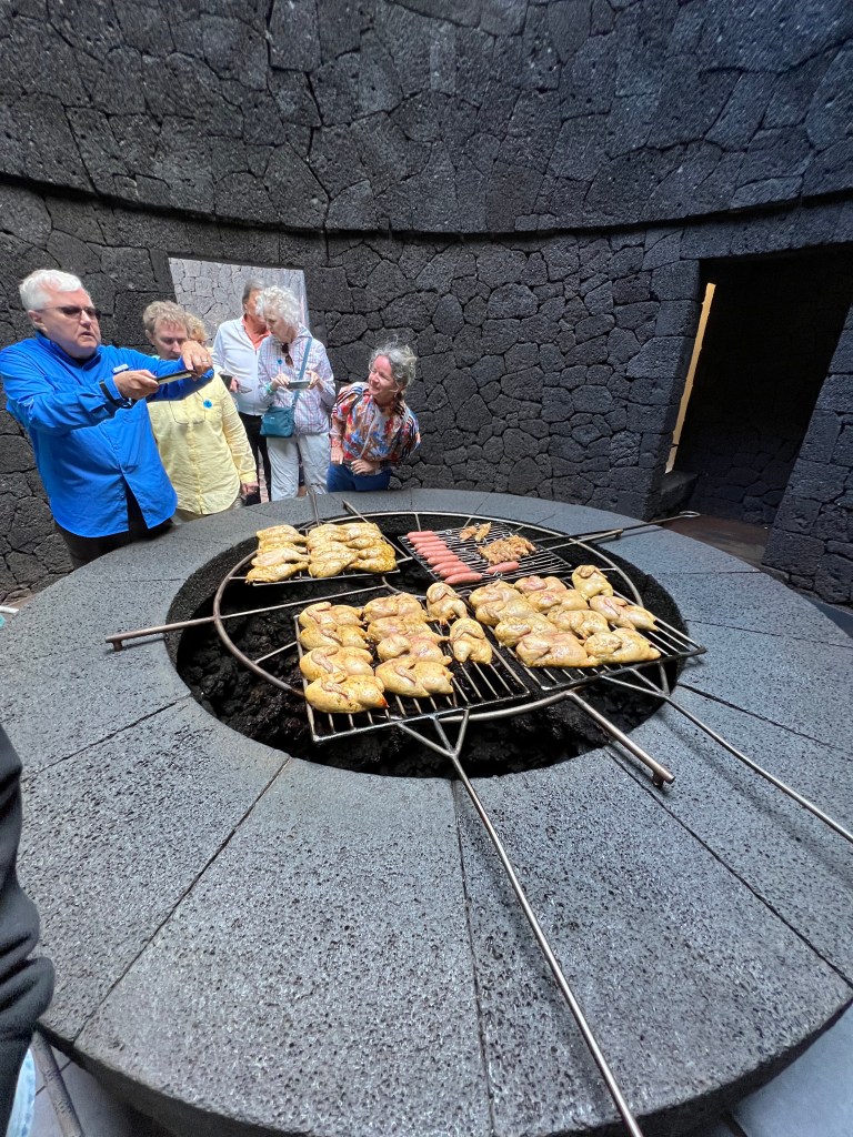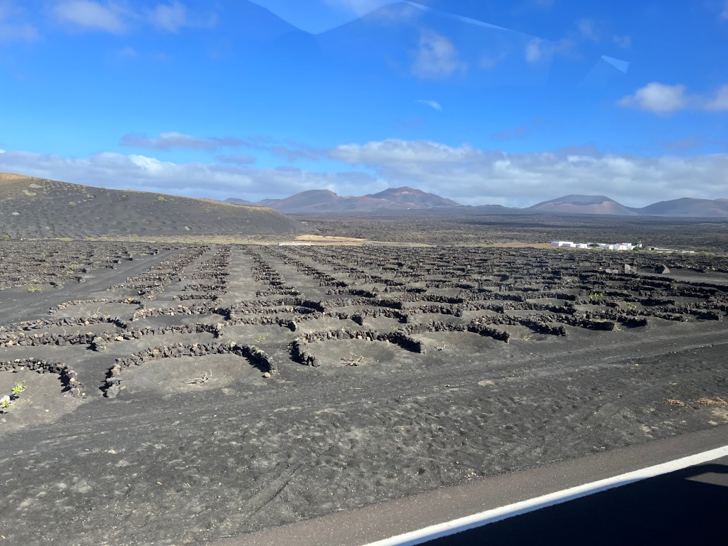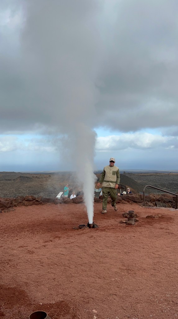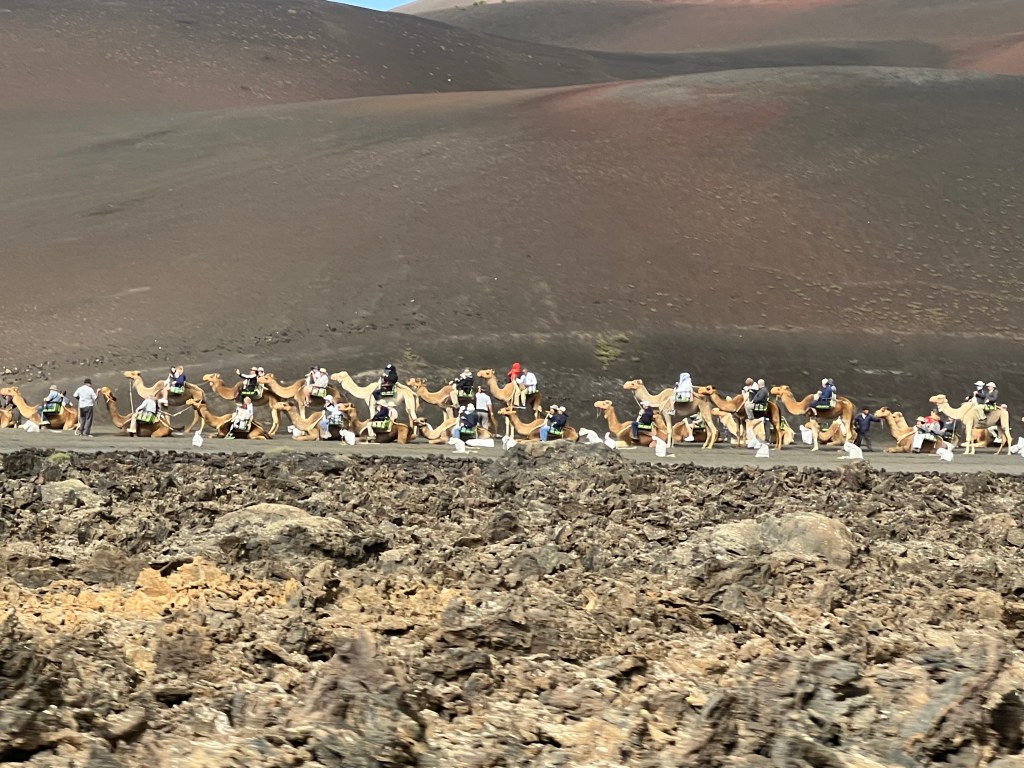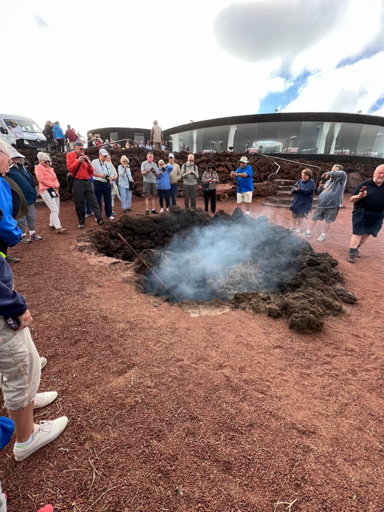 Good morning all. Today we are visiting our second of the Canary Islands of this cruise. Megan and I were up early this morning. Thee was a majestic sunrise this morning and I am so blessed that I got a great photos of it. Sunrises and sunsets are even that much more beautiful when you are at sea. We grabbed a quick breakfast at the Lido market and then headed the Rolling Stone lounge to meet our 8:30 excursion group with Cruise Specialists. They had three buses in our group today all going to the same places, but slightly staggered. We left the port first so we got to take the lead. We received a very educational talk today as we drove across the island to our first stop. We learned that there are 8 main islands that make up the Canary islands and five smaller uninhabitanted ones. The smallest of the inhabited islands only has 700 residence. Tenerife is the largest and the island we visited yesterday. This island measures only 43 miles long by 12 miles wide. We learned that this island is 25% covered in lava fields. We drove across the island to the Timanfaya National Park first. Here there are over 20 inactive volcanoes and 35 craters. The most uniques novelty here is that there is still many geothermic anomalies occurring. In fact it is one of only 302 Unesco Biosphere Reserves in the world. Only 30 cm below the surface we were given stones to hold that were about 175 degrees. 10 meters down, the temperature measures about 662 degrees. They demonstrated the heat by throwing some straw into the pit and a short time later it bursts into flames. Lastly, a ranger poured a bucket of water into one of the flumes and a short time later a huge geyser of steam burst up from the earth. It was very cool to see. There is a restaurant on site here called El Diablo, The Devil, and there is a pit where they are using the geothermal heat to actually cook the food here. We re-boarded the bus and took a tour through the National Park where we got to see the lava flow “rivers”, caves and craters all created by the lava flow and stalagmites and stalactites. The landscape looked like being on the moon. Very other worldly. There were some narrow winding roads and some sketchy hairpin turns and our bus driver was phenomenal. As we left the park we saw the queue of cars waiting to get into the park. We arrived about 20 minutes before opening and as we left we were told that the people waiting to get in were now in for about a 2.5 hour wait. So I encourage you to arrive early. We got to see an area where you could have taken a camel ride but that was not included in our excursion for the day. We had the opportunity to ride camels on the beach outside of Cabo a couple of years ago and that would be hard to top. From there we drove through some agricultural lands on our way to a winery. There is no well or ground water on the island. So they use the volcanic ash that was left here from the eruptions to attract the moisture in the air. The plants are planted down into hole so the roots reach the ground soil and stone walls are built to protect the plants from the trade winds. The ash attracts and holds the moisture and it in turn waters the plant. A wonderful solution to a major problem here on the island and a definite nod to human ingenuity. We did get to stop and sample one wine and I did purchase one bottle, which sadly had a fate worse than death…as I boarded the ship today I dropped the bottle at the gangway and it shattered. Not my finest moment and a sad ending to my bottle of wine. Our last stop was the geographical center of the island where a statue and a replica of a town honors the farmworkers who fought through the absolute adverse conditions this island has to provide life for the community here. It was a beautiful memorial and a lovely way to show the determination of the human spirit. A lot of this island has been built and designed around the artistic design and specifications of César Manrique. They buildings on the island are predominantly white, very reminiscent of Greece, and they are only allowed to paint their doors, green, blue of brown. There are also no buildings on the island over three stories except for one 17 story hotel in the downtown area. No building is allowed to take away the view of the island from another. We returned back to the ship and the pier by around 1:00pm. We had a chance to grab some lunch at the lido and ran into Gail and Marty and we had a nice chat about our days and each of our adventures. Then we headed home so I could write this for you all and we could relax. We are both pretty tired today. Must be the sun, the fresh air and the time change. We set the clocks back again this evening an hour making us back to the seven hour time difference to California. We went to the dining room for dinner tonight at our normal 5:00pm dining time. I had my favorite, Peruvian Chicken!! Since we had lunch we weren’t very hungry this evening. After dinner I headed to the Salon for a hair appointment and Megan hung out with me for about an hour and then went and played cards with Gail and Marty. I had my roots tricked back into being brown, not ready to go gray gracefully, had some highlights added and took about 4 more inches off. I officially have all my hair the same length. It was a journey letting my bangs grow out over the last couple of years and I intend on growing it back out now that it is all the same length. Photos to come later. My appointment didn’t end till about 9:30pm so when I got home all we did was crawl into bed and crash out. We had a delay in departing from the port this evening, about three hours later, and our arrival tomorrow has now been delayed but we don’t yet know by how much. They will let us know in the morning. Now it is time to sleep. We are at sea and will wake up tomorrow in Morocco. Excited to visit some Souks!! Spice shopping here we come. Love and hugs, enjoy all the photos from today. There are several again, but I want to g