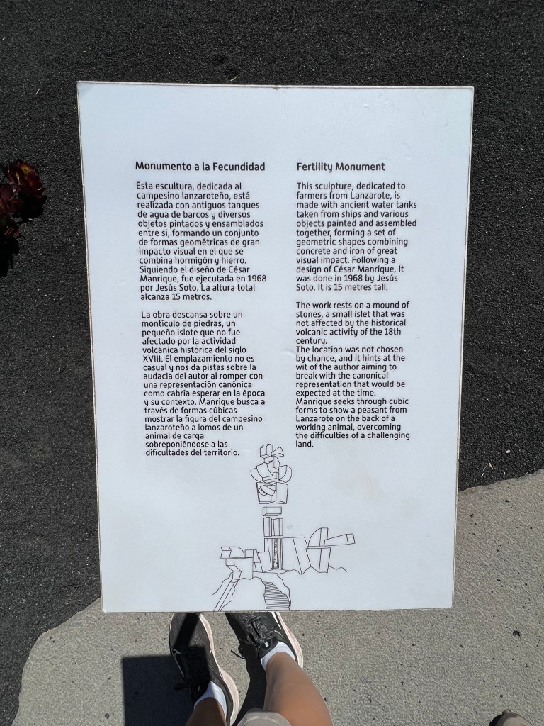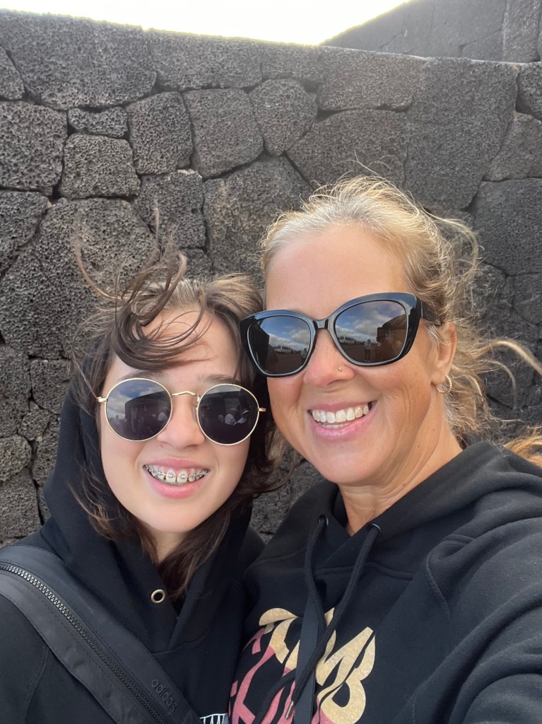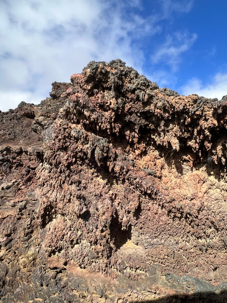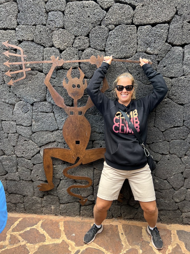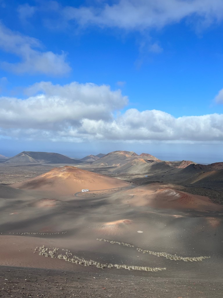 Good morning all. Today we are visiting our second of the Canary Islands of this cruise. Megan and I were up early this morning. Thee was a majestic sunrise this morning and I am so blessed that I got a great photos of it. Sunrises and sunsets are even that much more beautiful when you are at sea. We grabbed a quick breakfast at the Lido market and then headed the Rolling Stone lounge to meet our 8:30 excursion group with Cruise Specialists. They had three buses in our group today all going to the same places, but slightly staggered. We left the port first so we got to take the lead. We received a very educational talk today as we drove across the island to our first stop. We learned that there are 8 main islands that make up the Canary islands and five smaller uninhabitanted ones. The smallest of the inhabited islands only has 700 residence. Tenerife is the largest and the island we visited yesterday. This island measures only 43 miles long by 12 miles wide. We learned that this island is 25% covered in lava fields. We drove across the island to the Timanfaya National Park first. Here there are over 20 inactive volcanoes and 35 craters. The most uniques novelty here is that there is still many geothermic anomalies occurring. In fact it is one of only 302 Unesco Biosphere Reserves in the world. Only 30 cm below the surface we were given stones to hold that were about 175 degrees. 10 meters down, the temperature measures about 662 degrees. They demonstrated the heat by throwing some straw into the pit and a short time later it bursts into flames. Lastly, a ranger poured a bucket of water into one of the flumes and a short time later a huge geyser of steam burst up from the earth. It was very cool to see. There is a restaurant on site here called El Diablo, The Devil, and there is a pit where they are using the geothermal heat to actually cook the food here. We re-boarded the bus and took a tour through the National Park where we got to see the lava flow “rivers”, caves and craters all created by the lava flow and stalagmites and stalactites. The landscape looked like being on the moon. Very other worldly. There were some narrow winding roads and some sketchy hairpin turns and our bus driver was phenomenal. As we left the park we saw the queue of cars waiting to get into the park. We arrived about 20 minutes before opening and as we left we were told that the people waiting to get in were now in for about a 2.5 hour wait. So I encourage you to arrive early. We got to see an area where you could have taken a camel ride but that was not included in our excursion for the day. We had the opportunity to ride camels on the beach outside of Cabo a couple of years ago and that would be hard to top. From there we drove through some agricultural lands on our way to a winery. There is no well or ground water on the island. So they use the volcanic ash that was left here from the eruptions to attract the moisture in the air. The plants are planted down into hole so the roots reach the ground soil and stone walls are built to protect the plants from the trade winds. The ash attracts and holds the moisture and it in turn waters the plant. A wonderful solution to a major problem here on the island and a definite nod to human ingenuity. We did get to stop and sample one wine and I did purchase one bottle, which sadly had a fate worse than death…as I boarded the ship today I dropped the bottle at the gangway and it shattered. Not my finest moment and a sad ending to my bottle of wine. Our last stop was the geographical center of the island where a statue and a replica of a town honors the farmworkers who fought through the absolute adverse conditions this island has to provide life for the community here. It was a beautiful memorial and a lovely way to show the determination of the human spirit. A lot of this island has been built and designed around the artistic design and specifications of César Manrique. They buildings on the island are predominantly white, very reminiscent of Greece, and they are only allowed to paint their doors, green, blue of brown. There are also no buildings on the island over three stories except for one 17 story hotel in the downtown area. No building is allowed to take away the view of the island from another. We returned back to the ship and the pier by around 1:00pm. We had a chance to grab some lunch at the lido and ran into Gail and Marty and we had a nice chat about our days and each of our adventures. Then we headed home so I could write this for you all and we could relax. We are both pretty tired today. Must be the sun, the fresh air and the time change. We set the clocks back again this evening an hour making us back to the seven hour time difference to California. We went to the dining room for dinner tonight at our normal 5:00pm dining time. I had my favorite, Peruvian Chicken!! Since we had lunch we weren’t very hungry this evening. After dinner I headed to the Salon for a hair appointment and Megan hung out with me for about an hour and then went and played cards with Gail and Marty. I had my roots tricked back into being brown, not ready to go gray gracefully, had some highlights added and took about 4 more inches off. I officially have all my hair the same length. It was a journey letting my bangs grow out over the last couple of years and I intend on growing it back out now that it is all the same length. Photos to come later. My appointment didn’t end till about 9:30pm so when I got home all we did was crawl into bed and crash out. We had a delay in departing from the port this evening, about three hours later, and our arrival tomorrow has now been delayed but we don’t yet know by how much. They will let us know in the morning. Now it is time to sleep. We are at sea and will wake up tomorrow in Morocco. Excited to visit some Souks!! Spice shopping here we come. Love and hugs, enjoy all the photos from today. There are several again, but I want to g