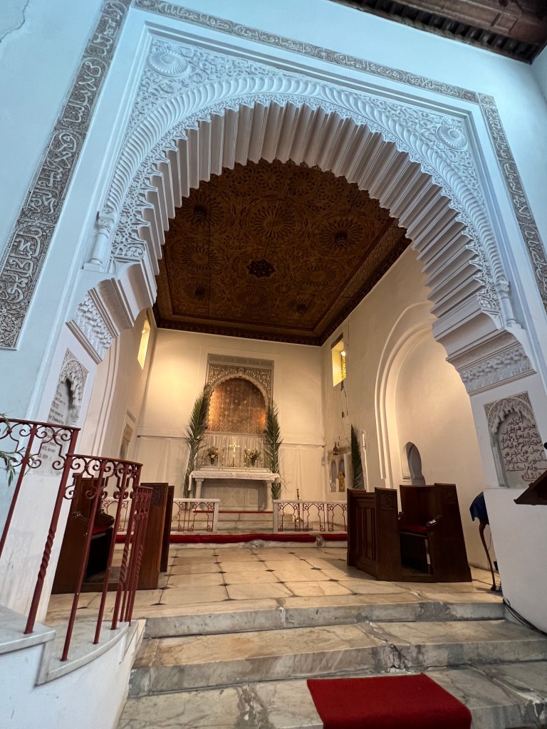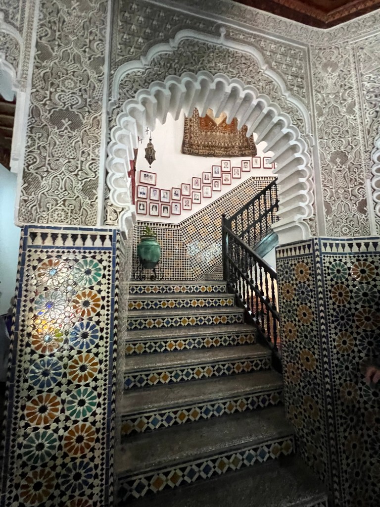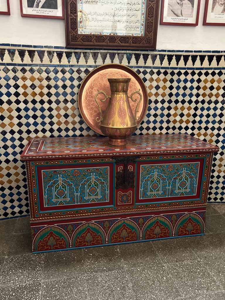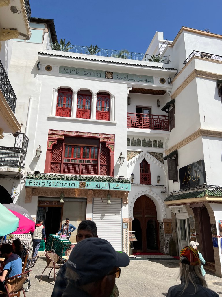 Hello, from our last port in Morocco and our final stop on the African continent of this adventure we are on. Last night when we were pulling out of port we noticed a Semester At Sea Ship with the saying “The World Is Your Campus” written on the side. Megan is getting that same experience currently but it is definitely something we will have to research later. We sailed into the Mediterranean Sea this morning as we crossed over from the Atlantic Ocean. We slept fast last night as we were exhausted from yesterday and had an early morning again today. We grabbed our breakfast from the Lido and headed to the Main Stage for our 8:15am meeting time. Our journey started today with a short drive into Tangier, which means the white pigeon. We saw the Grand souks here, the kasbah (fort), the walled old town area, St. Andrew’s Catholic Church and the American Legation Museum. We did a lot of walking today. Up and down hills, across cobblestone streets and up and down many steps. I had no problem reaching my step goal for the day. We saw so many new and wonderful things again today. Much like yesterday it was a fantastic visual variety of old, new, colorful, bustling, poverty, history and grandeur. There is so much tradition and history here in Morocco in complete contrast to the length of our own history in the United states. I wish we had more time here to experience more. Next, we boarded the bus and took an hour drive over the Reif Mountains into Tetouan. There we visited their walled souk (marketplace), the Royal Palace at Hasan II Square (so yes, if you are counting that’s three palaces belonging to the same king in two days), and finally we went to the School of Traditional Arts and Crafts. Sadly, since it is Friday and we are in the Ramadan there was no one there working on their craft, but we got to see some beautiful completed works and works in progress. I also need to mention that Morocco is the land of a zillion cats. Megan and I saw more cats then we could count. My camera is filled with photos of Megan and her feline harem. As tempting as it was to sneak one back onto the ship, we decided against it. After that we boarded back onto the bus for the hour long ride back to Tangier and the pier where the Zuiderdam was waiting for us. These three days were barely a taste of what Morocco has to show us and I look forward to returning here at a future date. I think today’s port of Tangier was my favorite. I never felt unsafe and the food again was fantastic. We had a delicious traditional Moroccan meal with vegetables, couscous, beef, rice, cookies, and mint tea for dessert. We got back to the ship just before 4:30pm and headed to the Aft pool deck on 9 for the sail away party. They had drink specials, served hummus and pita, and had live music. We stayed and enjoyed the sun for while until the wind just got too cold and we headed back to the cabin. We are winding down our evening now. We skipped dinner again after having such a filling lunch. We are hydrating and getting ready for another long day tomorrow. It will be long excursion three of five tomorrow as we are back at sea now and heading for Spain. We anticipated this month as being busy with a lot of “on the go.” We will go to sleep early and get as much rest as we can. Our excursions will drop down in length of time after this week as well. These just all ended up being about 8 hours each for multiple days in a row. We are anticipating some high winds for the evening and I’m sure we will be rocking and rolling along. Hopefully it will lull me right to sleep and keep me resting throughout the evening. Enjoy all the photos. I know there are a lot of them again. But it is so hard to decide what to share and not to share. These are my favorites from the hundreds I took. I hope you again feel like a little part of you is here, if only in my heart!. Hugs.